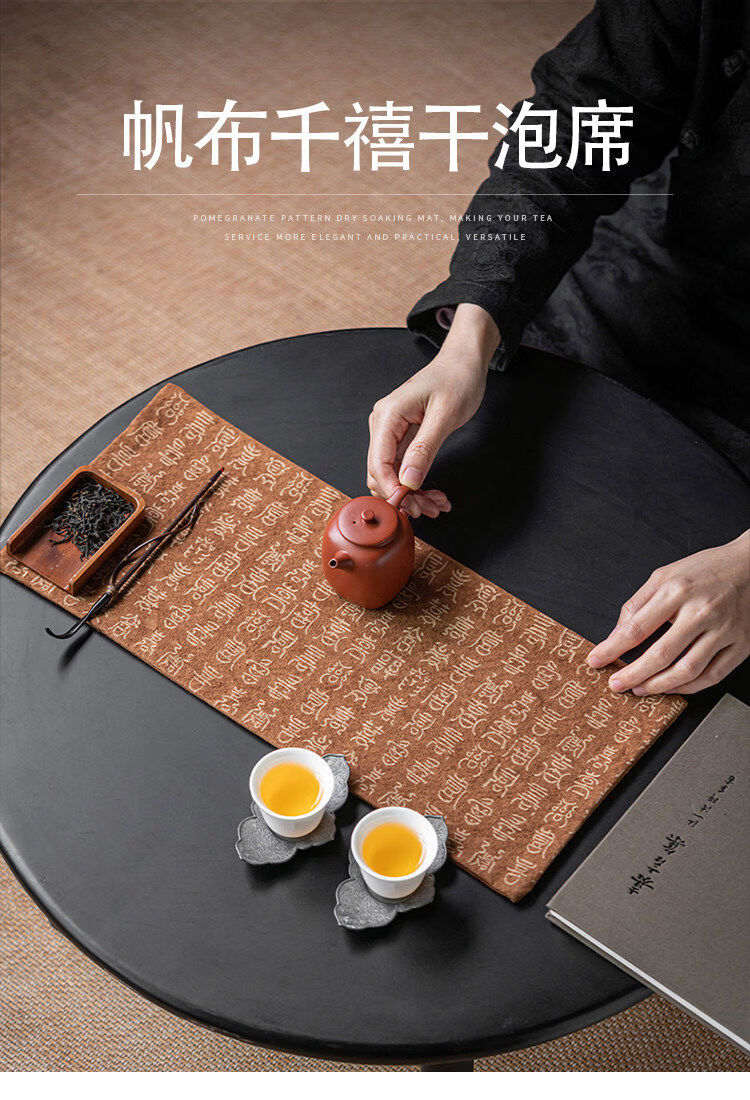 Tutu tie-dye ancient seal script tea mat for household Chinese style all-match insulated tea mat tea ceremony accessories special tea towel for tea tie-dye ancient seal script tea mat-ancient green