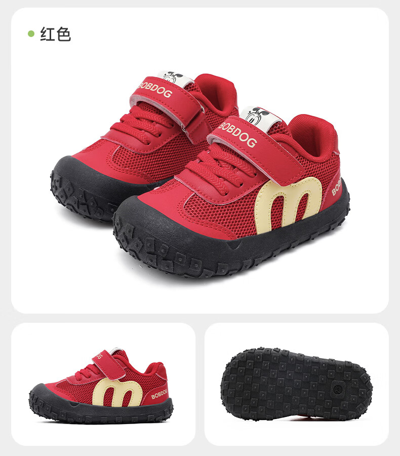 BOBDOG Children's Shoes Children's Baby Shoes 2026 Spring New Red Shoes New Year Shoes Functional Boys Toddler Shoes Red 24 Suitable for Feet Length 14.0CM