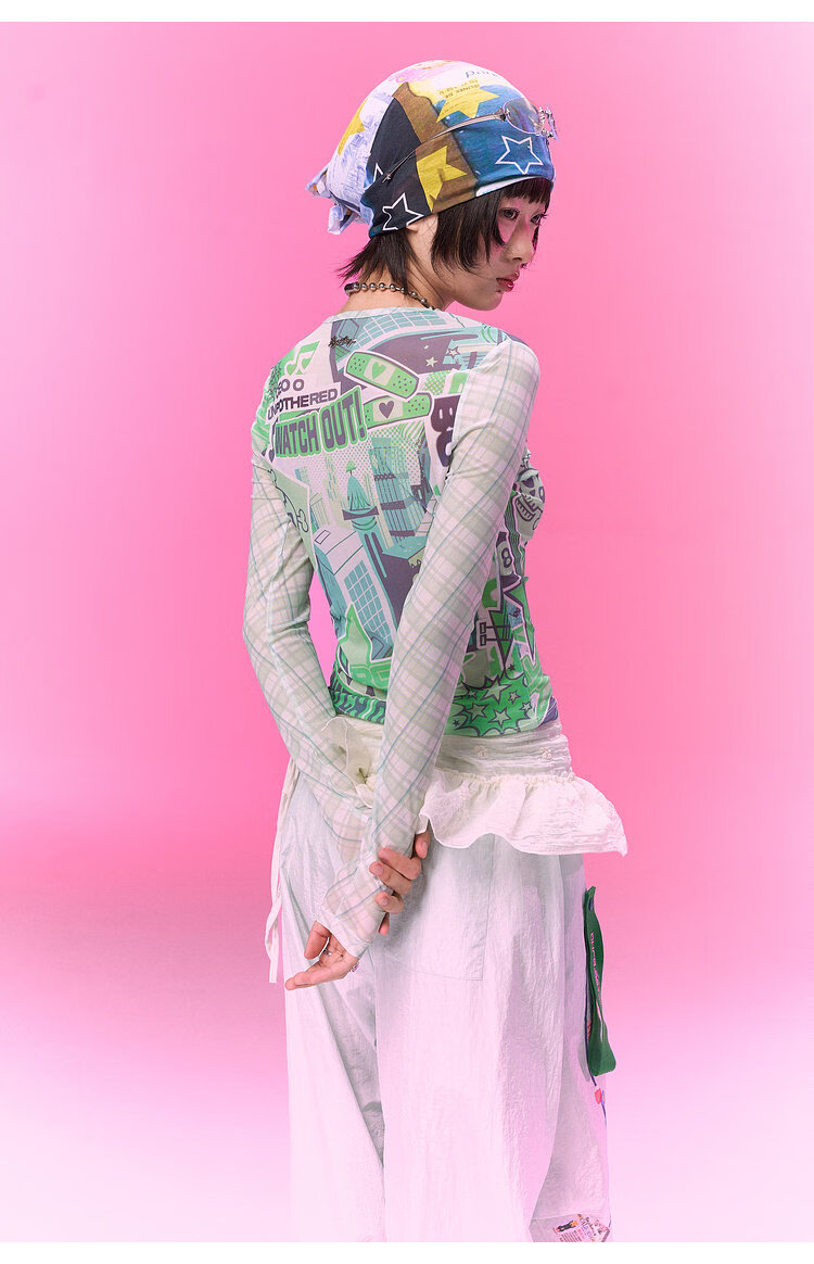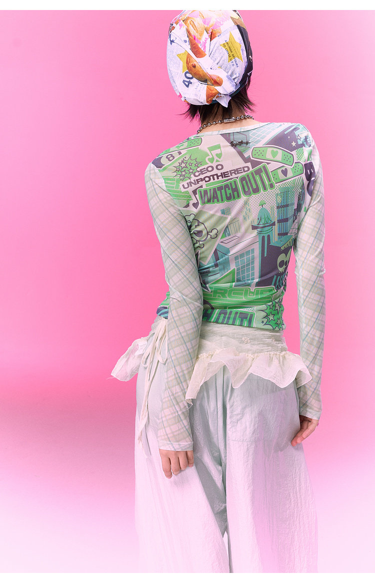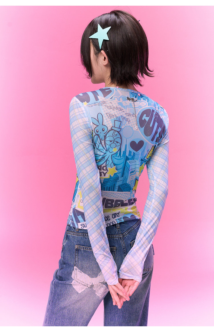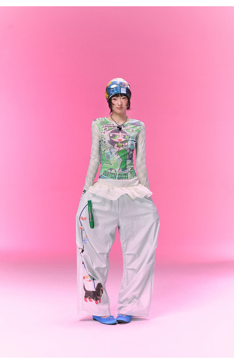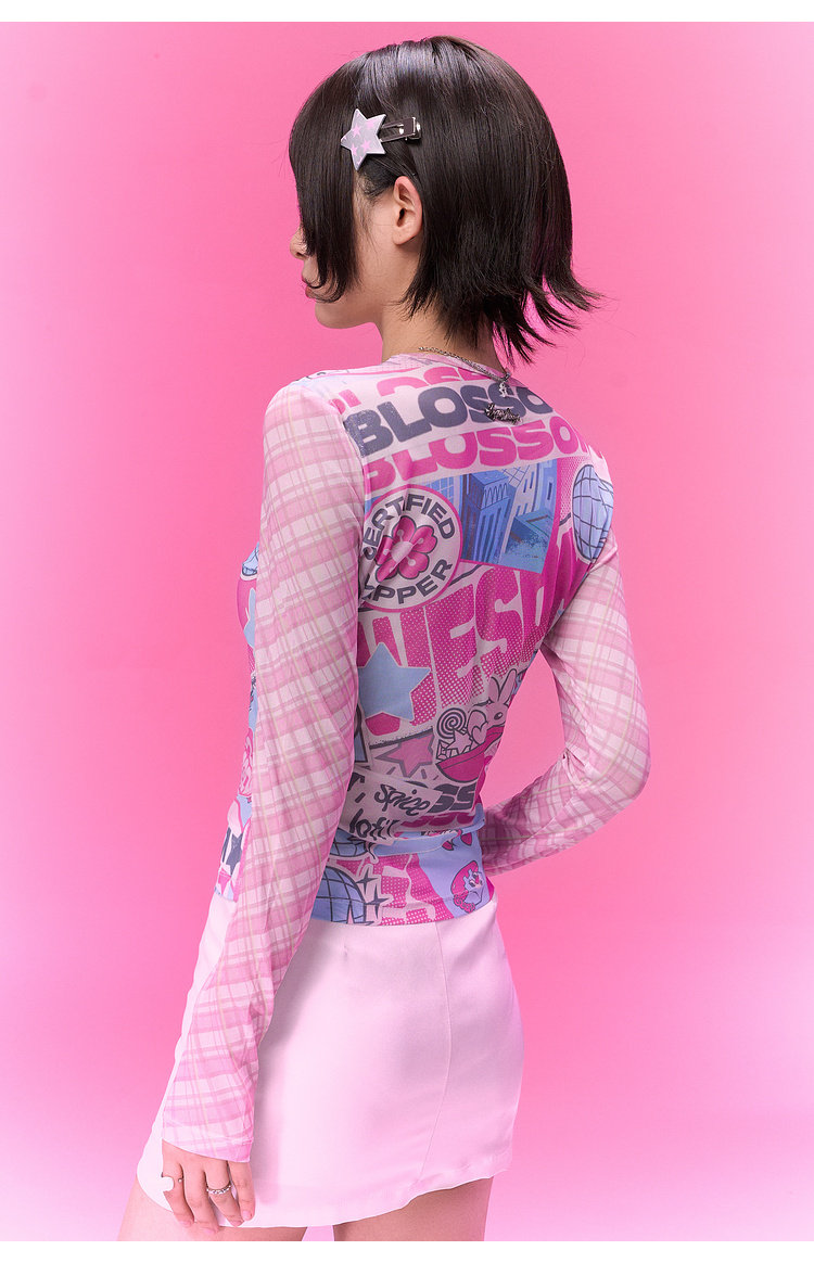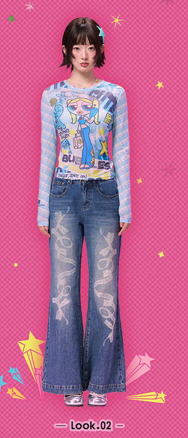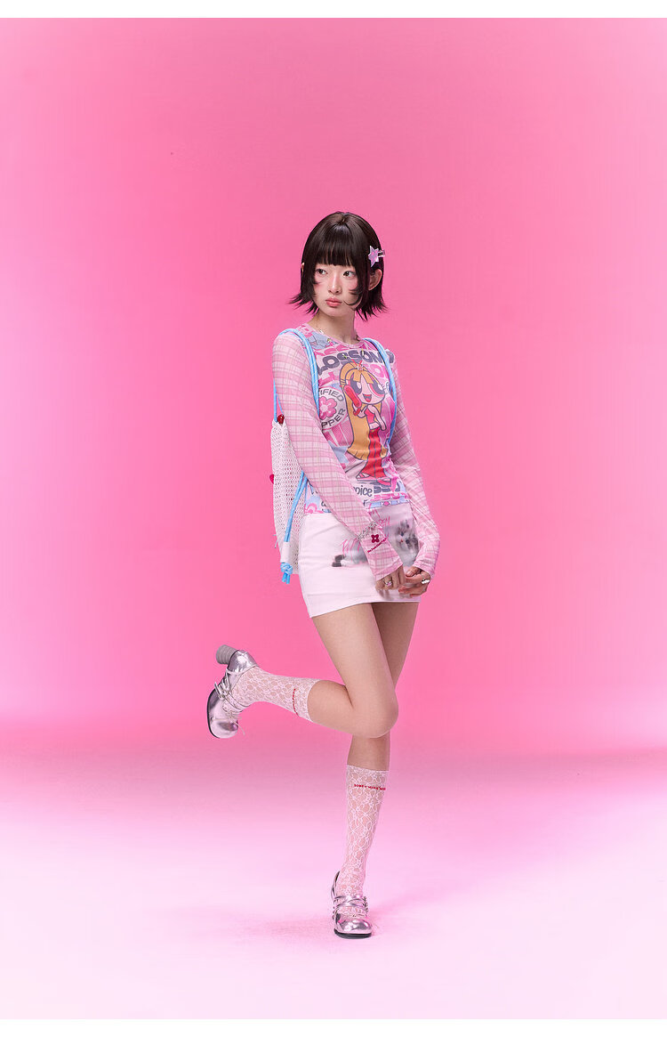 BJHG Powerpuff Girls co-branded reckless retro cartoon y2k long-sleeved T-shirt women's spring slim top Huahua-Pink L 130-160Jin Jin equals 0.5 kg