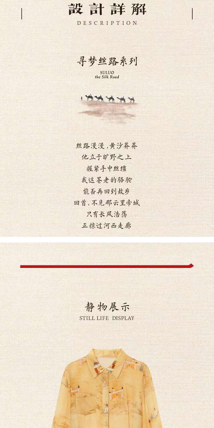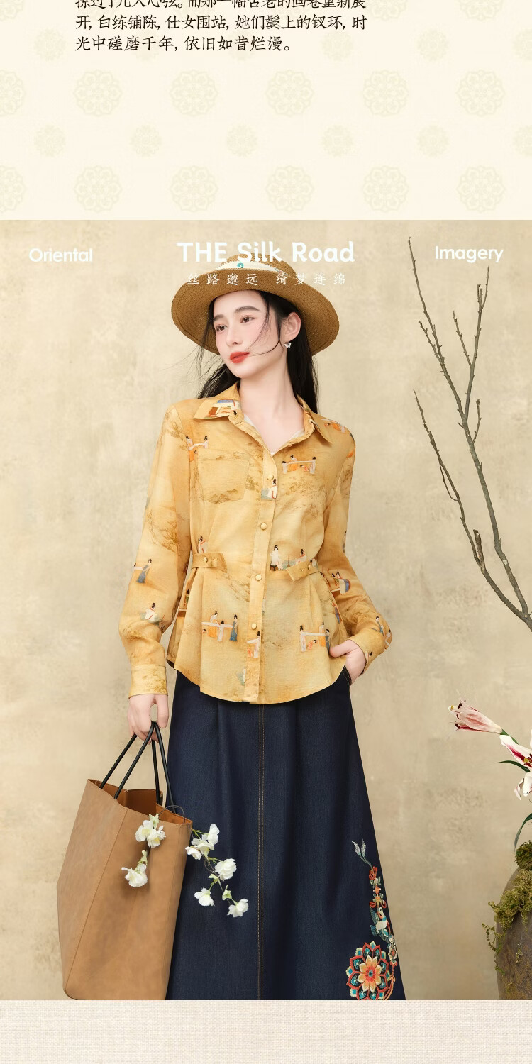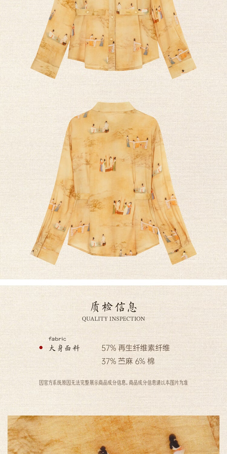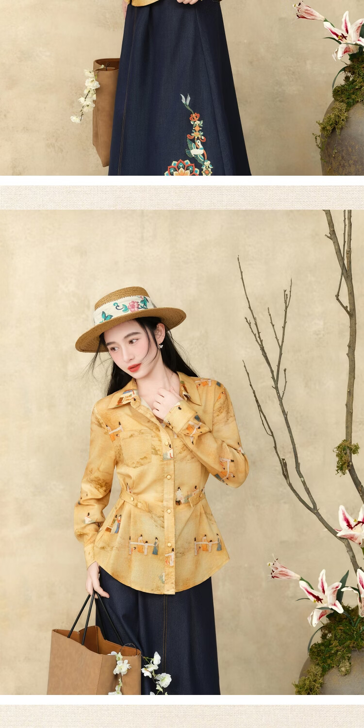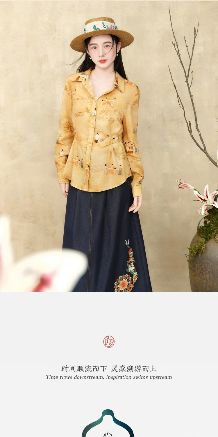 Su Luo's original <Pounding Practice Picture Yunli Imperial City 2> Spring new style national trend printed casual loose shirt 篾黄 S