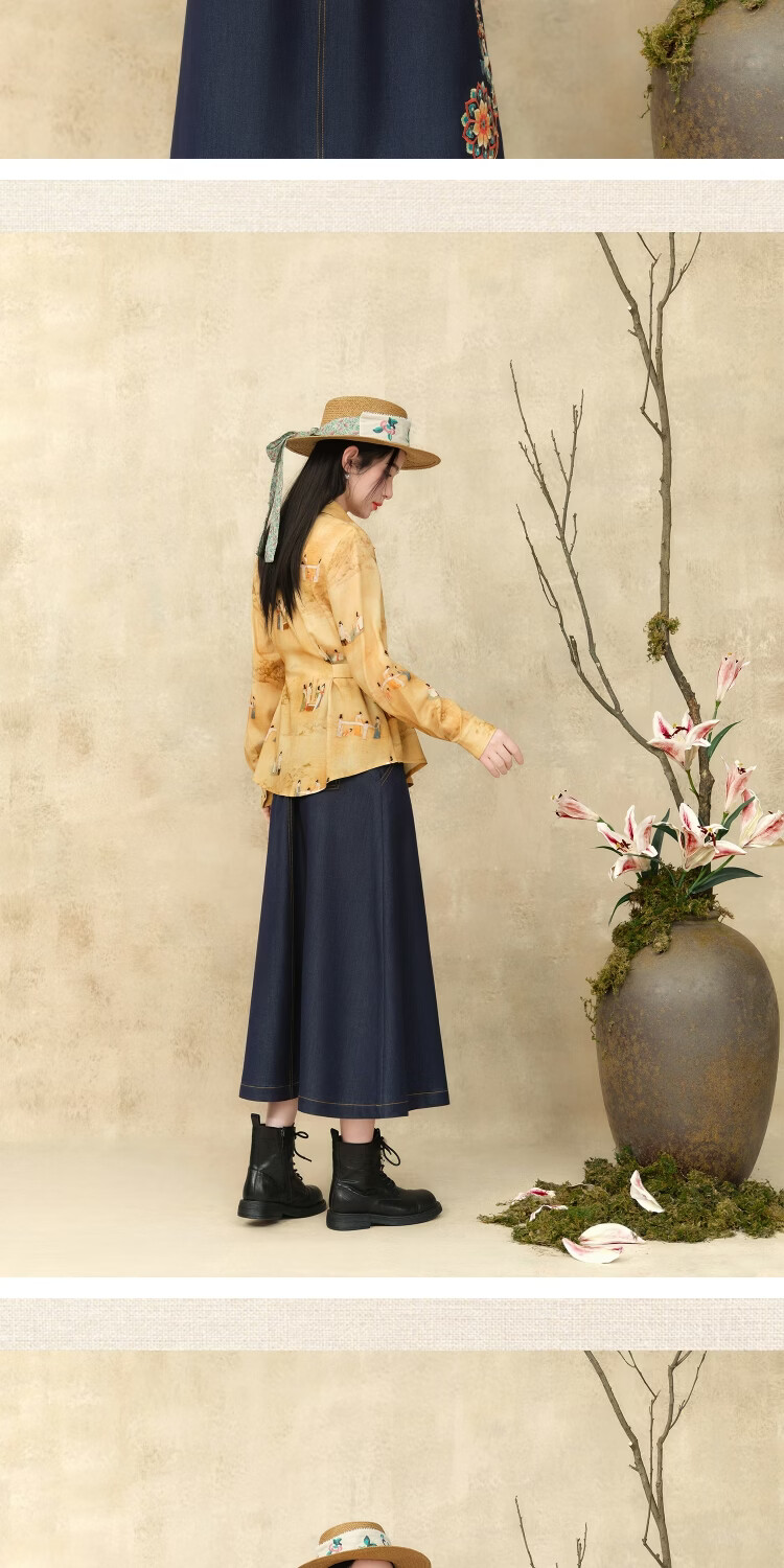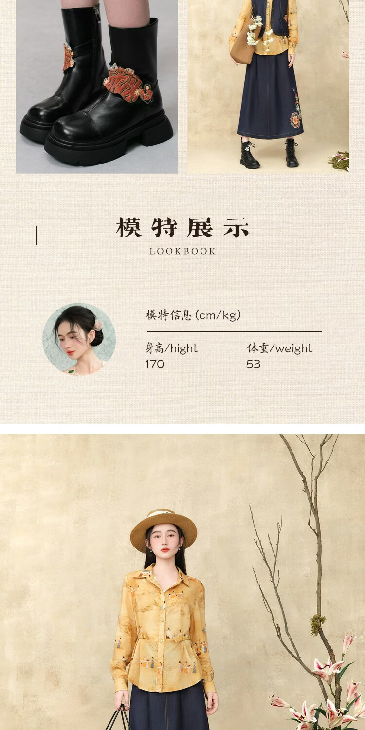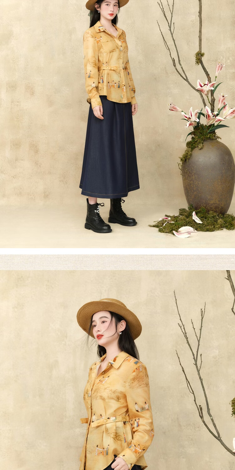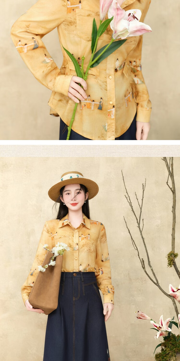 Su Luo's original Spring new style national trend printed casual loose shirt 篾黄 S