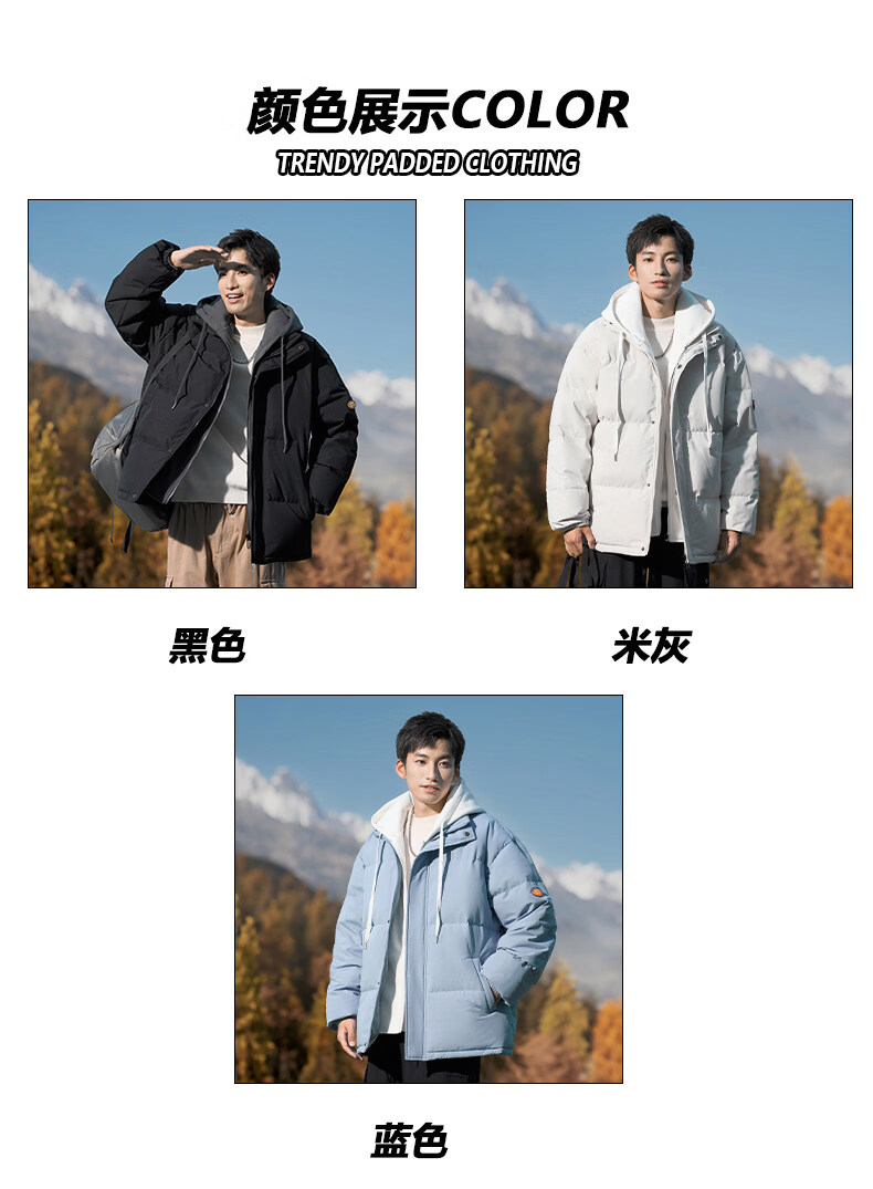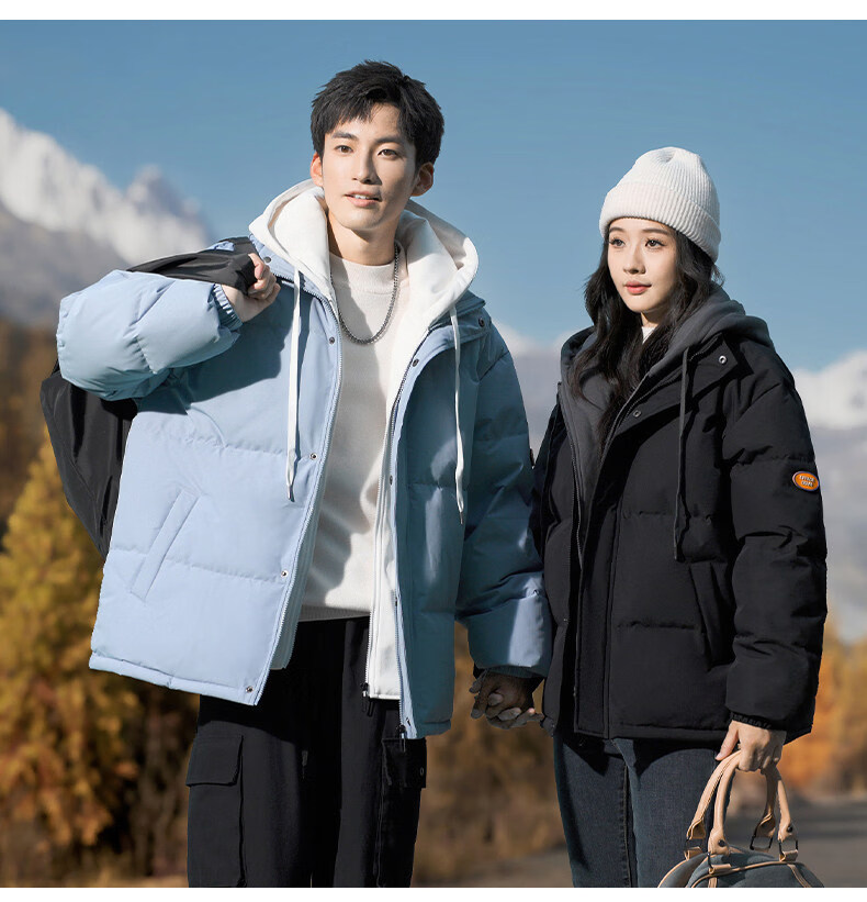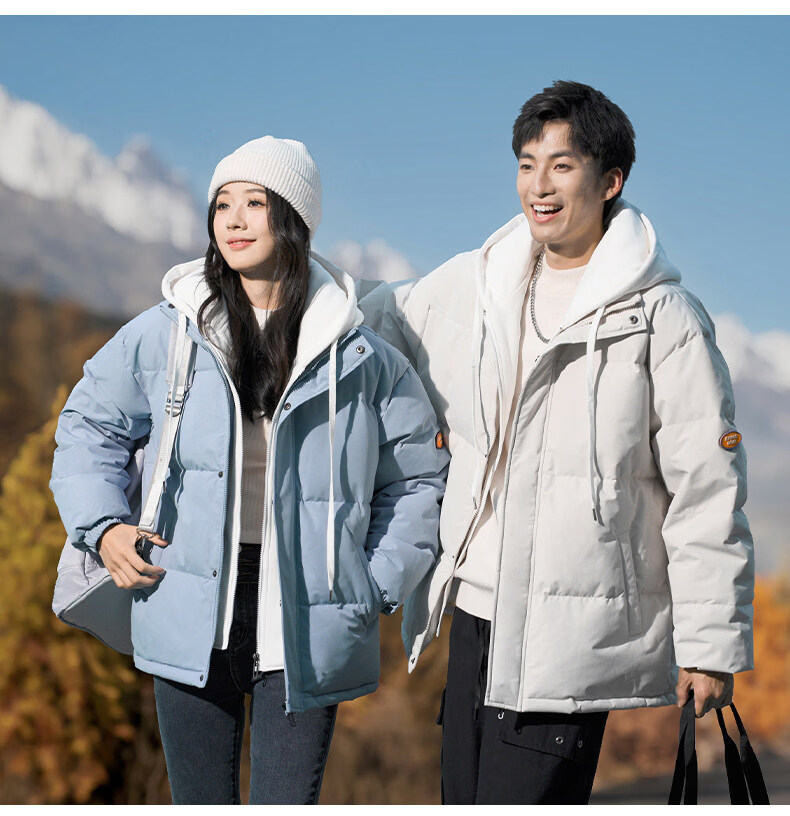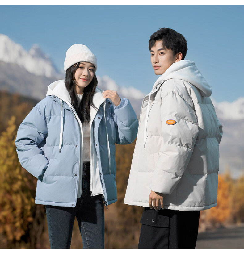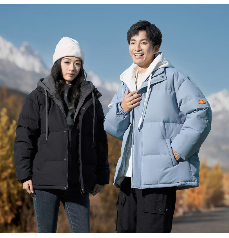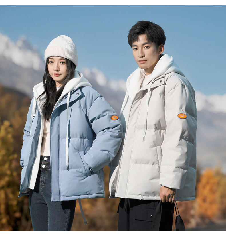 Viishow men's contrasting color winter new thickened hooded down winter fake two-piece jacket blue S