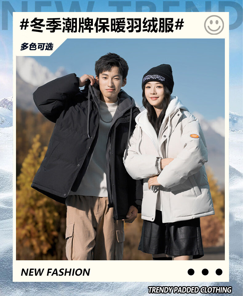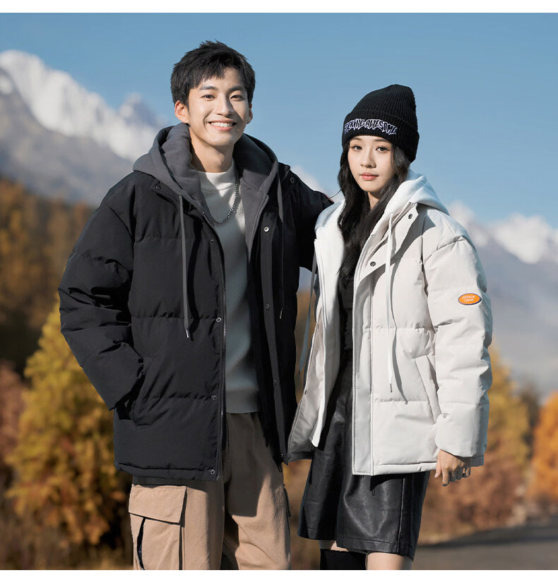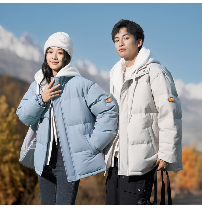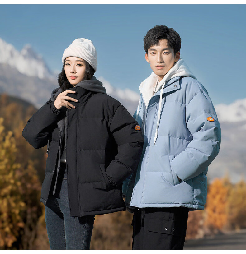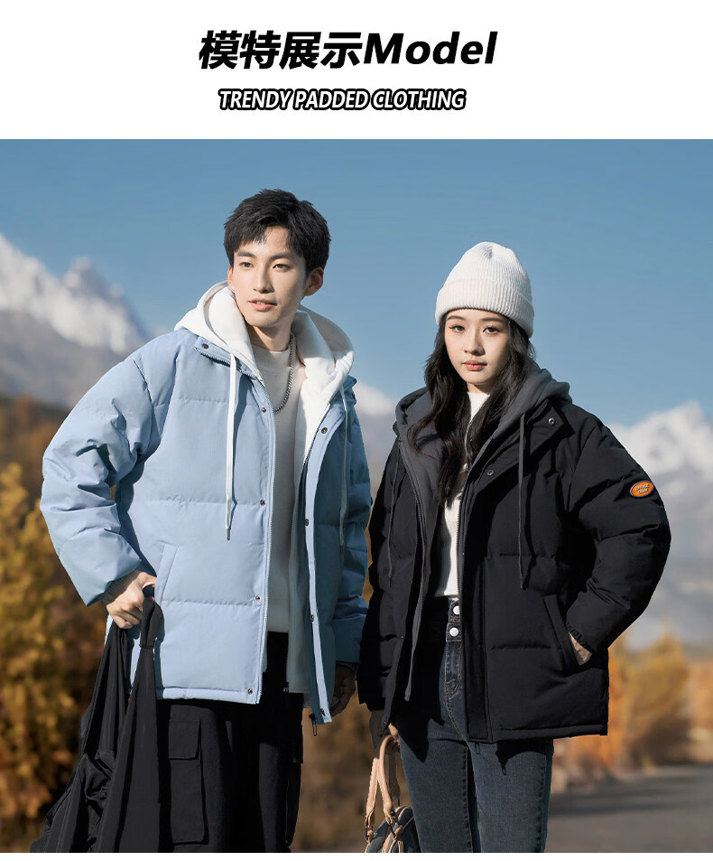 Viishow men's contrasting color winter new thickened hooded down winter fake two-piece jacket blue S