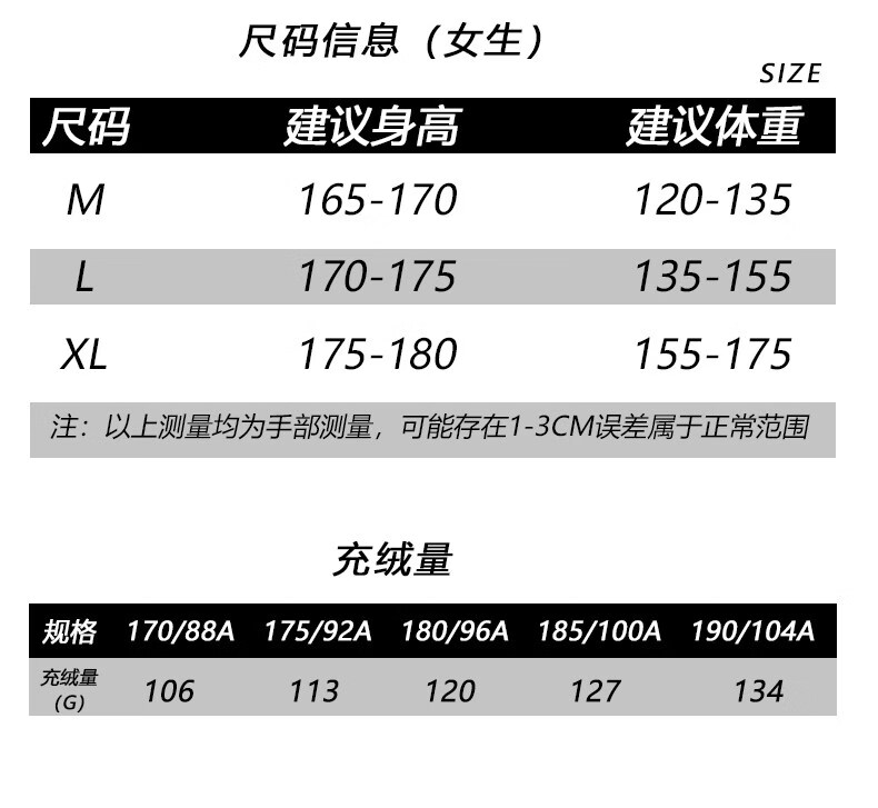 China (cm) 160-165/84-86 165-170 / 88-90 167-172 / 92-96 168-173 / 98-102 170-176 / 106-110