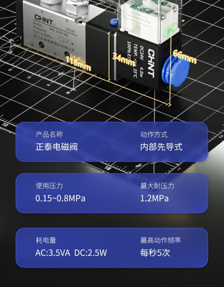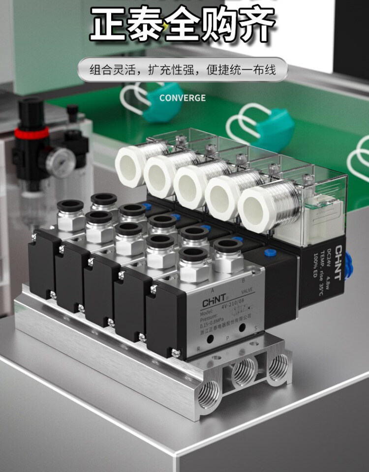 Chint solenoid valve 4v210-08 pneumatic 12v air valve controller switch 24v electronic valve 220v two-position five-way 4V210-08_AC36