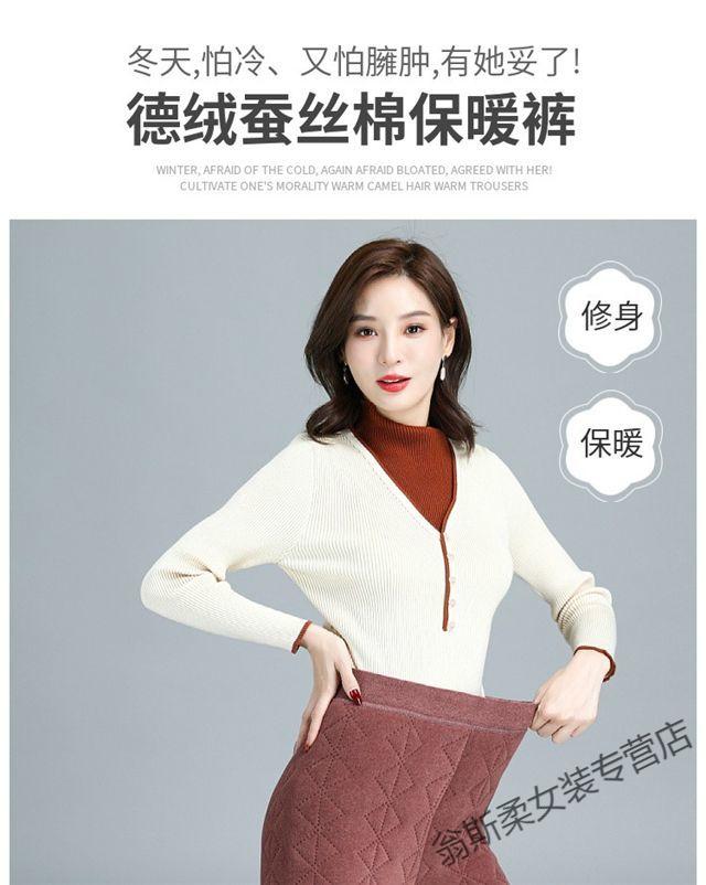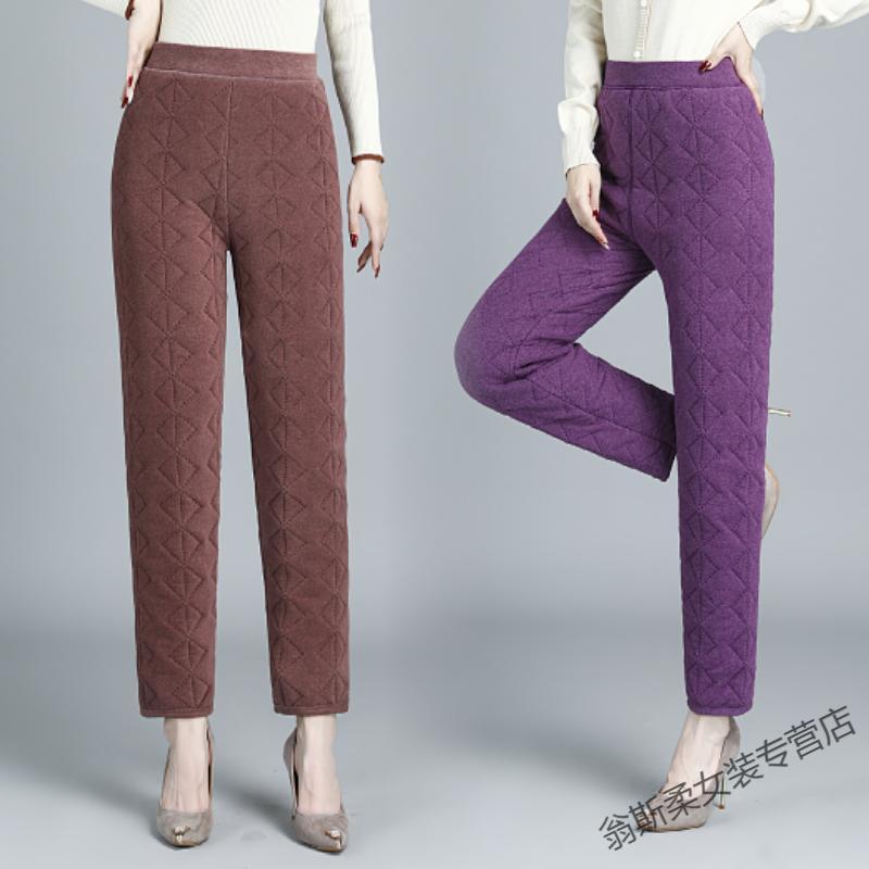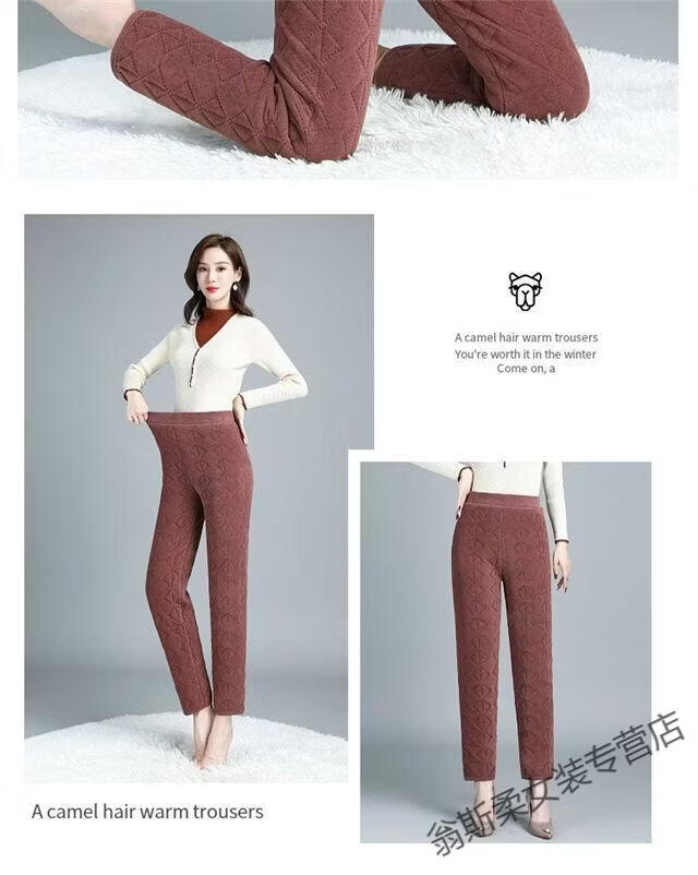 Woodpecker middle-aged and elderly thickened high-waisted German velvet silk cotton pants for women's mothers in autumn and winter large D size warm and cold-proof camel fleece bottoming camel XL