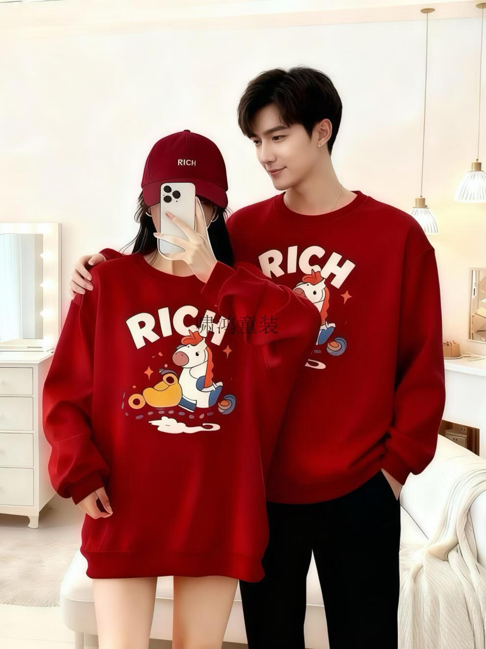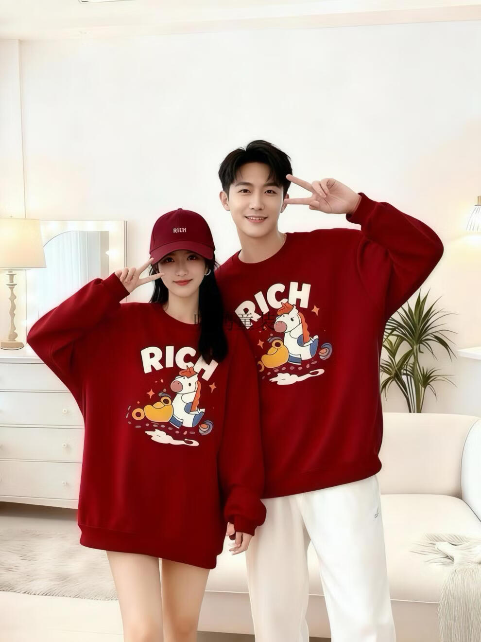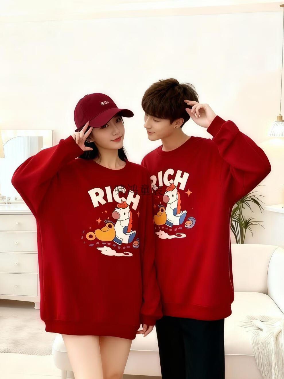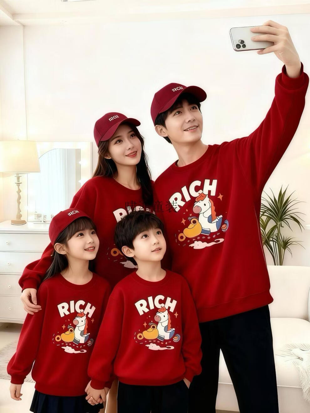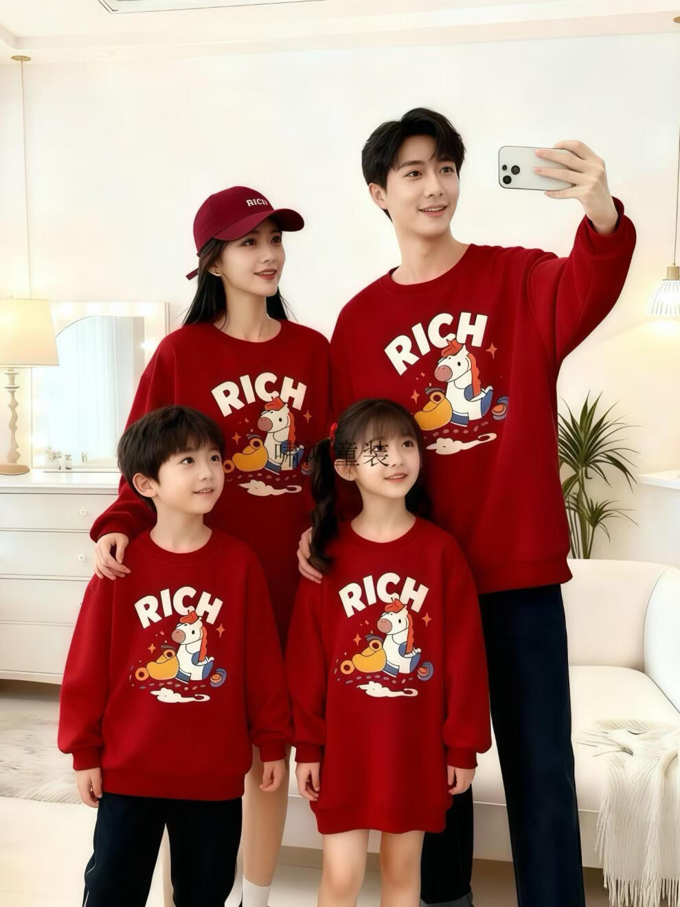 Wooden house small month old New Year's Year of the Horse parent-child outfit red sweatshirt plus velvet for a family of three or four animal year family outfit mother and daughter outfit without velvet wine red 90 cm children's clothing