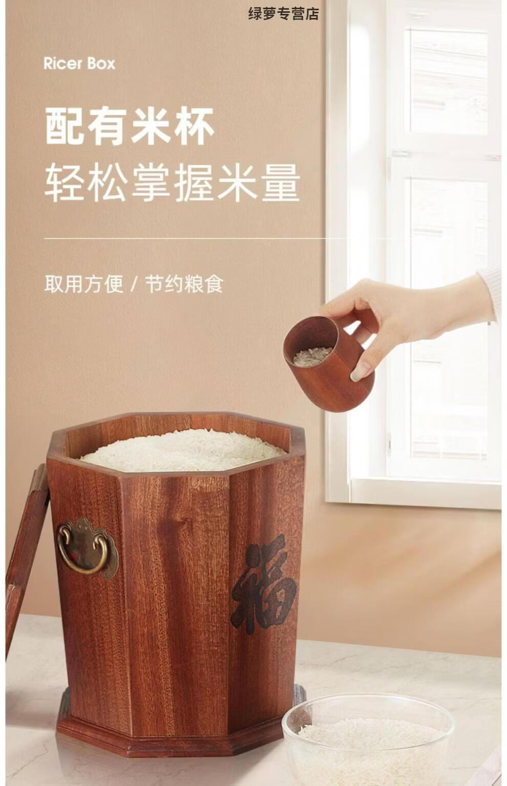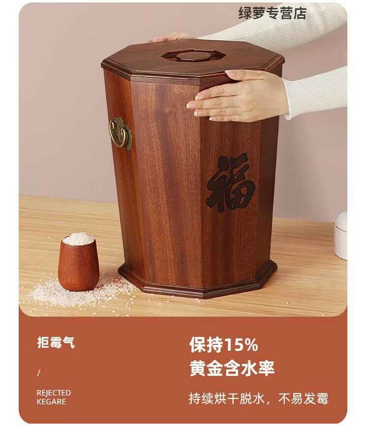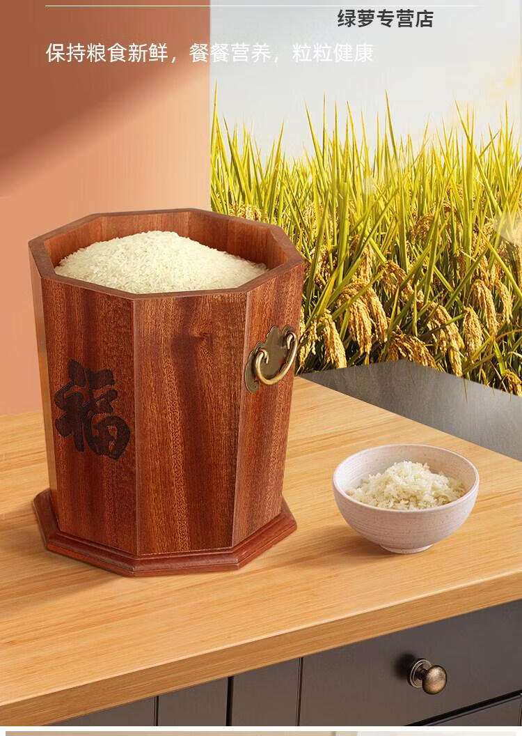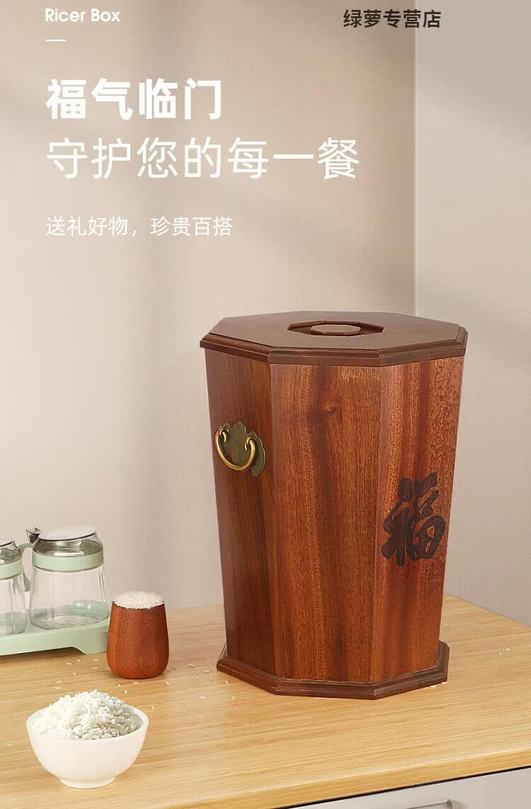 ZFEN Light luxury high-end ebony high-end solid wood rice bucket household insect-proof and moisture-proof sealed rice tank kitchen rice storage small size 10/Jin Jin equals 0.5 kg +/meter cup