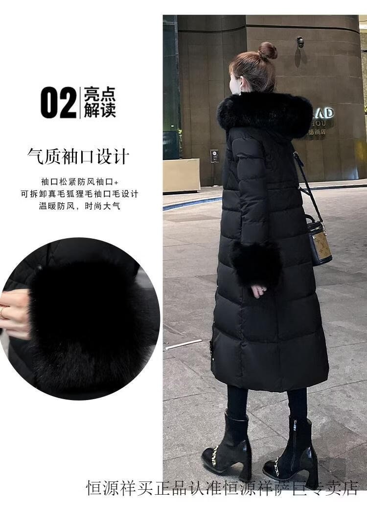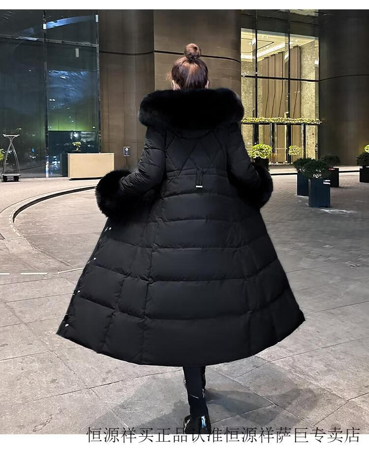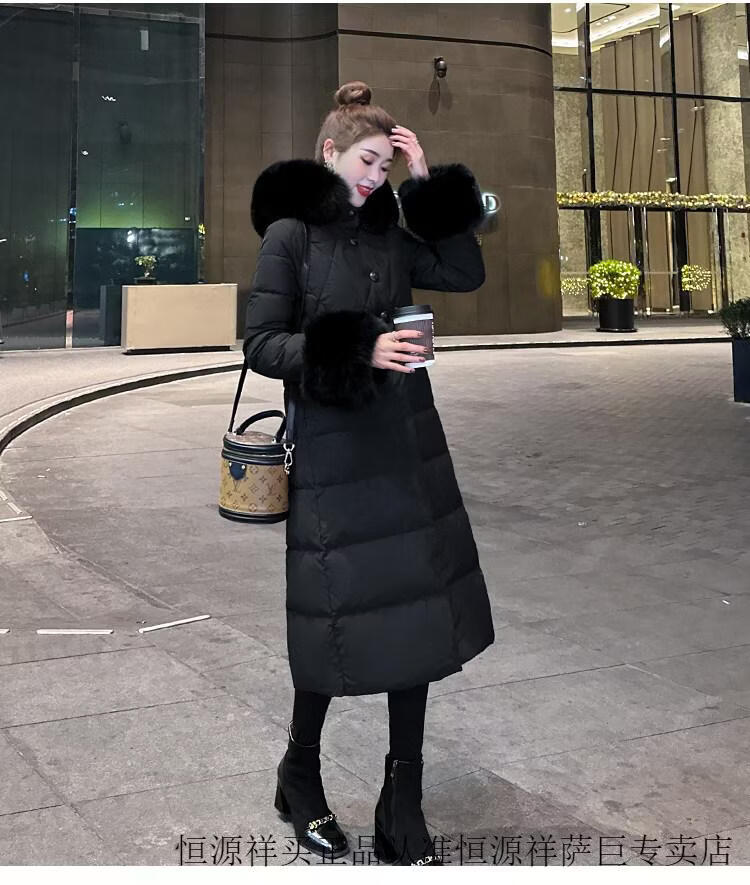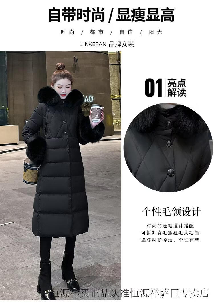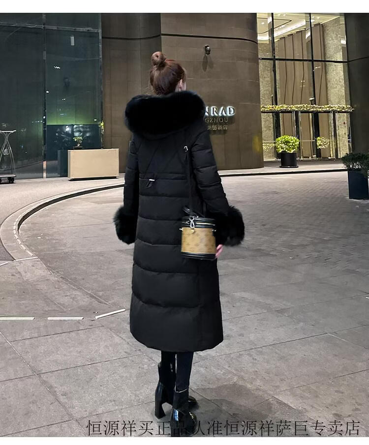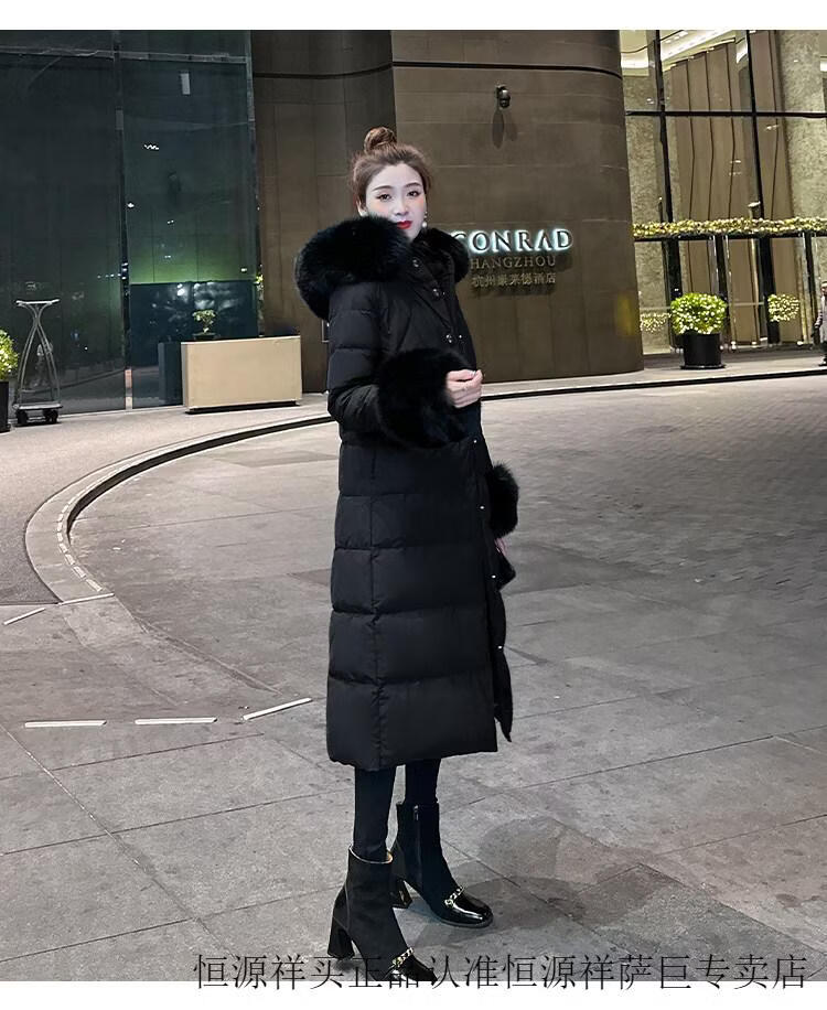 Hengyuanxiang black big fur collar down jacket for women winter 2026 new style fashionable style thickened warm long little jacket black S