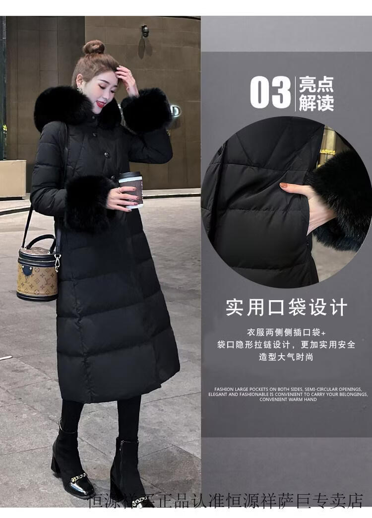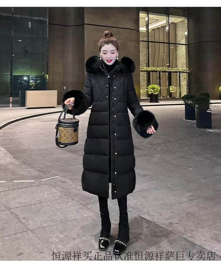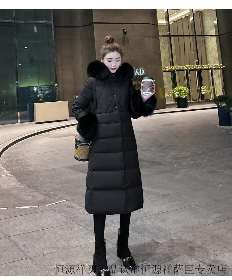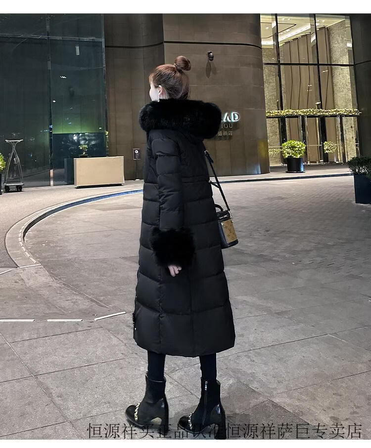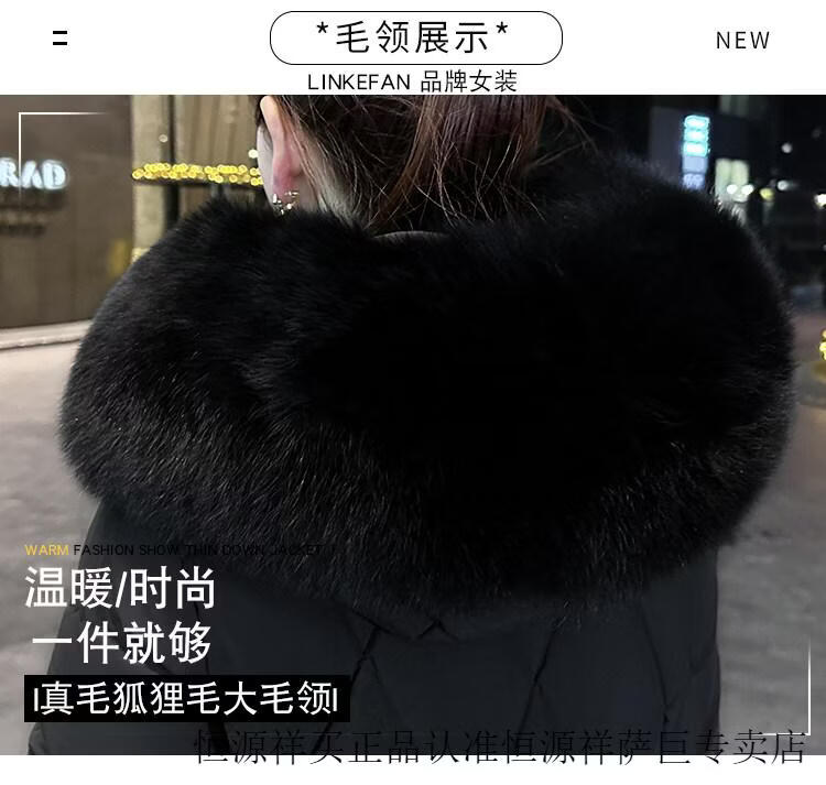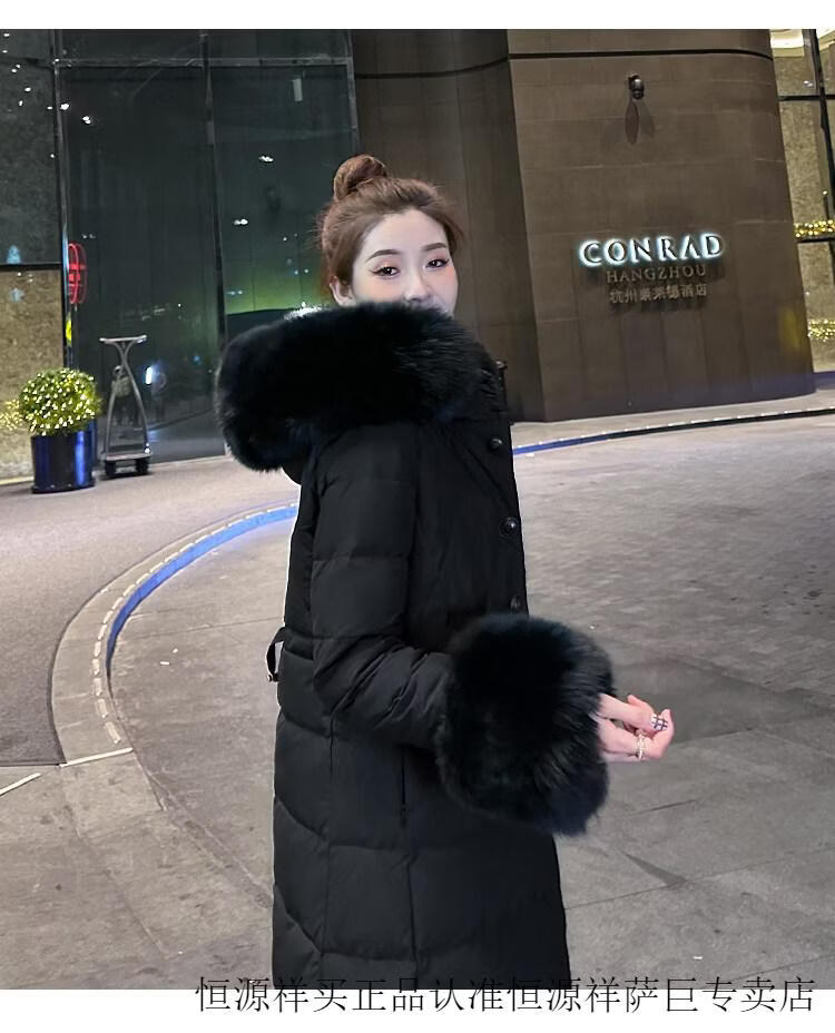 Hengyuanxiang black big fur collar down jacket for women winter 2026 new style fashionable style thickened warm long little jacket black S
