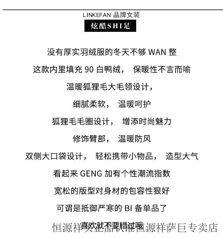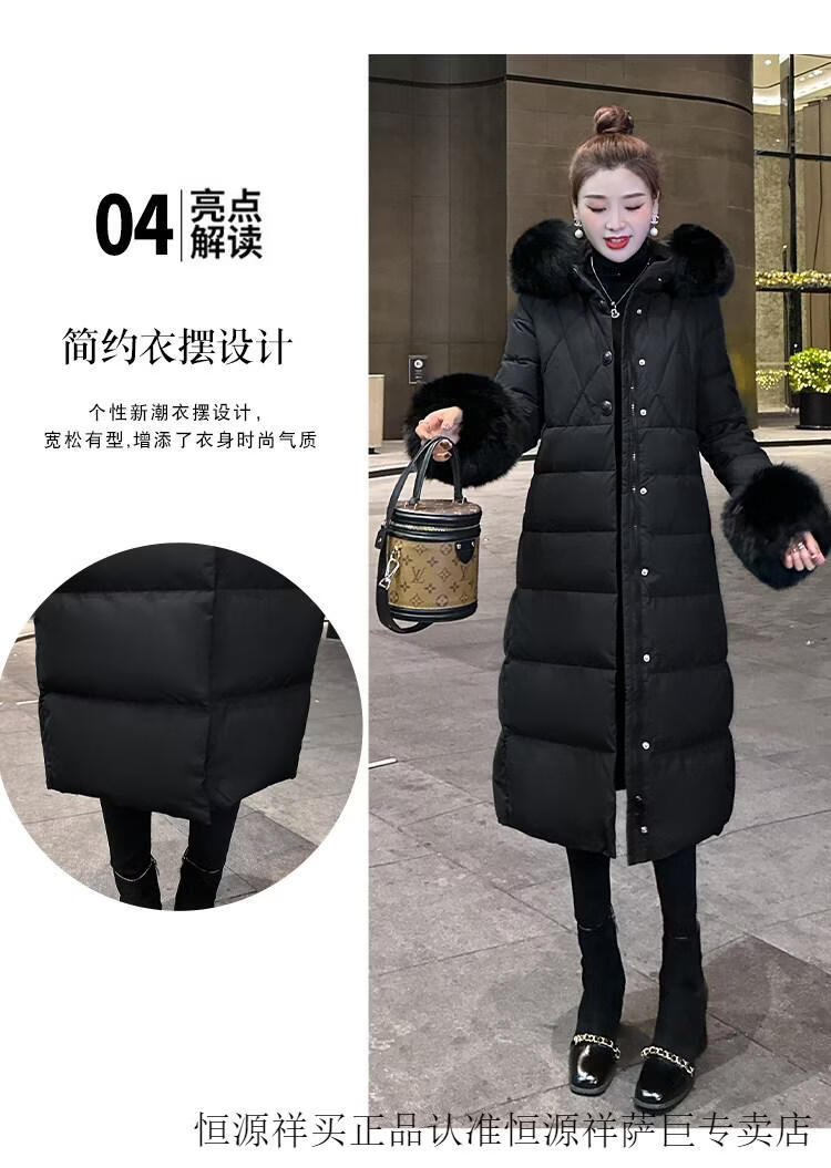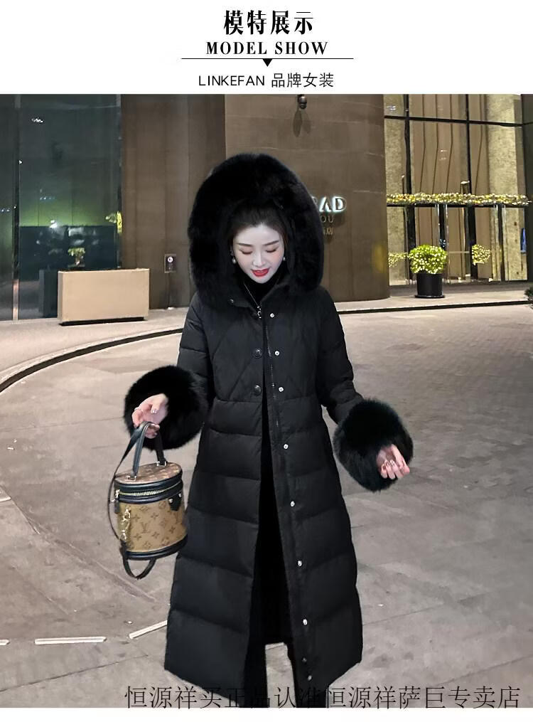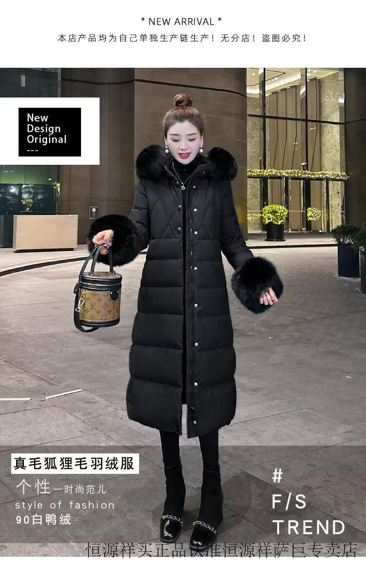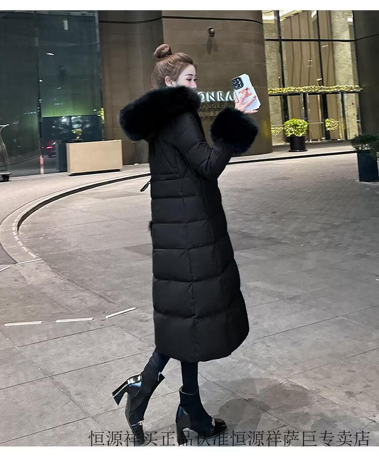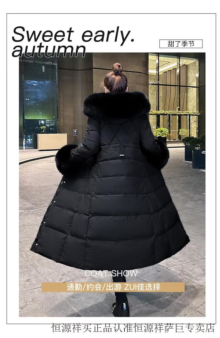 Hengyuanxiang black big fur collar down jacket for women winter 2026 new style fashionable style thickened warm long little jacket black S
