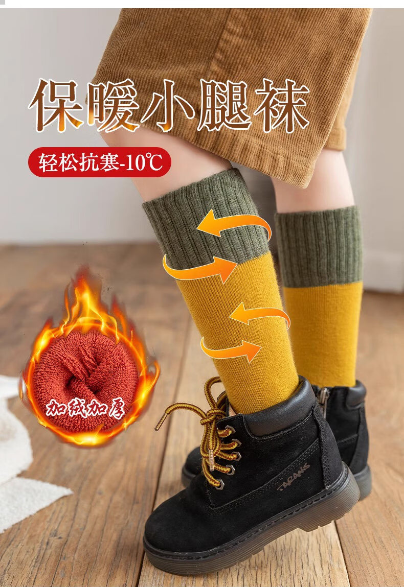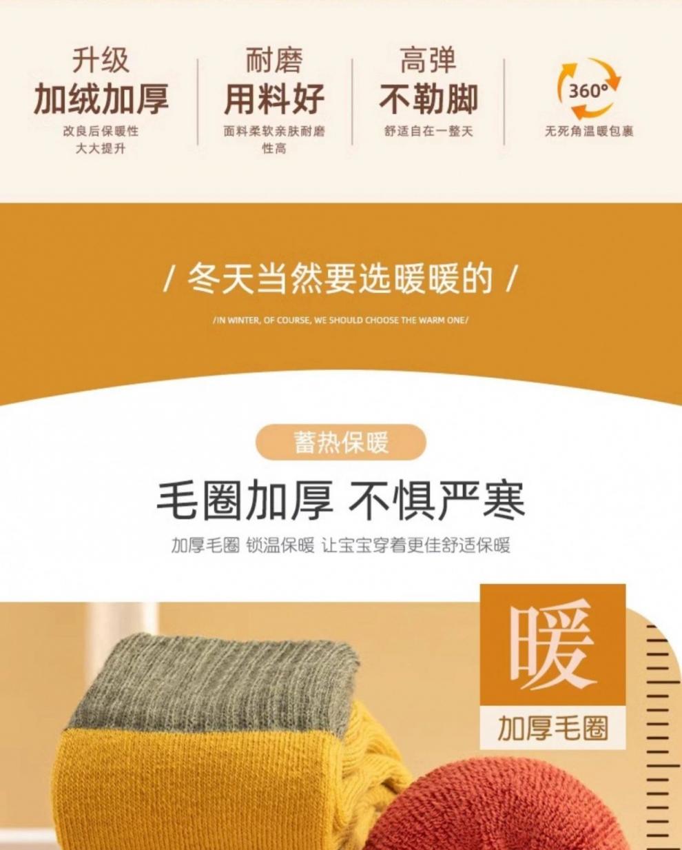 MiiOW children's socks pure cotton spring, autumn and winter plus velvet and thickening for boys and girls, medium and large children's warm terry stockings, thickened/thick, free to match, 3 pairs, 1-3 years old, S size (recommended foot length 11-13CM), infant quality