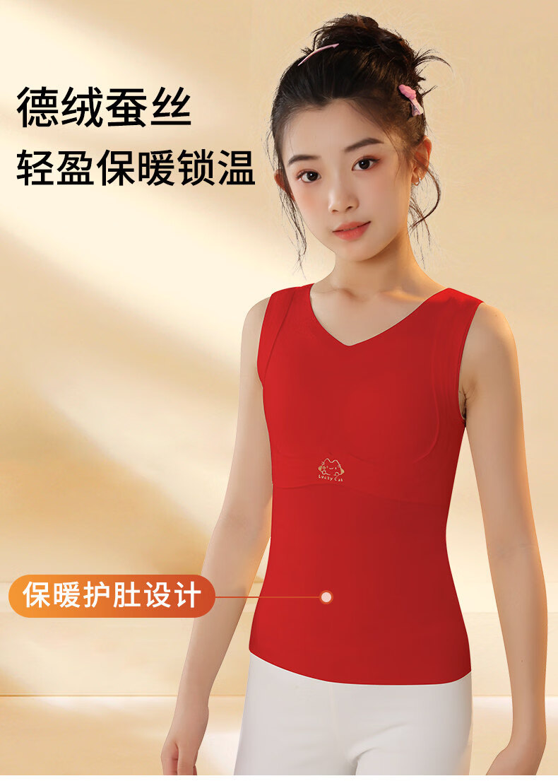 MiiOW children's developmental period DeRong vest, birth year thermal underwear for girls, red inner wear, belly protection bottoming vest, autumn coat, bean paste color, DeRong sheep Y wool silkworm/silk, heat storage, temperature locking and belly protection 170 M 55-75Jin Jin is equal to 0.5 kg