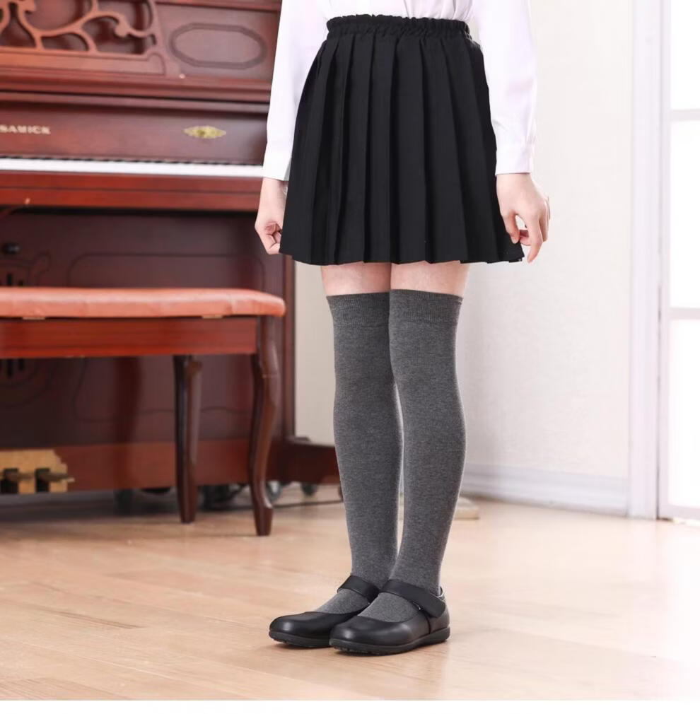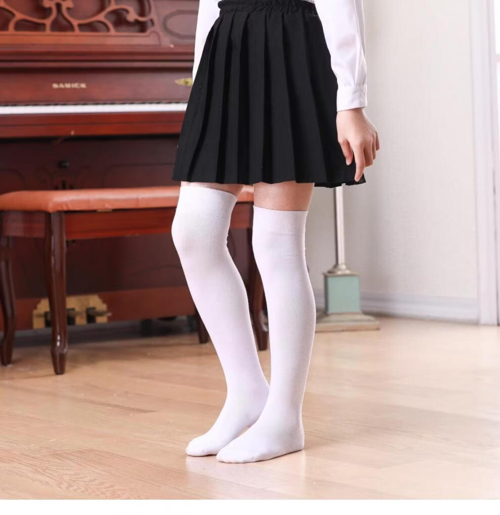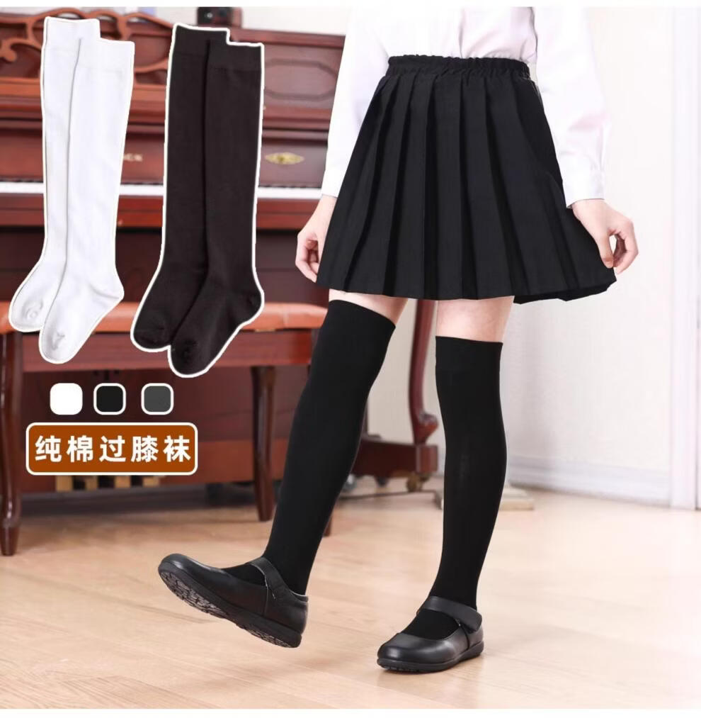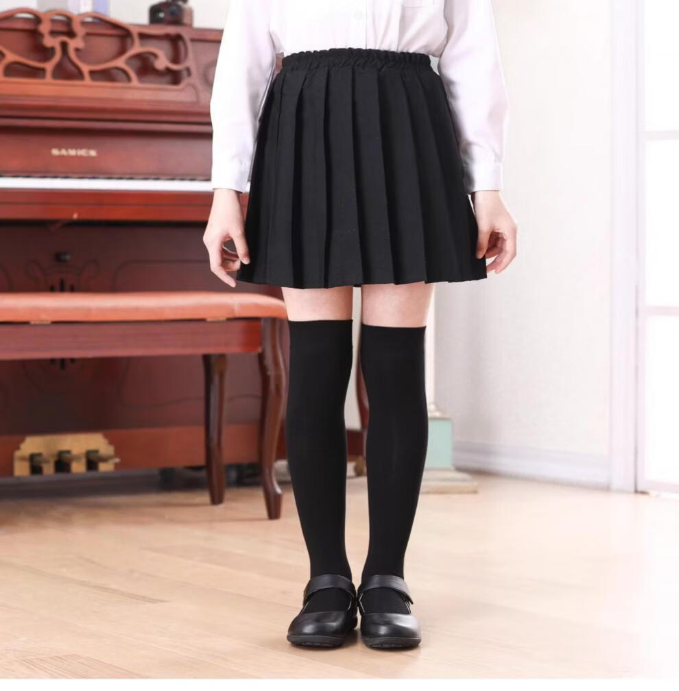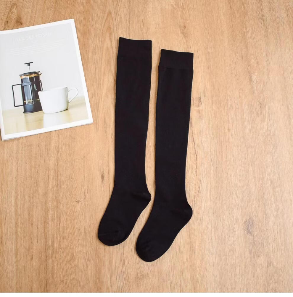 MiiOW Girls' Stockings Over Knees Spring and Autumn Pure Cotton Medium Thick Children's Students' Bottoming Socks Black College Style High Socks Black 1 Pair Free Size M Size Height 105-125cm