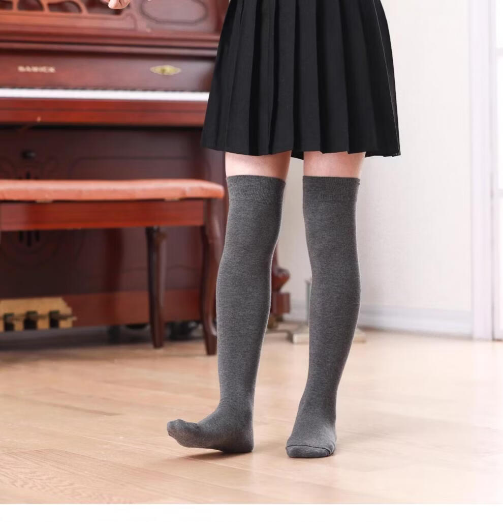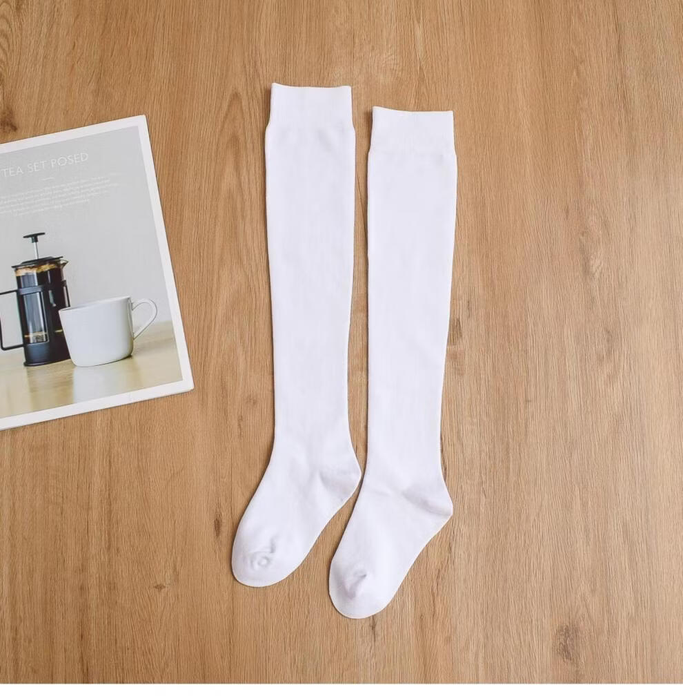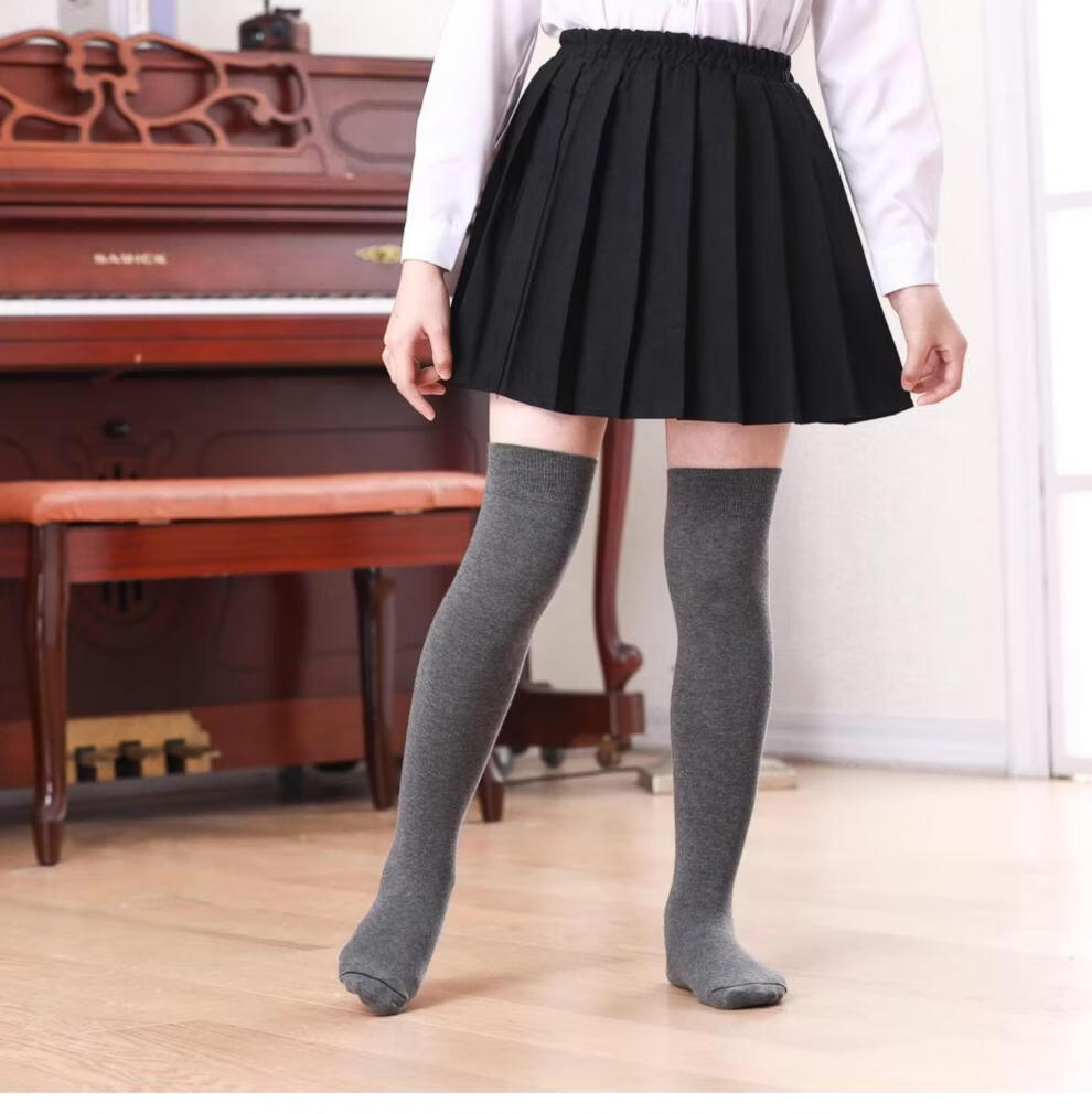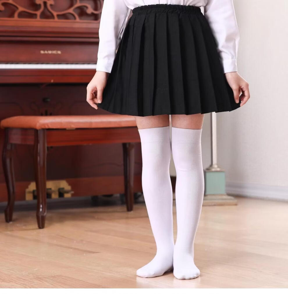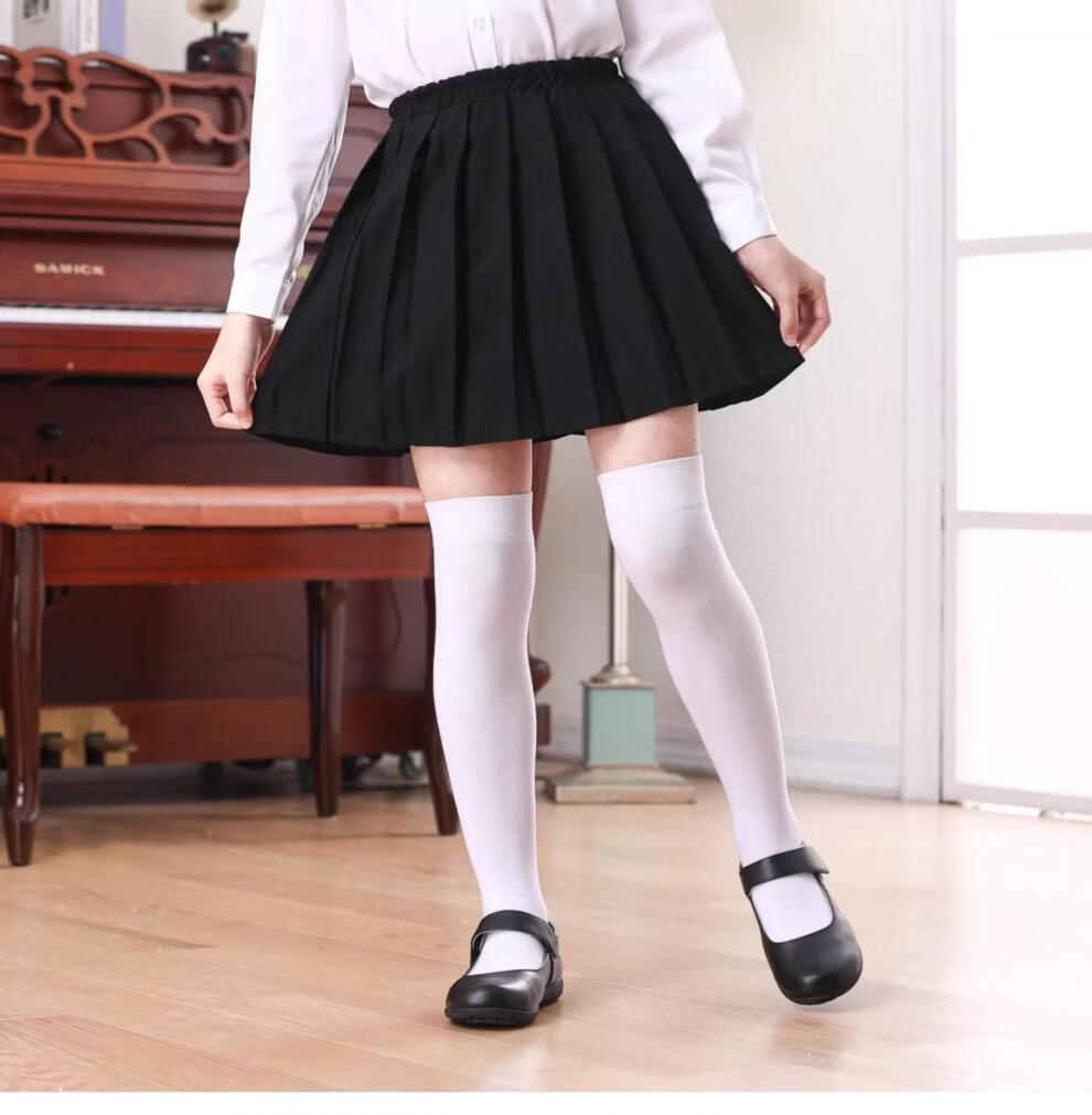 MiiOW Girls' Stockings Over Knees Spring and Autumn Pure Cotton Medium Thick Children's Students' Bottoming Socks Black College Style High Socks Black 1 Pair Free Size M Size Height 105-125cm