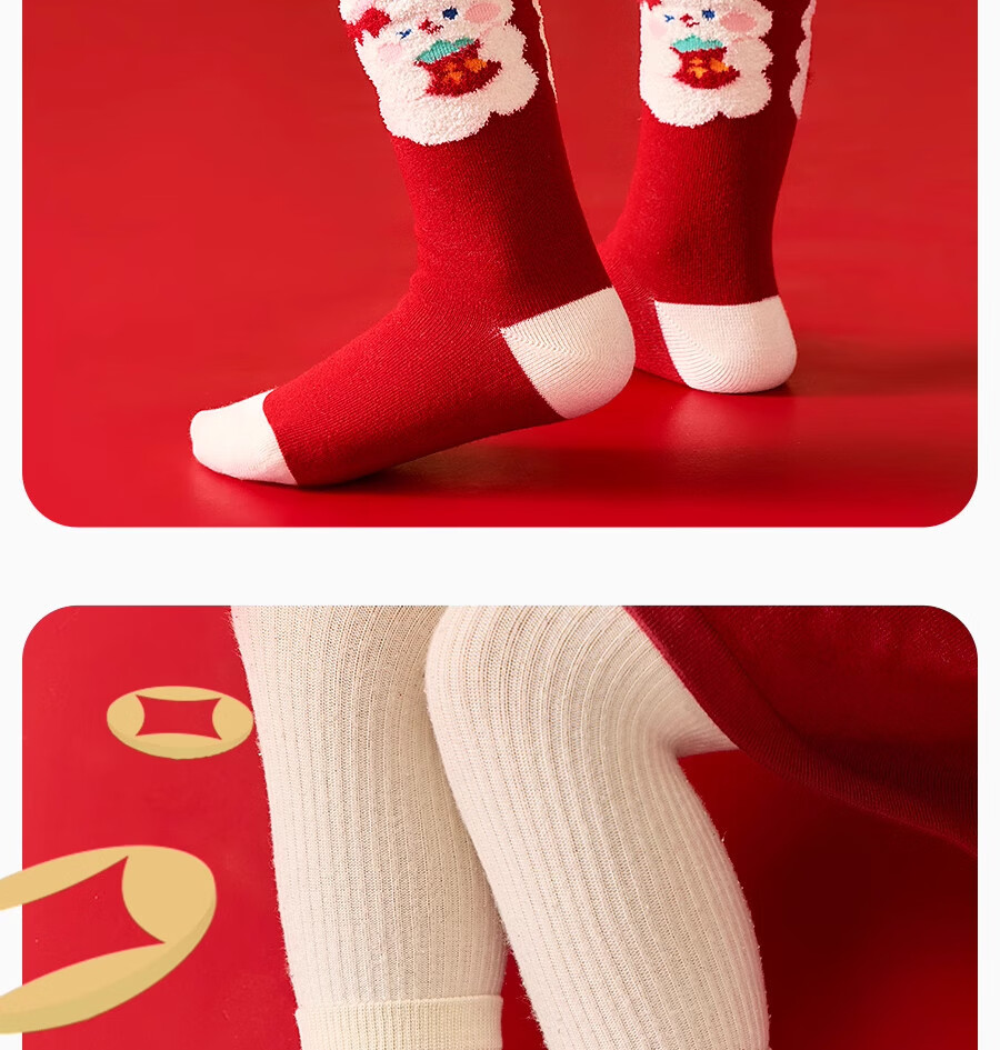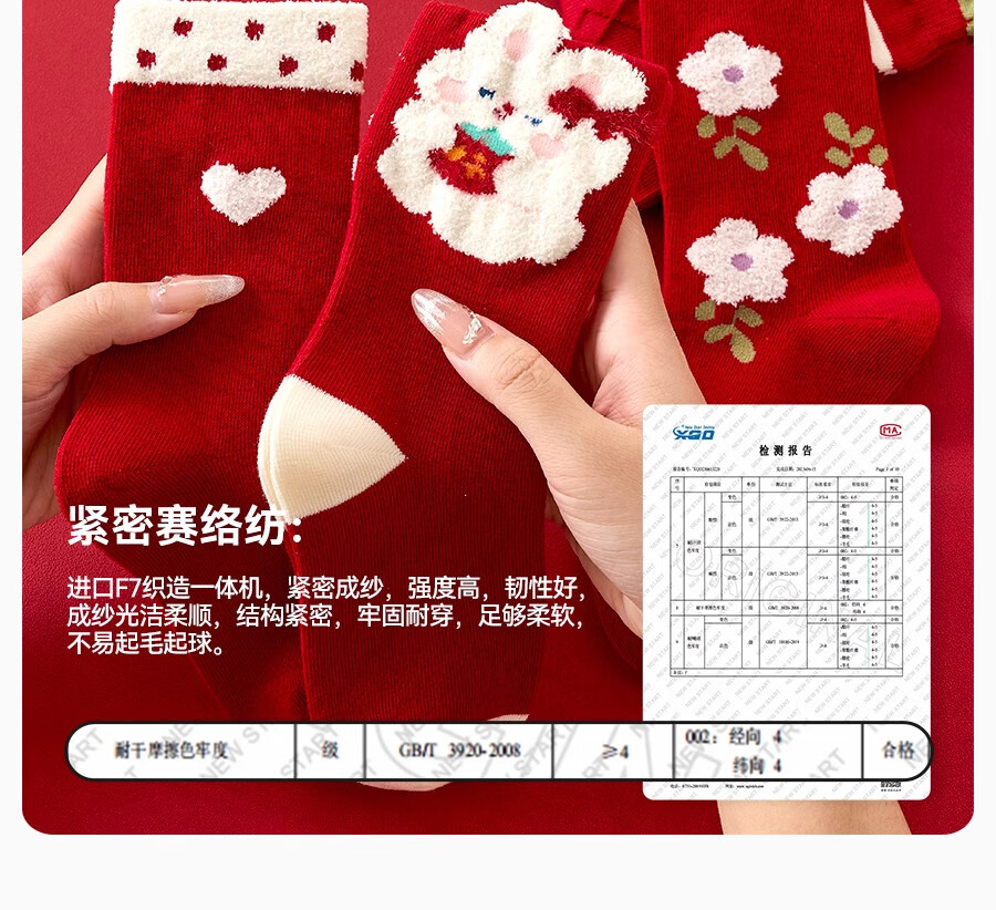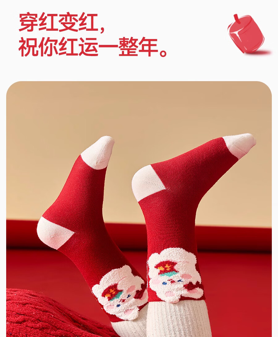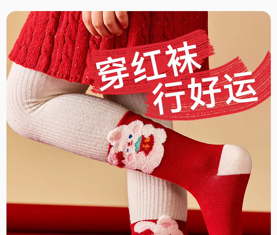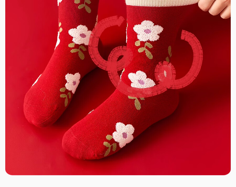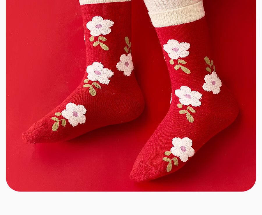 Cat Man (MiiOW) Children's New Year Red Socks Pure Cotton Girls Autumn and Winter One Year Old Baby Boy Cartoon Red New Year Socks Flower Bunny Good Luck Red Socks 5 pairs 9-12 years old Recommended shoe size 32-37
