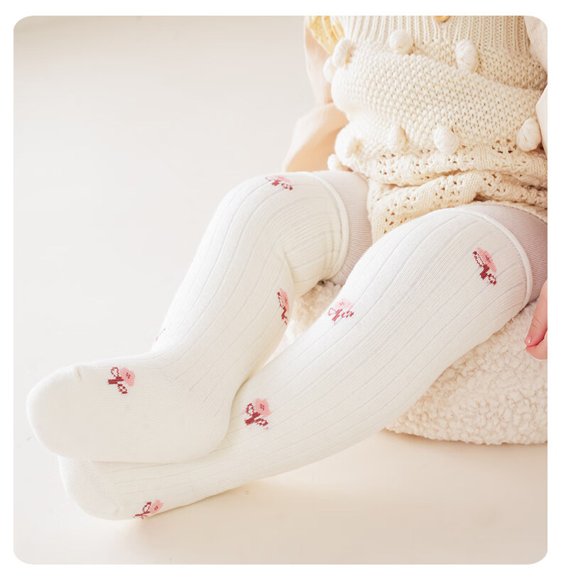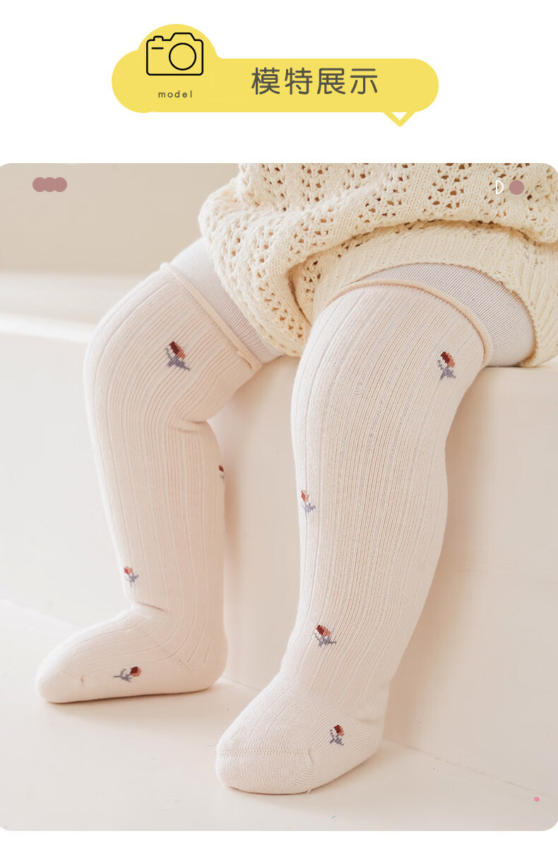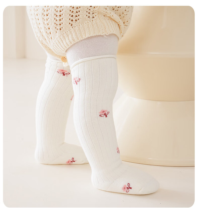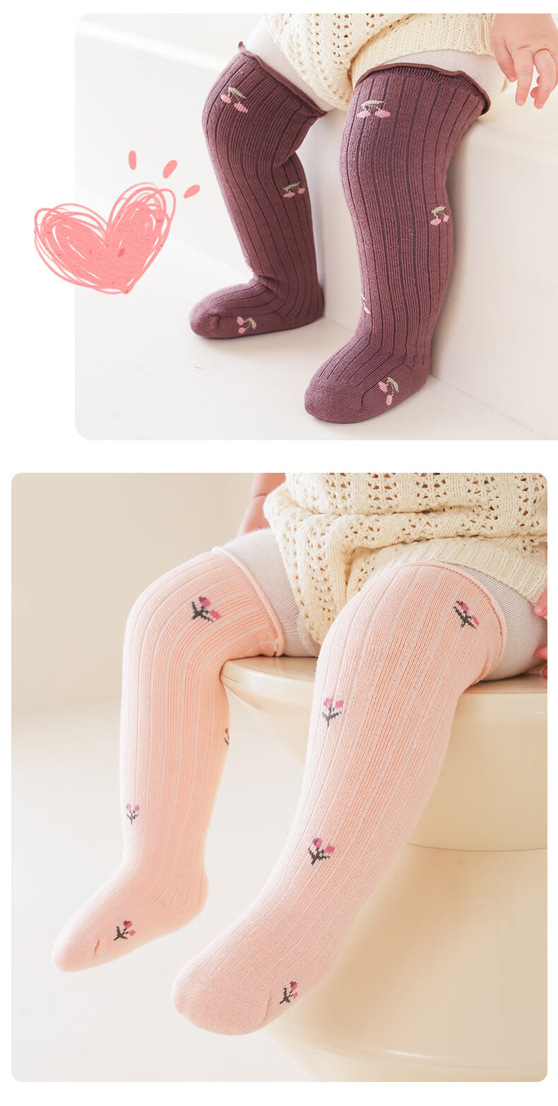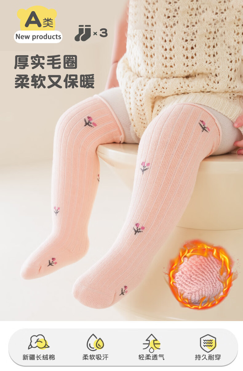 MiiOW baby stockings for autumn and winter, thickened with velvet, over the knee, loose and not tight, girl princess baby socks, boneless pure cotton, plus/thick, brown-beige-pink, 3 pairs, 0-1 years old, S recommended foot length 9-11cm