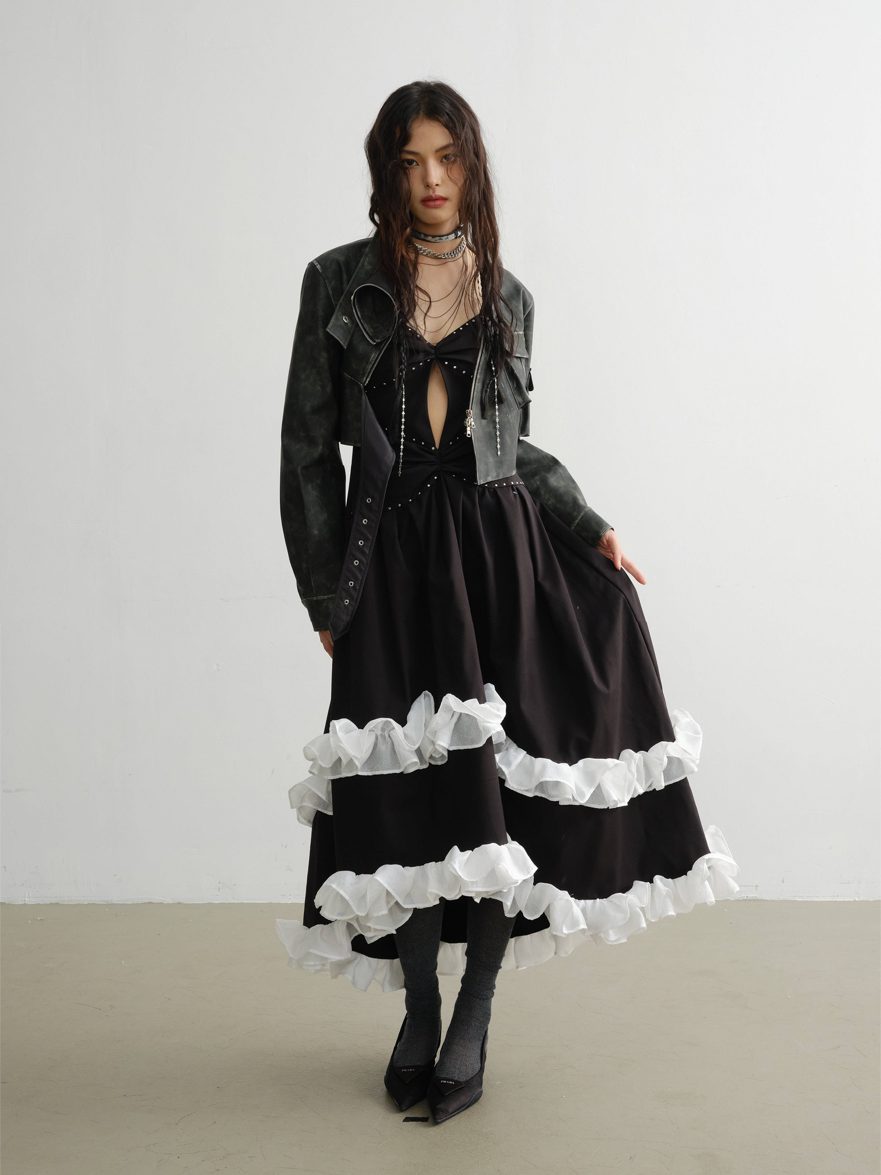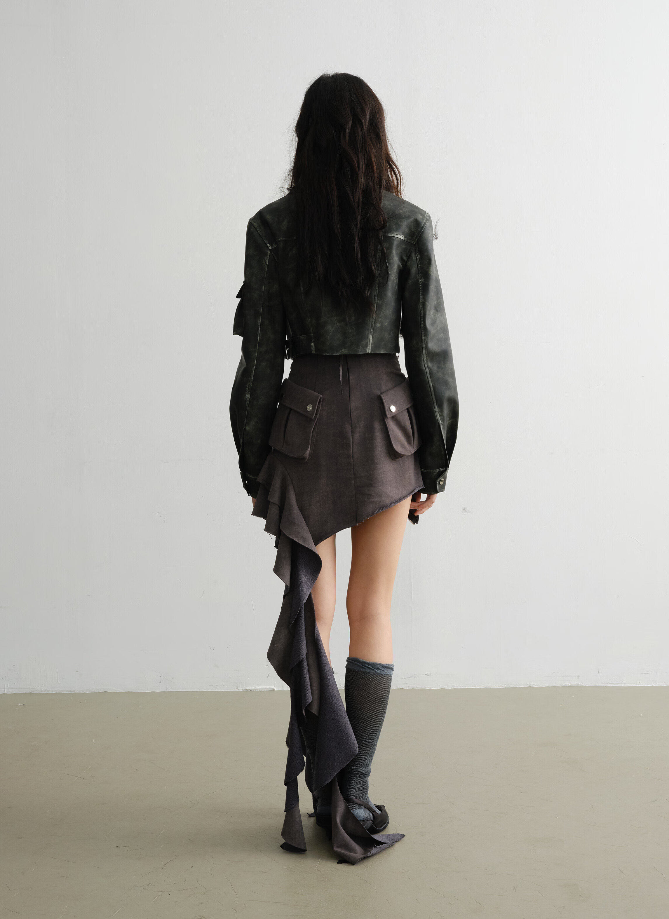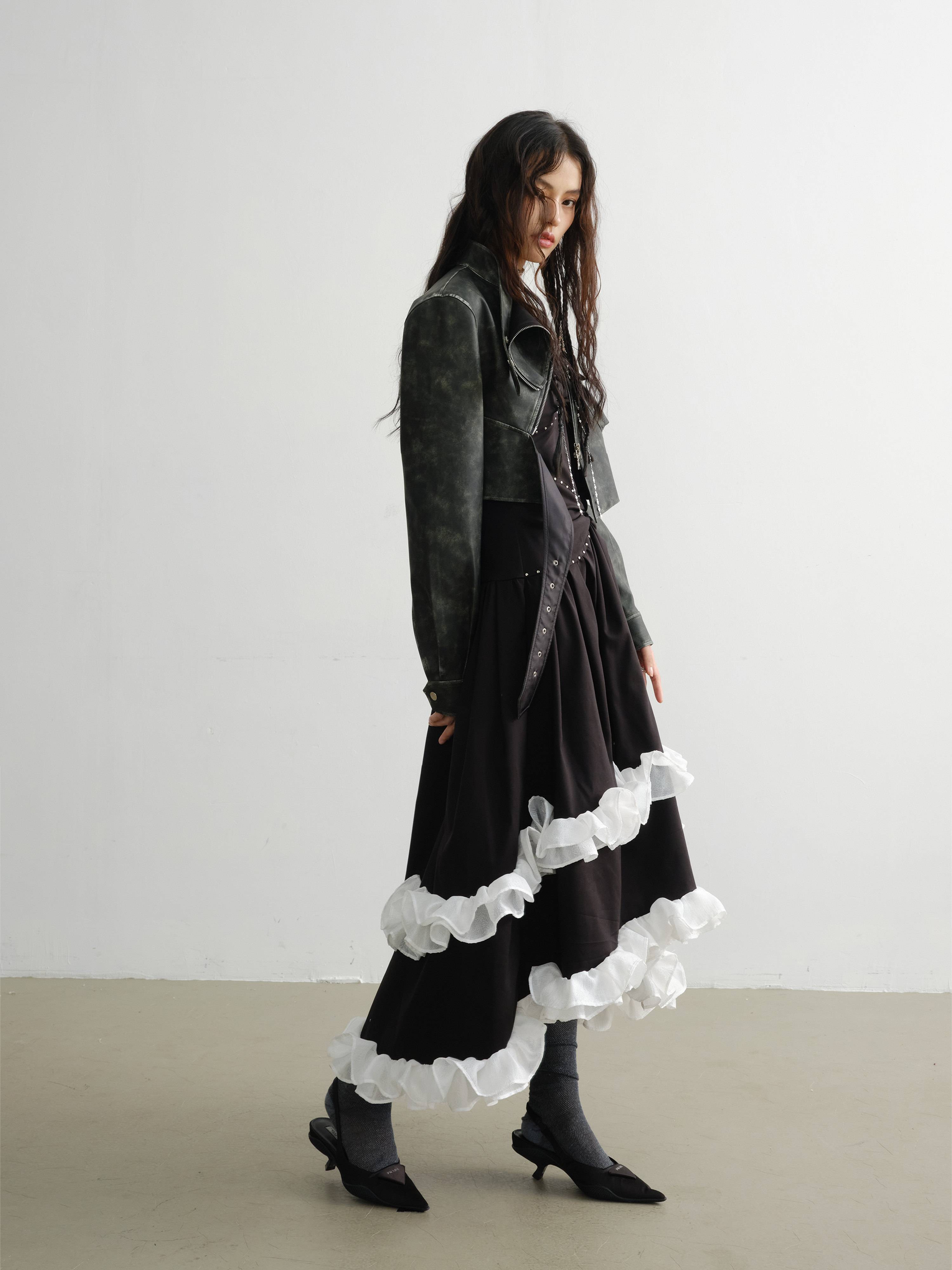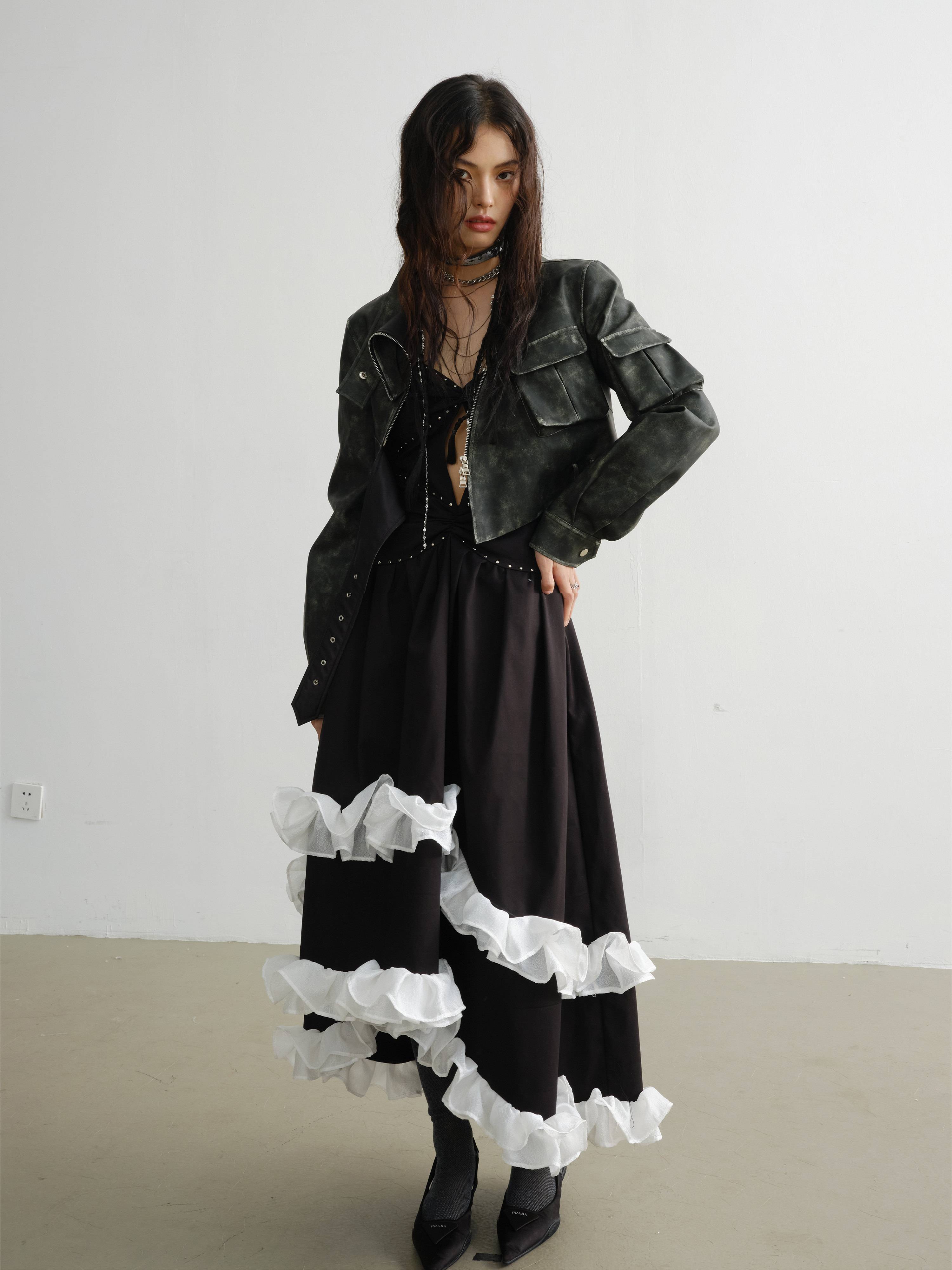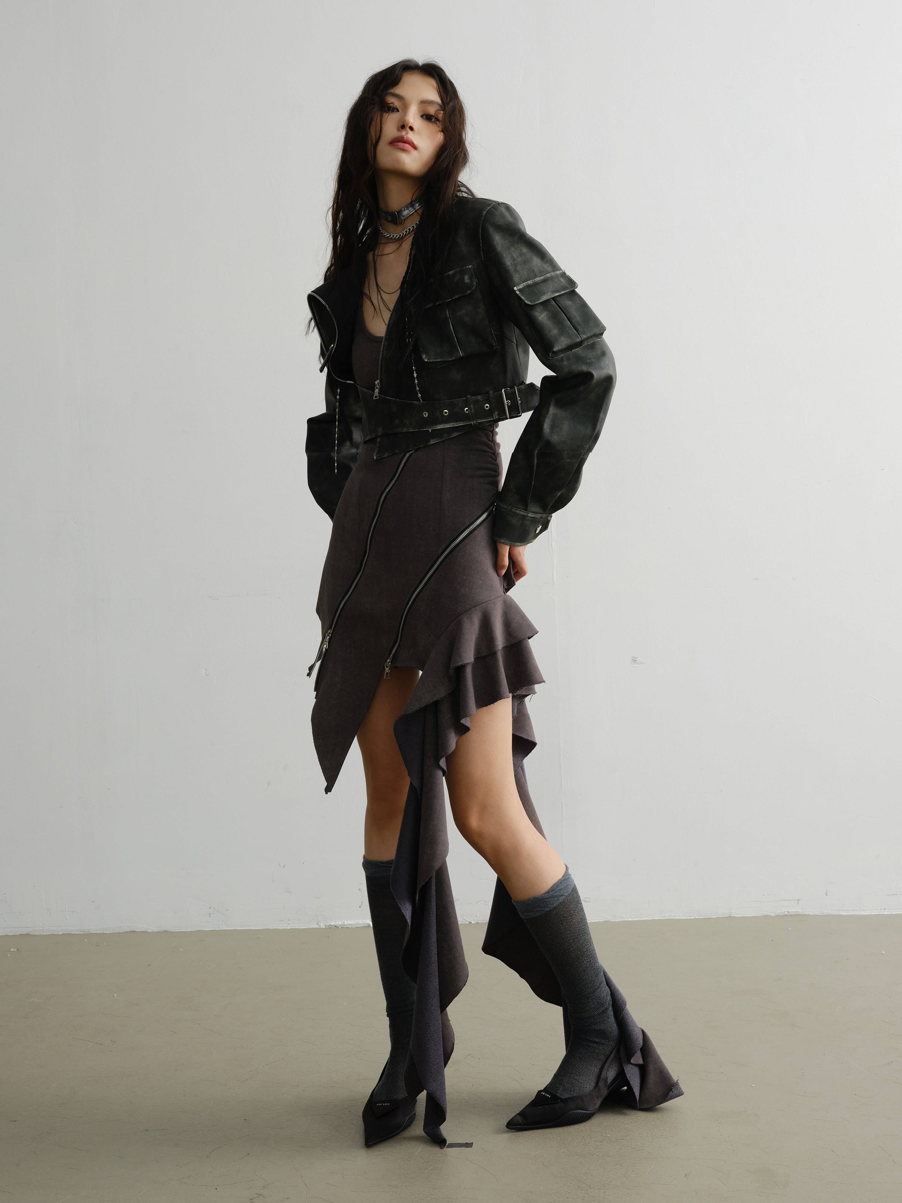 RAINNAN STUDIOS new season's new retro green cool motorcycle girl color rubbing process PU jacket green S