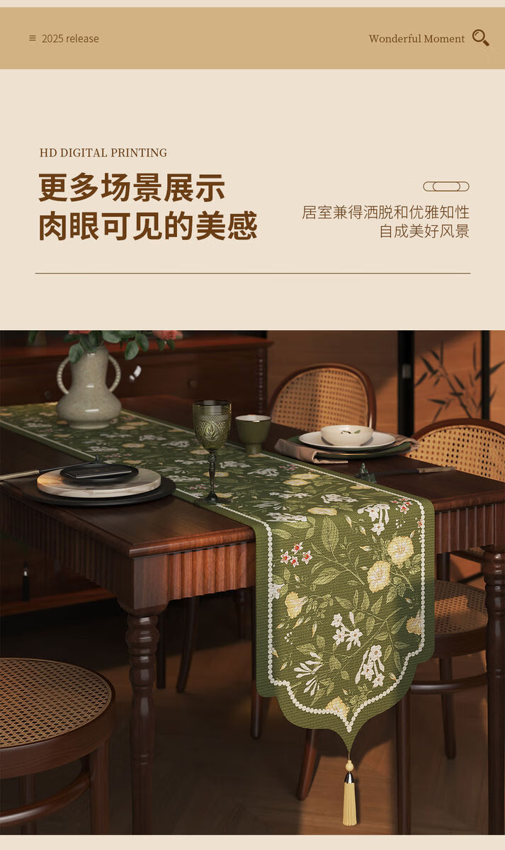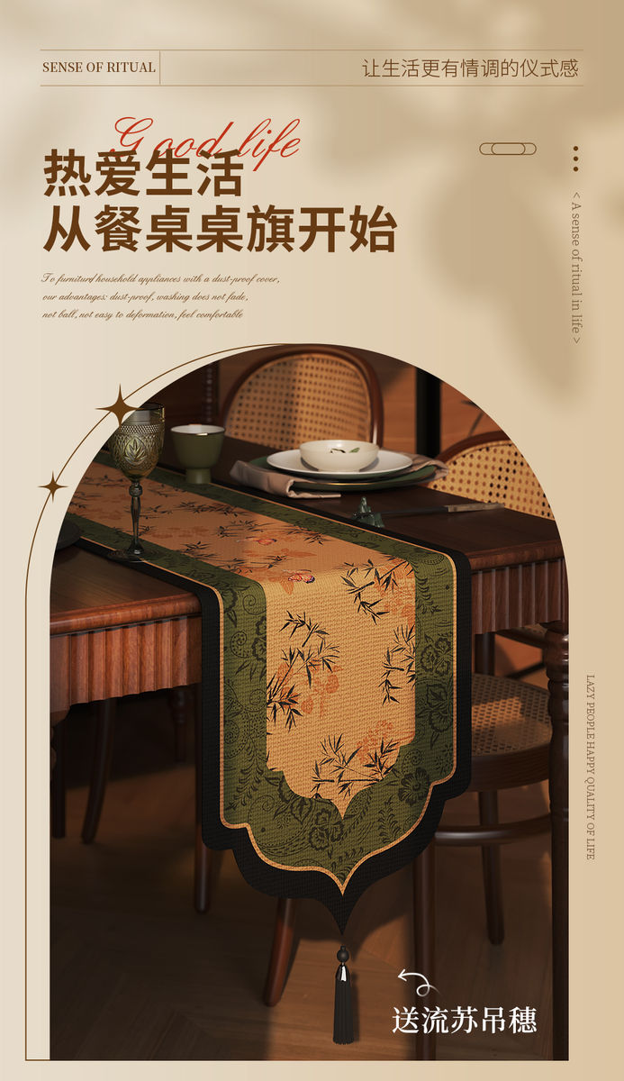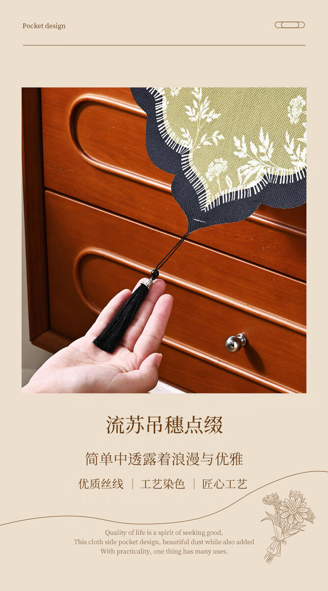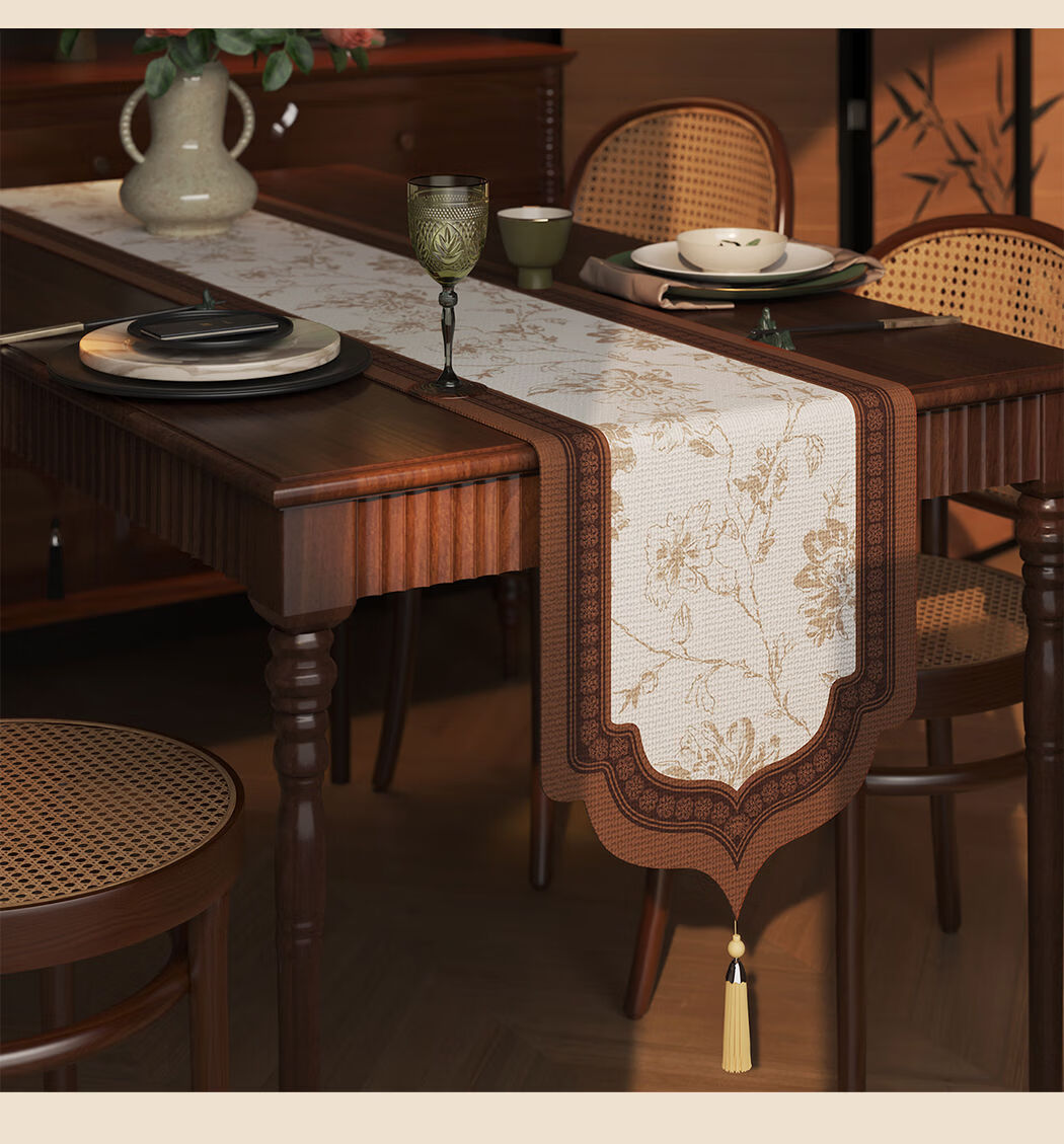 Fantasy style table runner, tablecloth, long coffee table runner, TV cabinet sideboard cover, floral tea sea, triangular rice tassel table runner, linen cloth 30x260cm (applicable to tabletop length 200220cm)