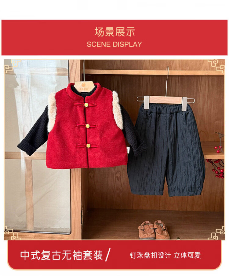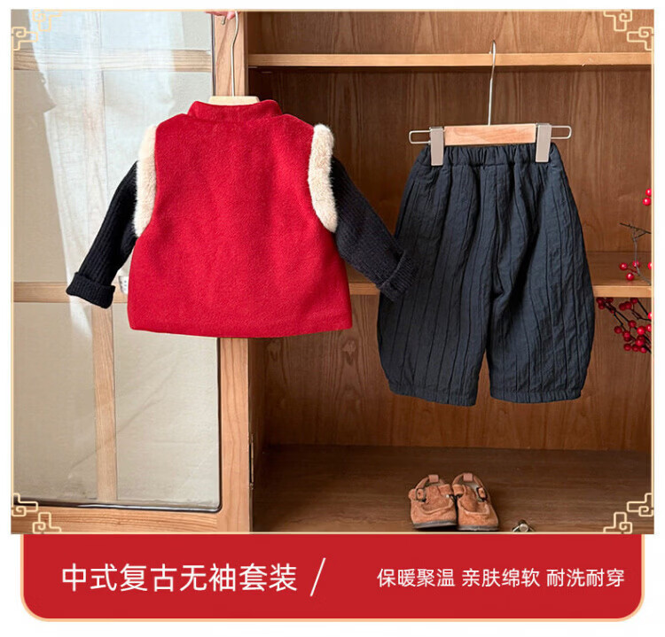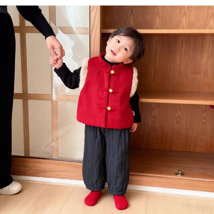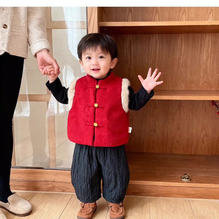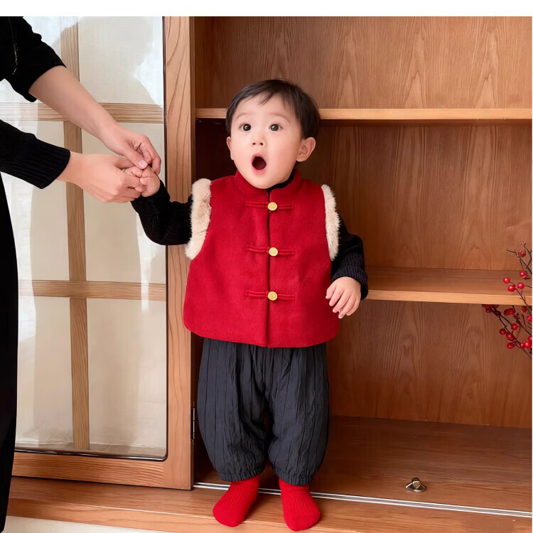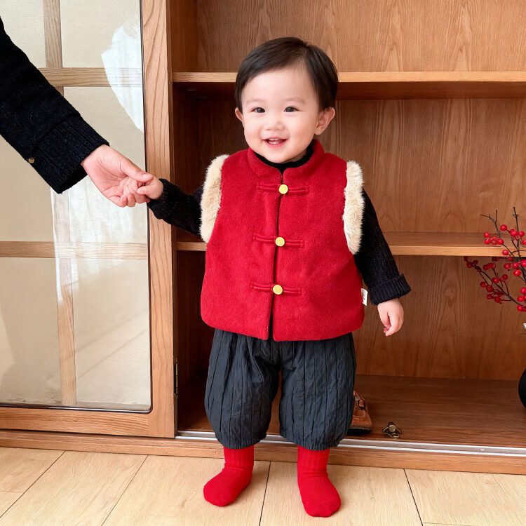 Baby New Year's greeting suit for boys, autumn and winter baby suit, Chinese style boy's red vest, winter warm New Year's greeting suit, 2546 dark red vest quilted 73 cm