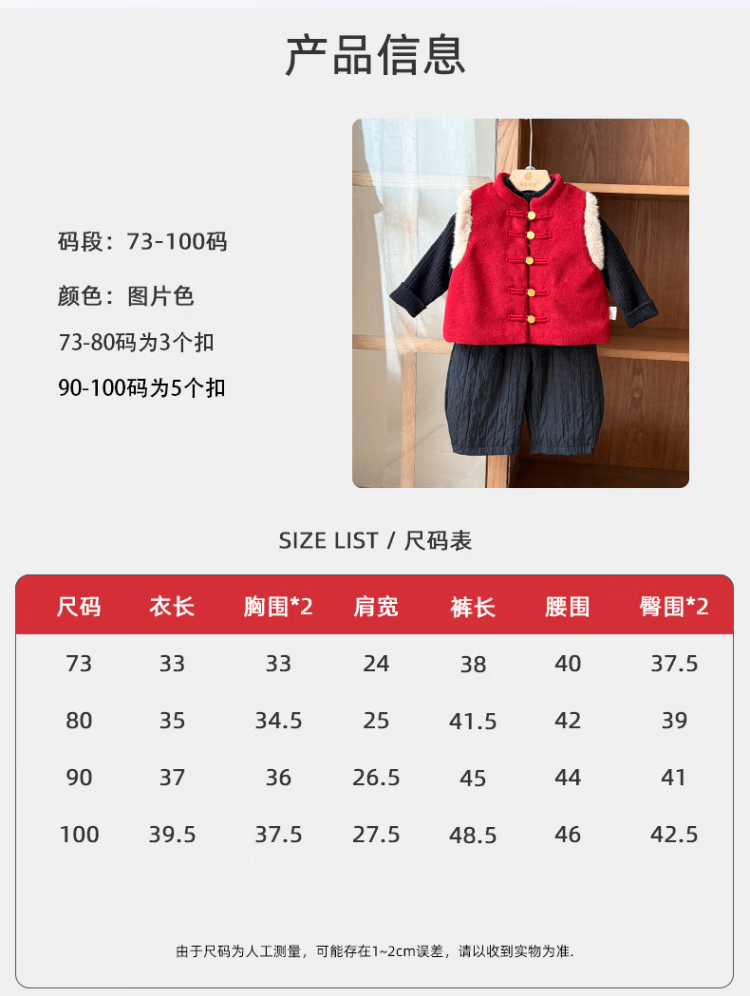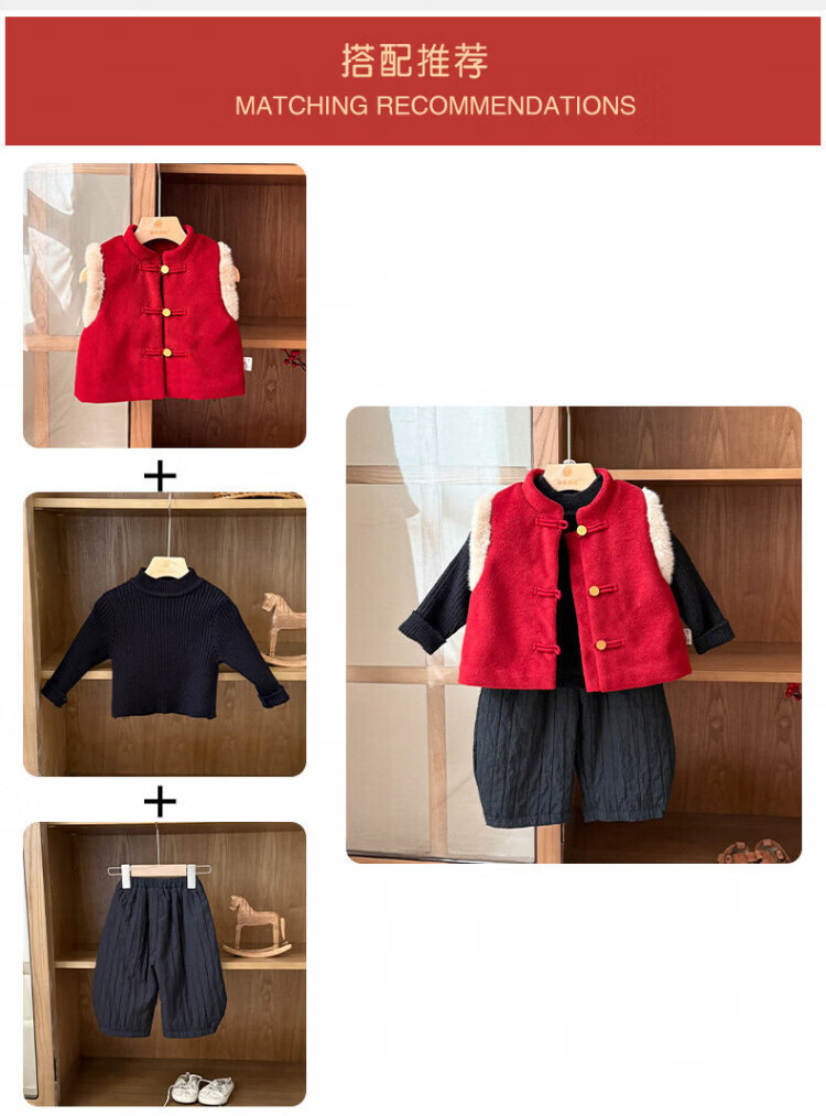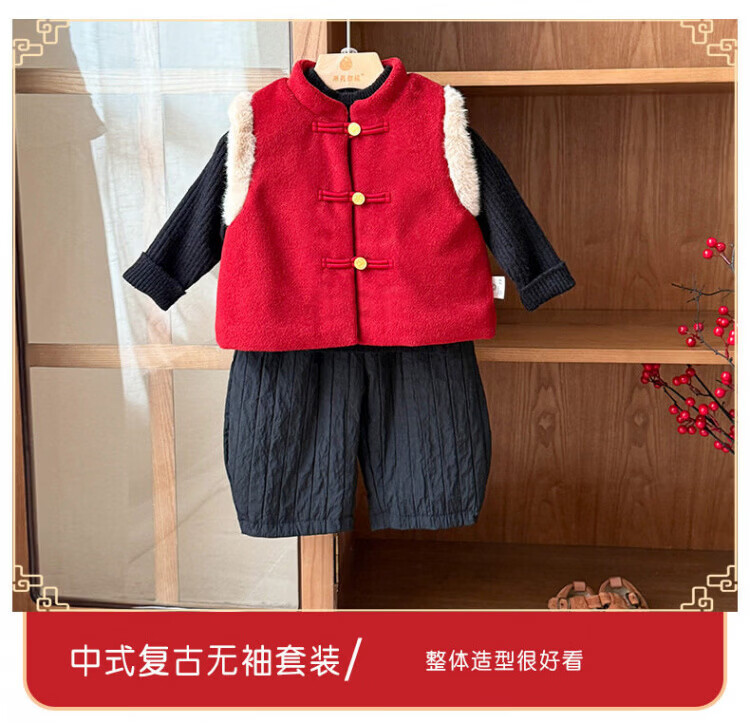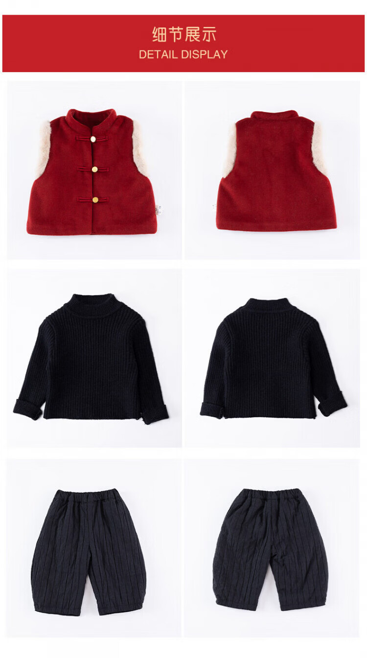 Baby New Year's greeting suit for boys, autumn and winter baby suit, Chinese style boy's red vest, winter warm New Year's greeting suit, 2546 dark red vest quilted 73 cm