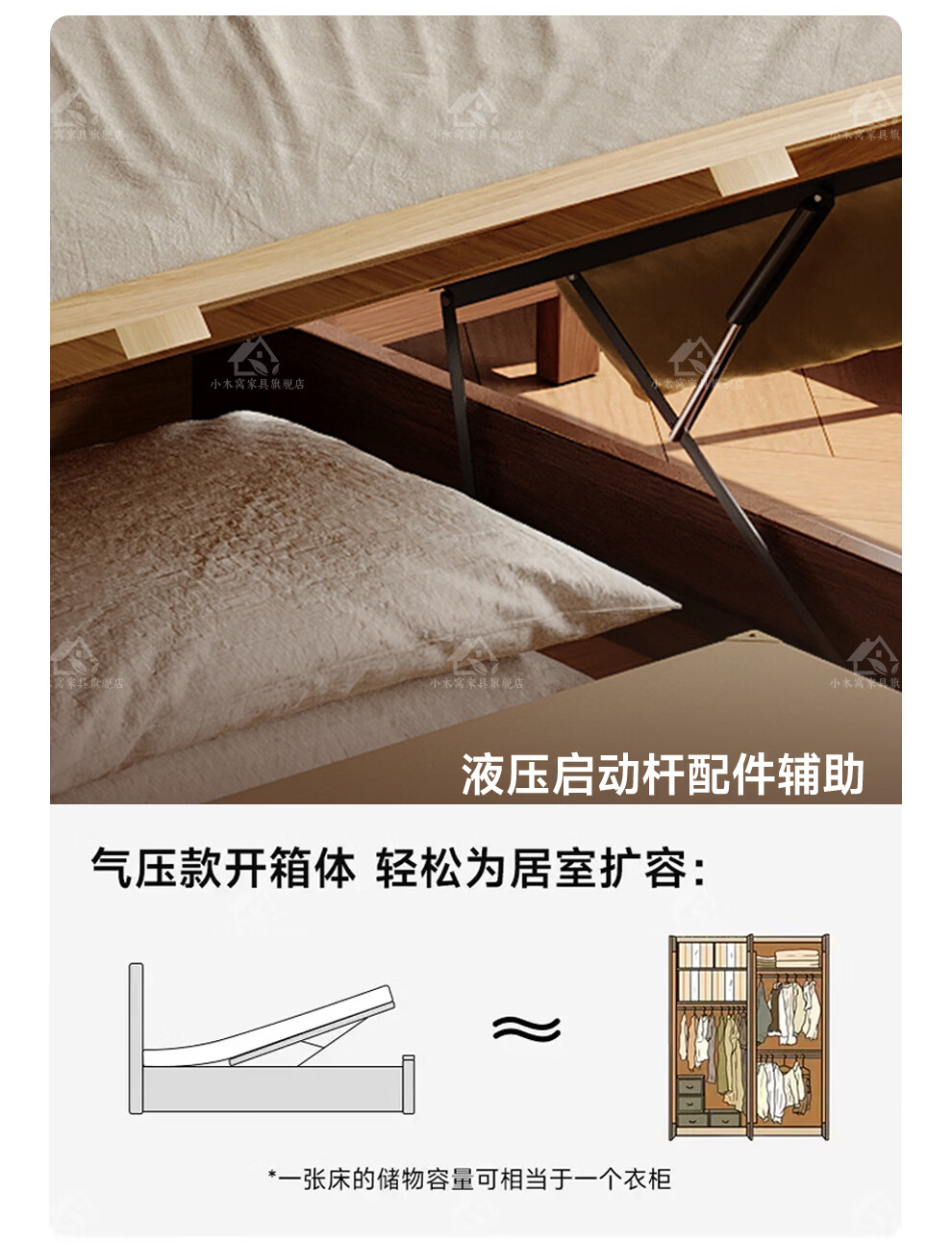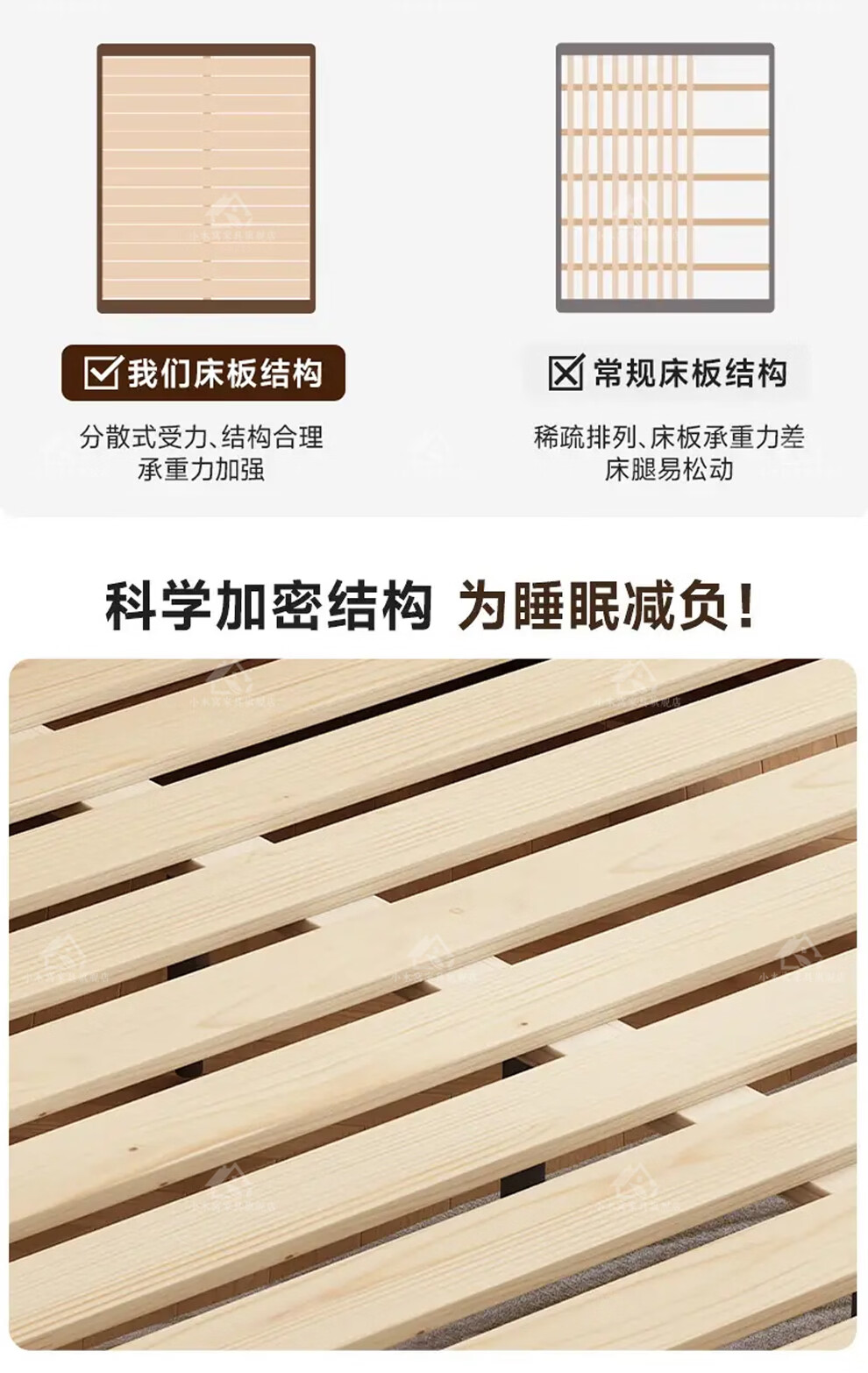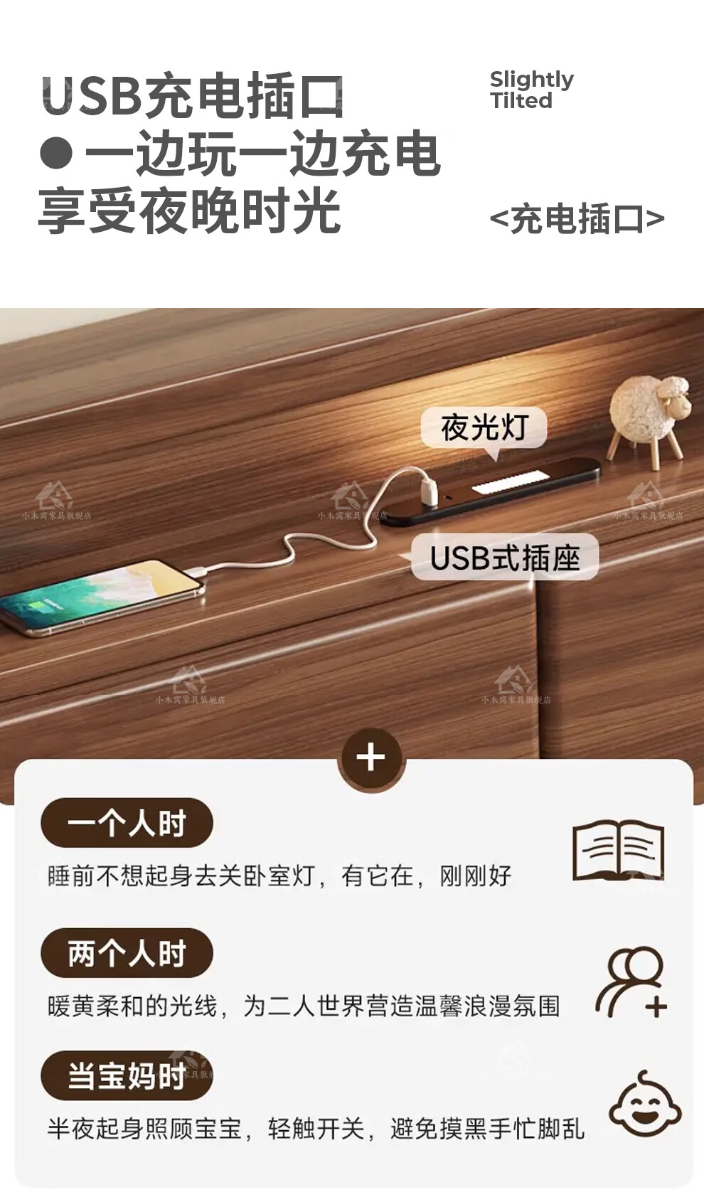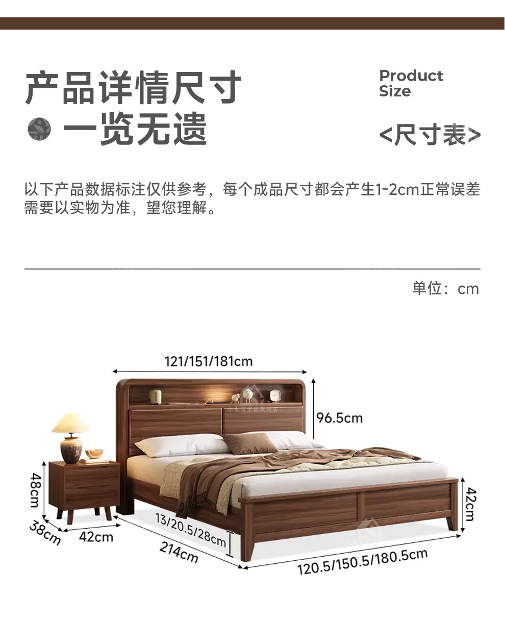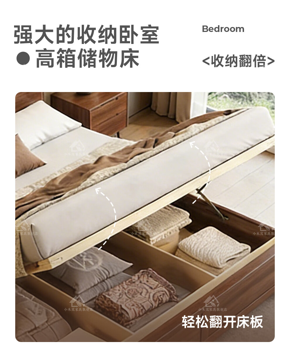 Small wooden nest solid wood bed black walnut mid-century style 1.8m double bed bedroom with light soft package bedside high box storage bed bed silent dovetail bed board 1200*2000 solid wood bedside with light and sub charging