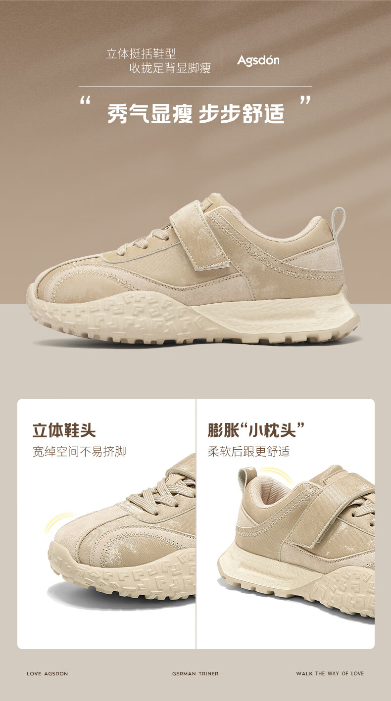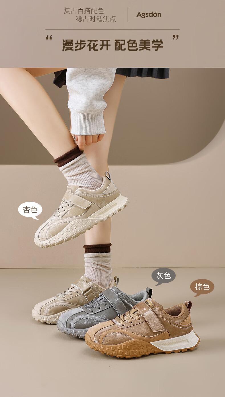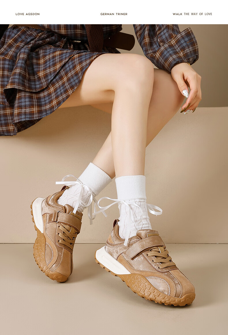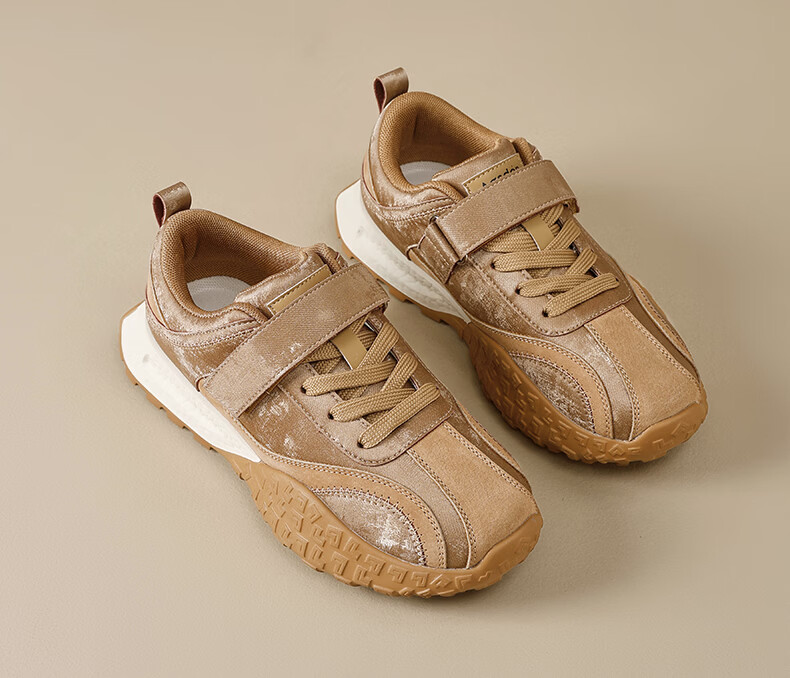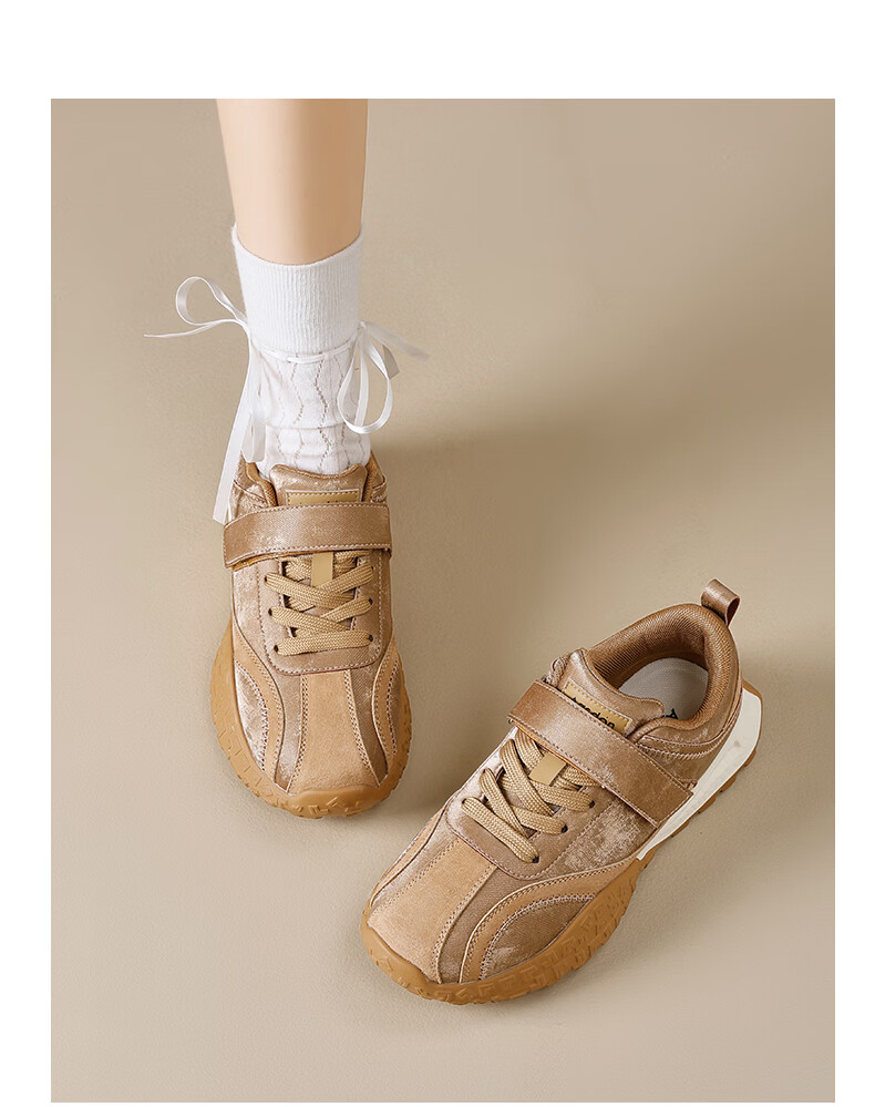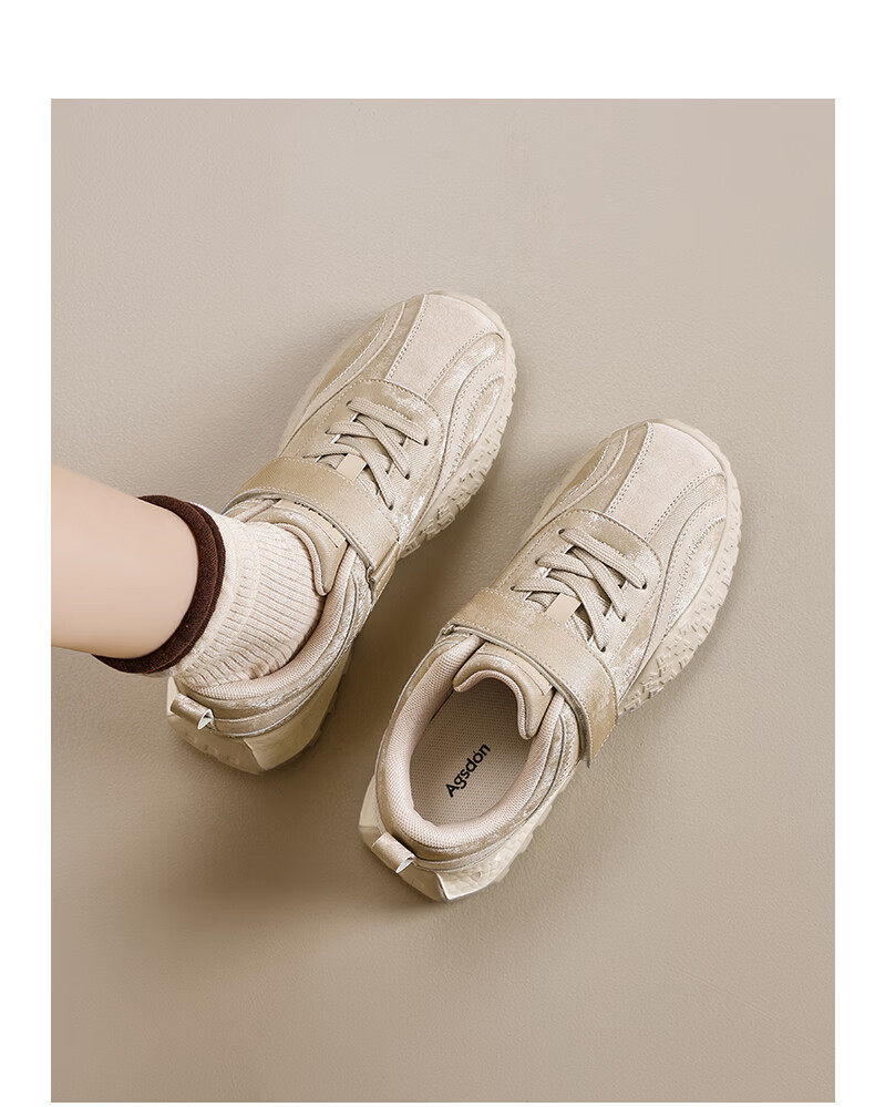Augushiden thick-soled moral training shoes for women spring new retro versatile stitching tall and thin convenient Velcro casual sports shoes P161060 apricot 35