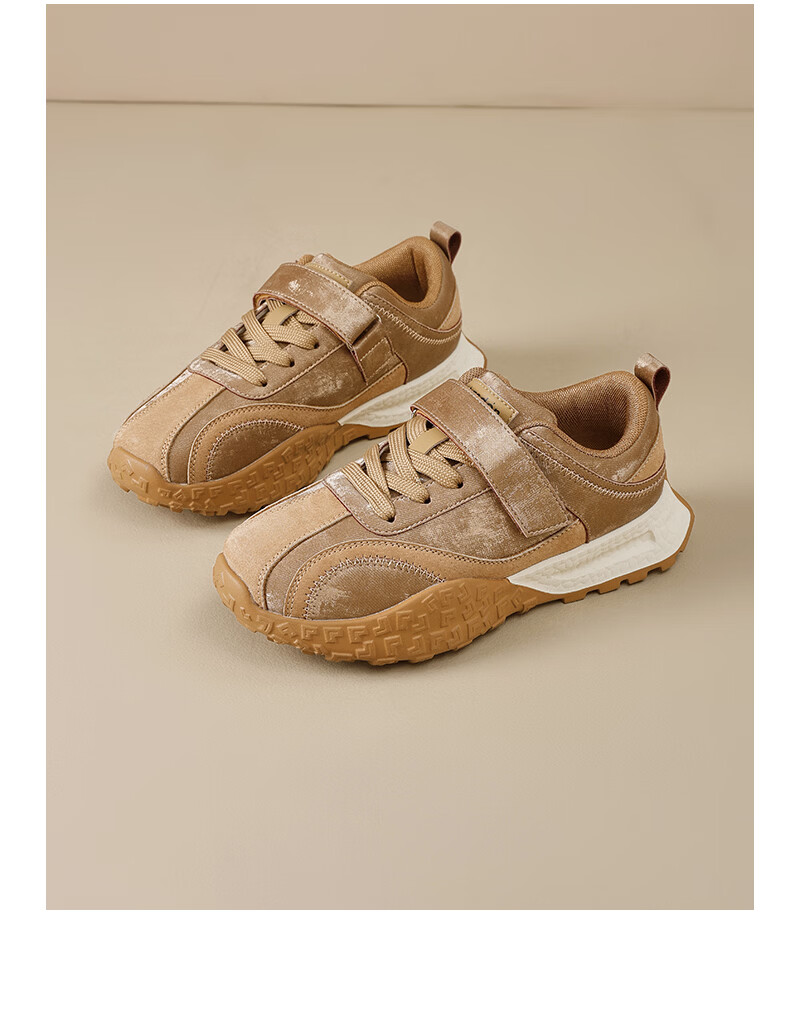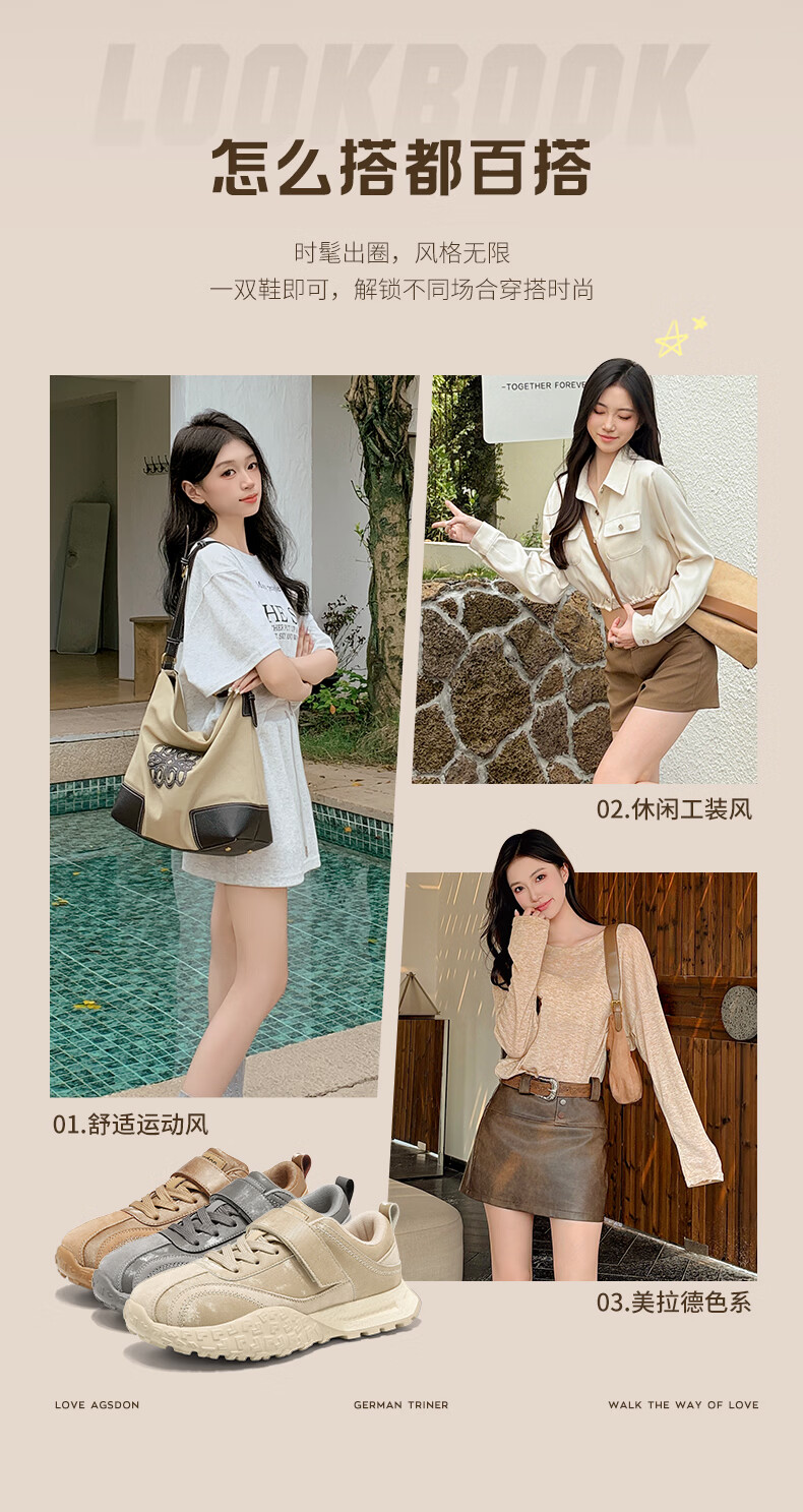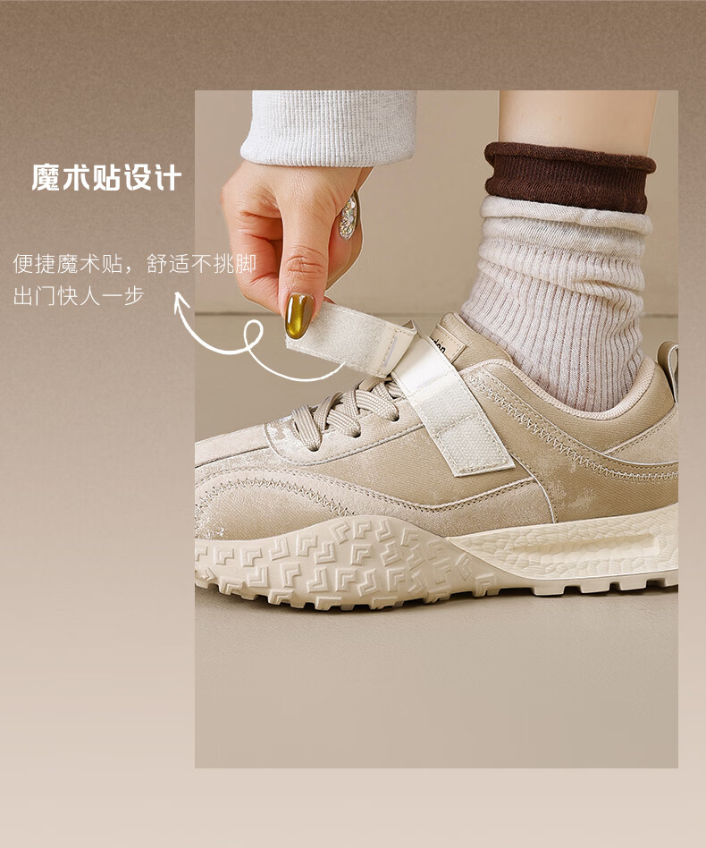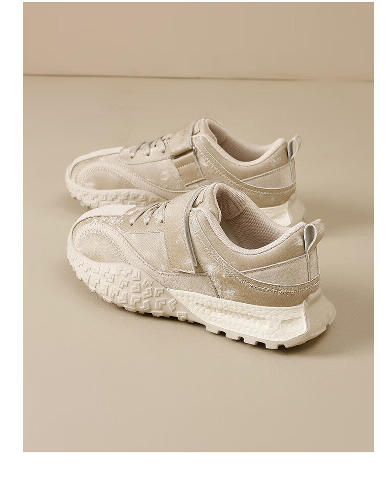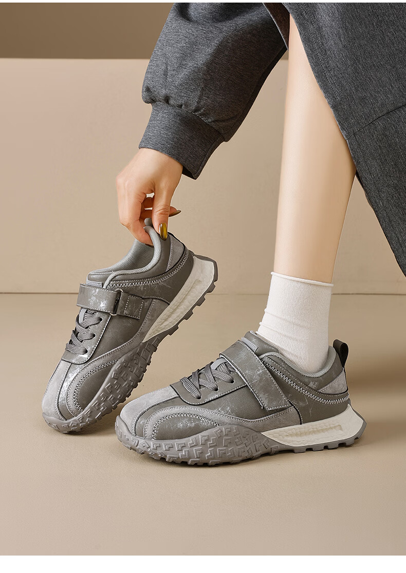 Augushiden thick-soled moral training shoes for women spring new retro versatile stitching tall and thin convenient Velcro casual sports shoes P161060 apricot 35