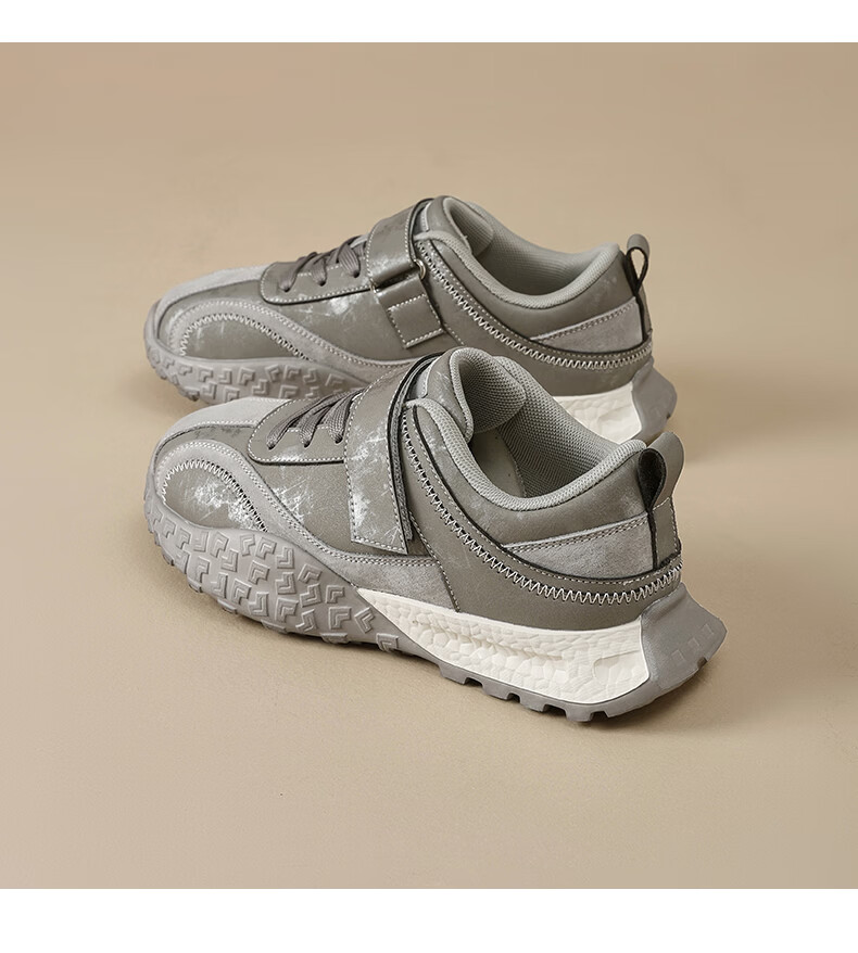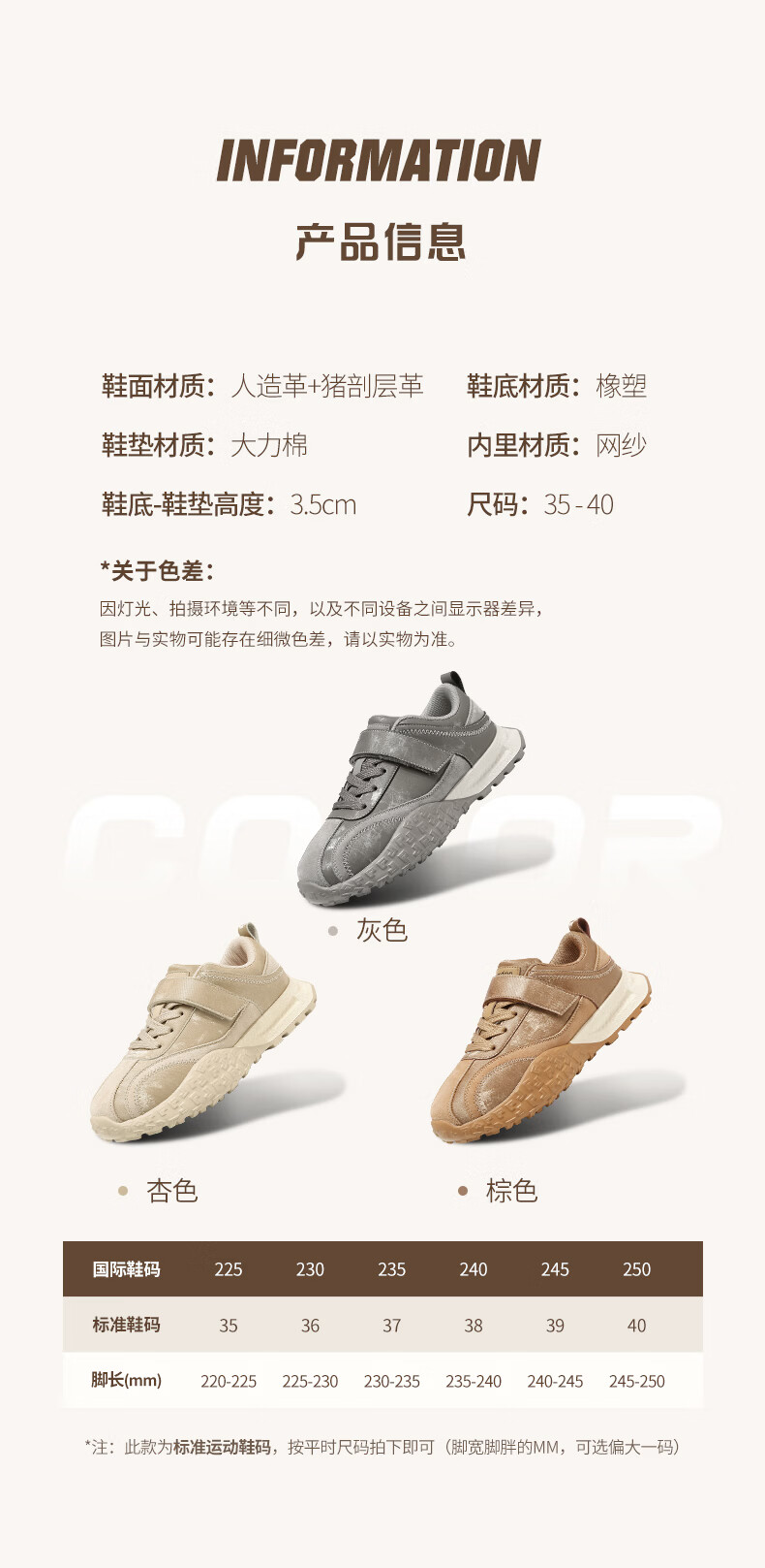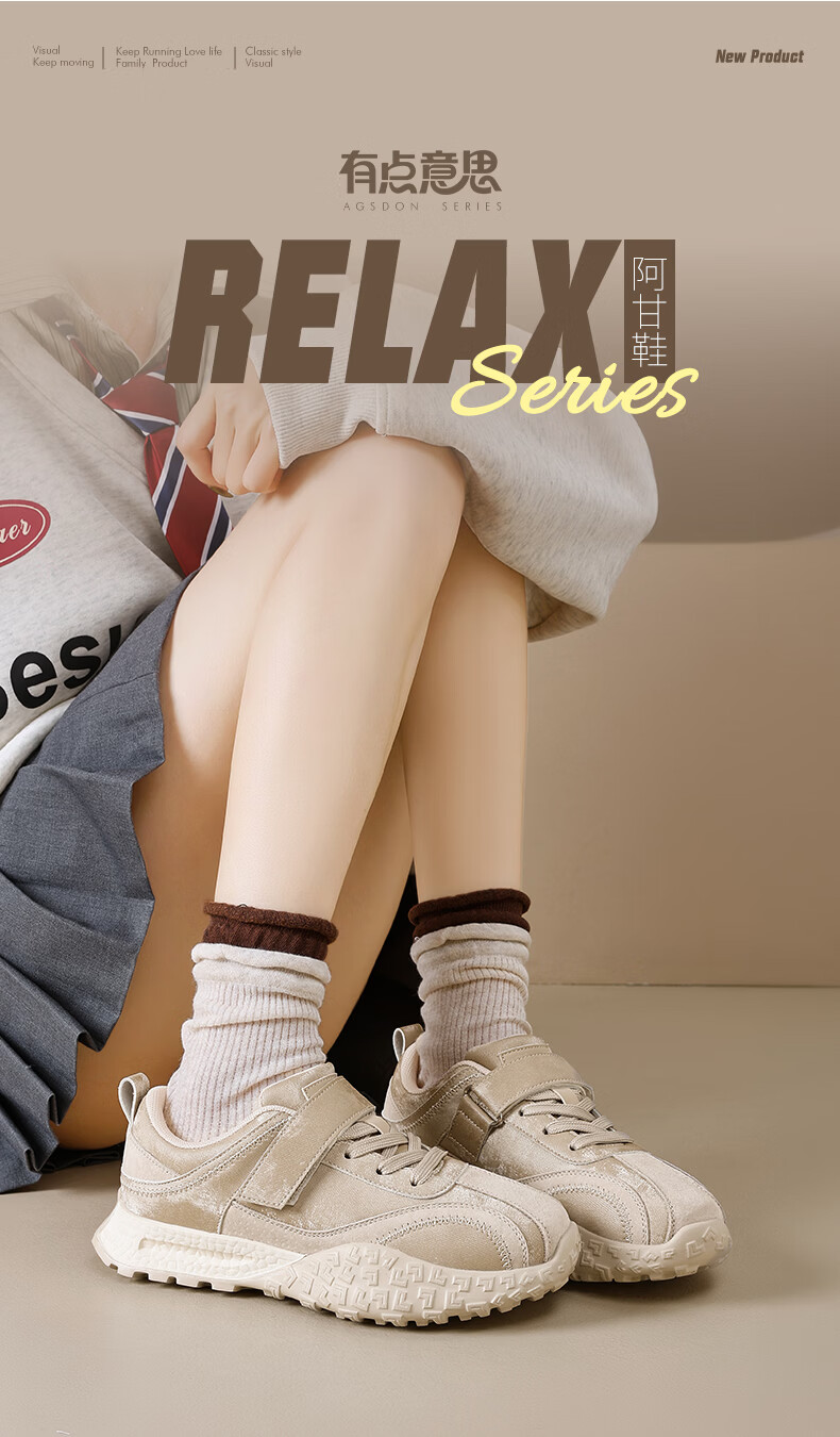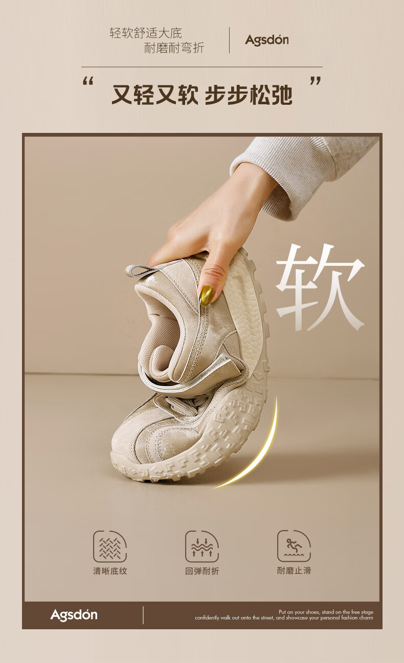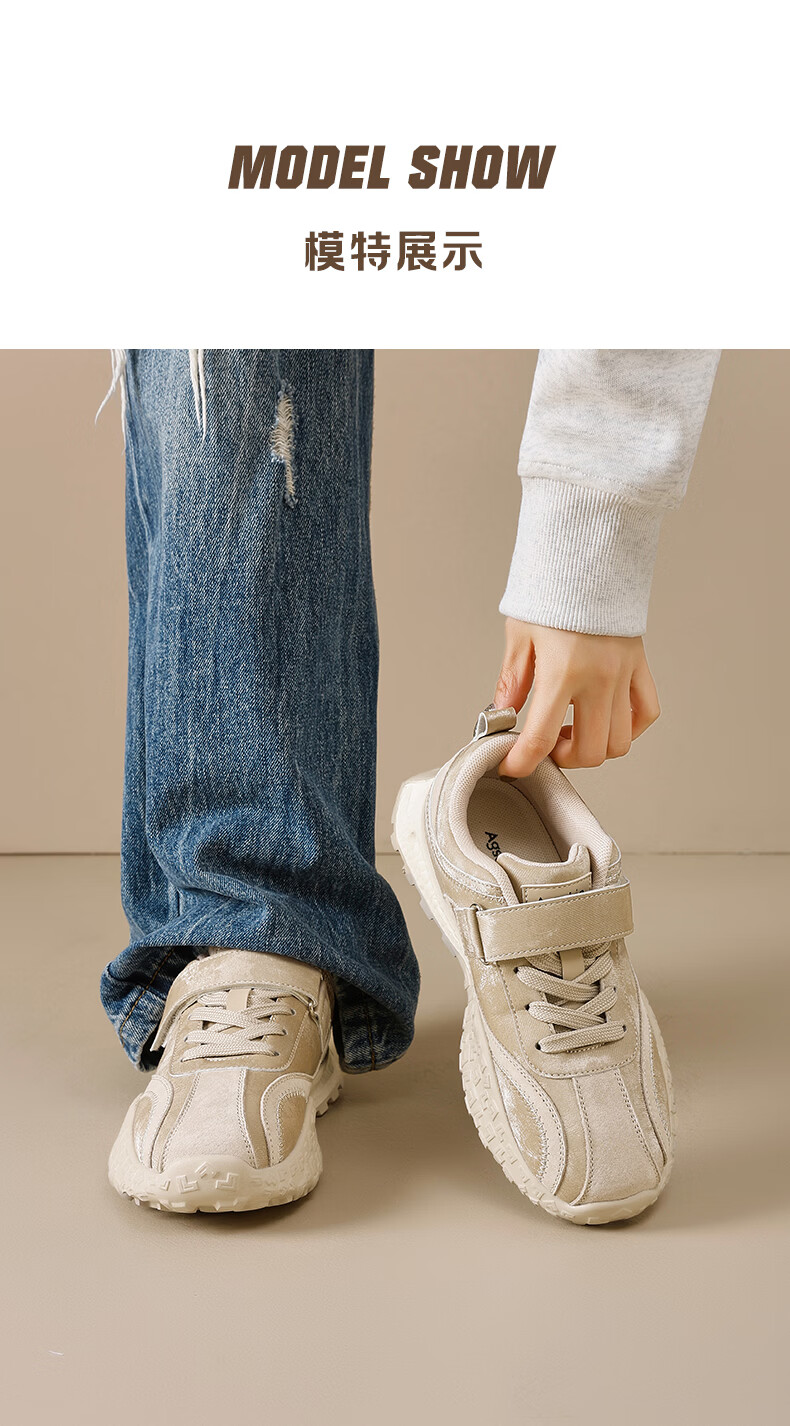 Augushiden thick-soled moral training shoes for women spring new retro versatile stitching tall and thin convenient Velcro casual sports shoes P161060 apricot 35