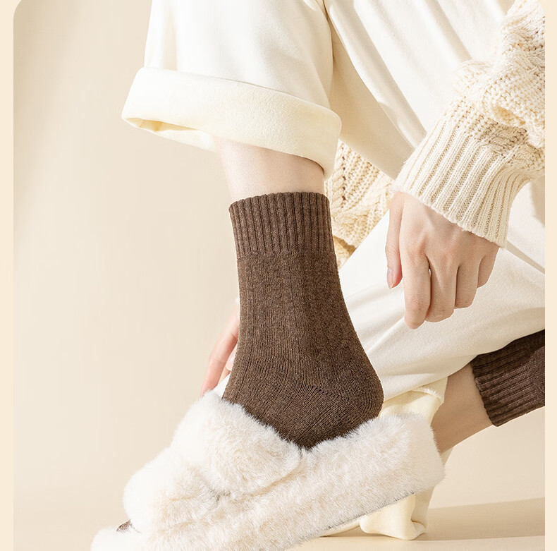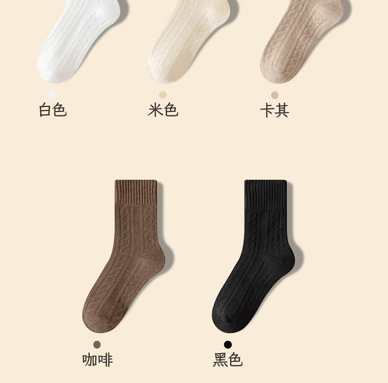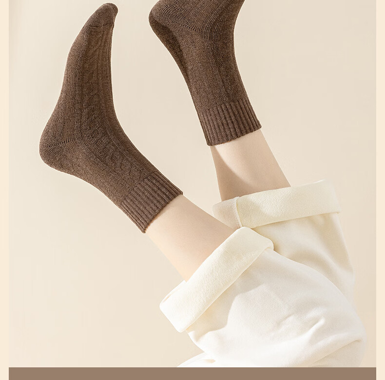 Socks for women in winter, plus velvet and thickened, warm mid-calf cotton socks, 2025 new popular autumn and winter terry confinement stockings, 5 pairs/thickened warm terry, white, beige, khaki, coffee, black, one size fits all (3440 yards), collect and purchase to enjoy priority delivery