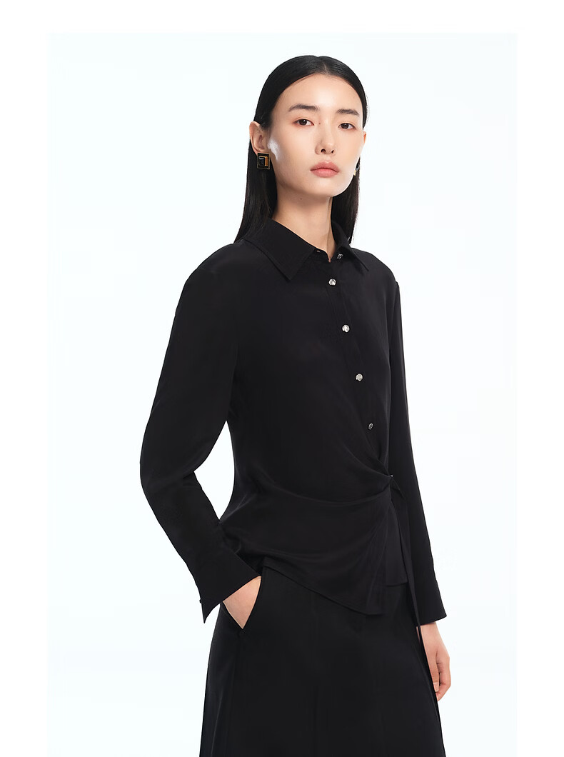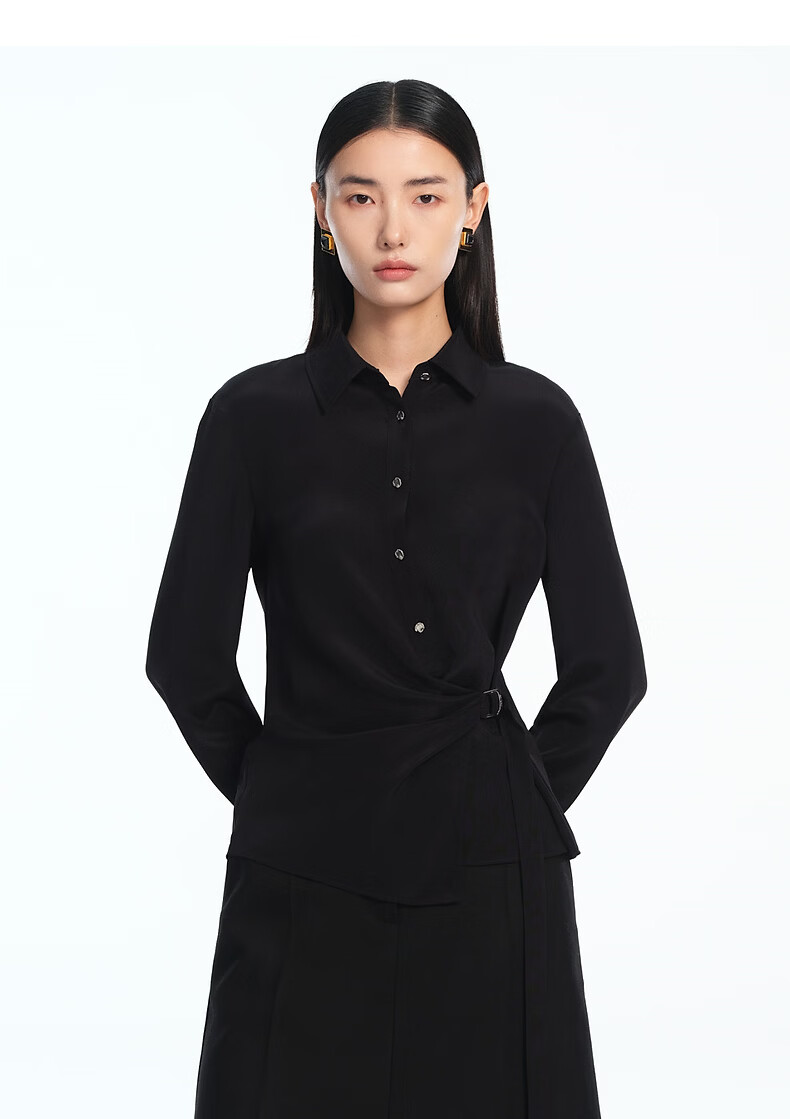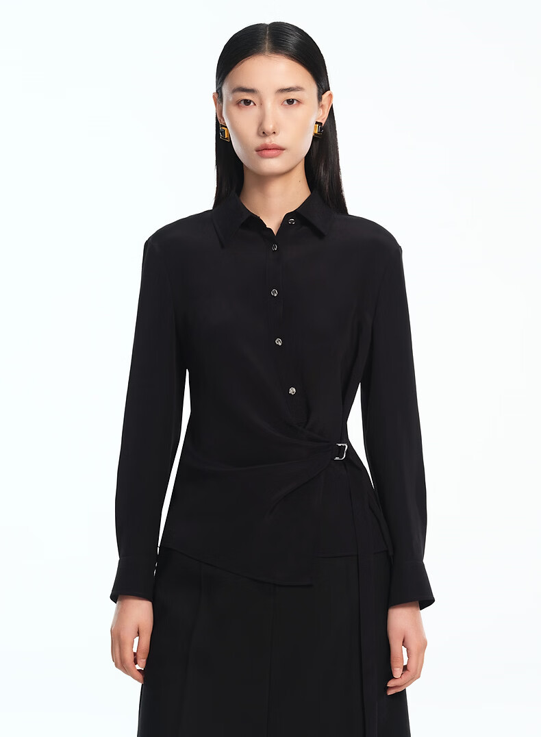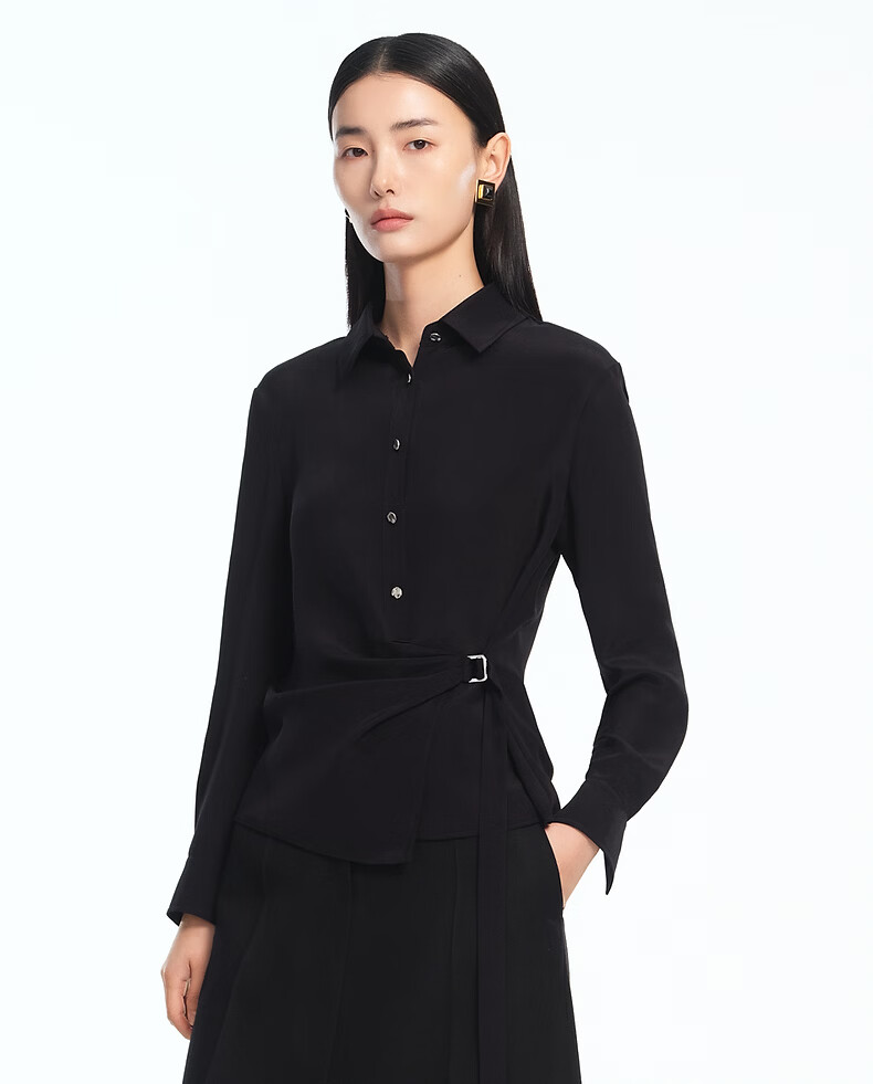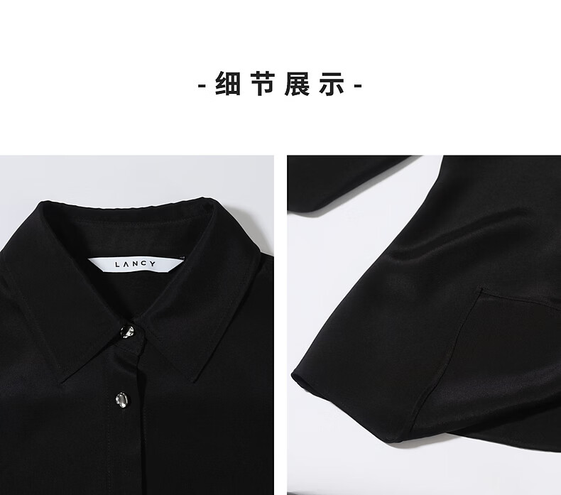 LANCY silk LANCY/Langzi 2026 spring new design waist commuting high-end slim shirt for women black M