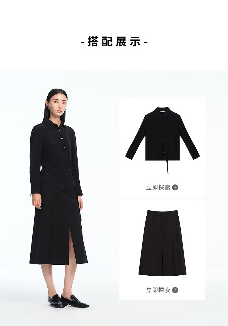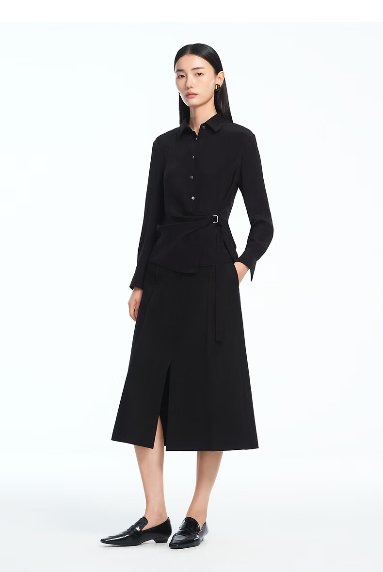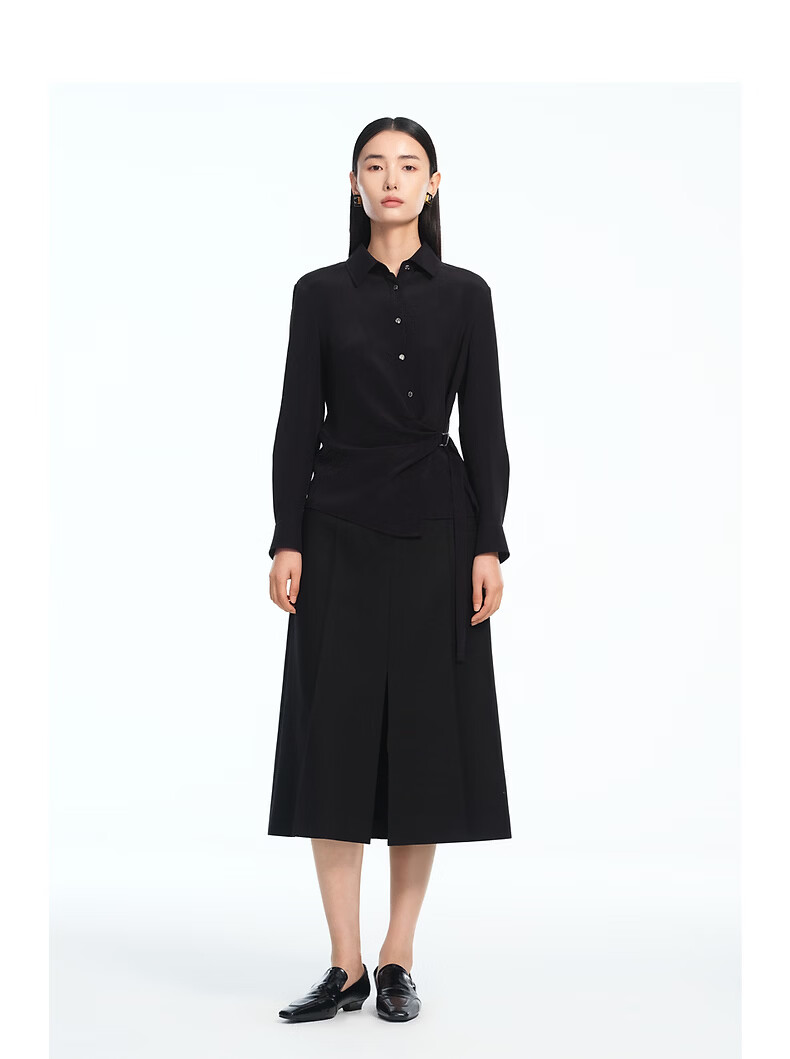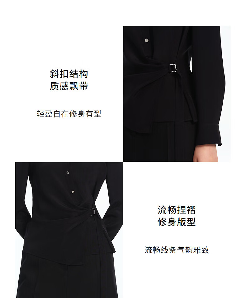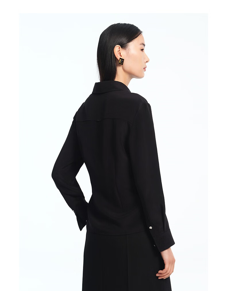 LANCY silk LANCY/Langzi 2026 spring new design waist commuting high-end slim shirt for women black M