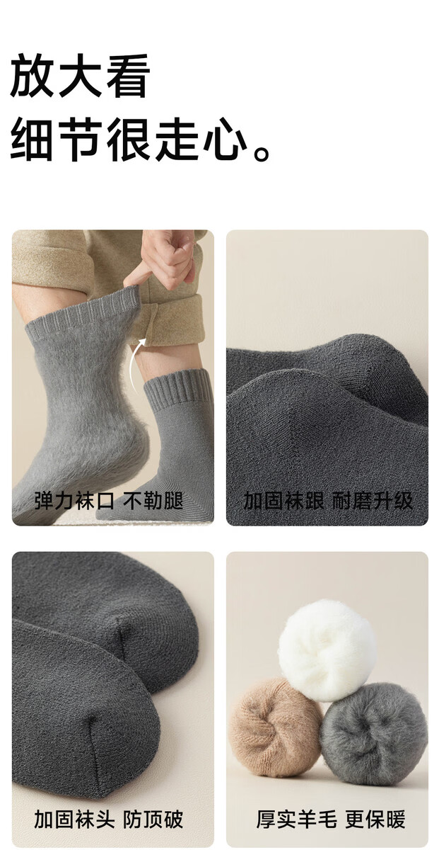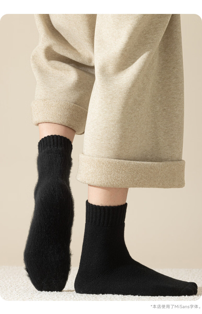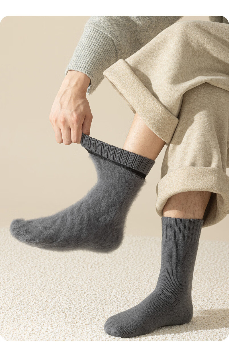 Thickened merino wool socks men's mid-calf socks winter plus velvet Northeast sub-zero warmth and cold protection men's cotton socks Men's 3 pairs/Northeast 40 can be worn 3 black One size fits all Real wool/Northeast cold resistance/10A level antibacterial One size 39