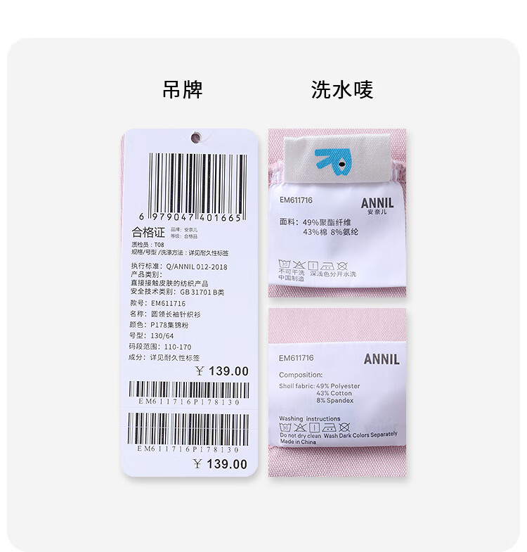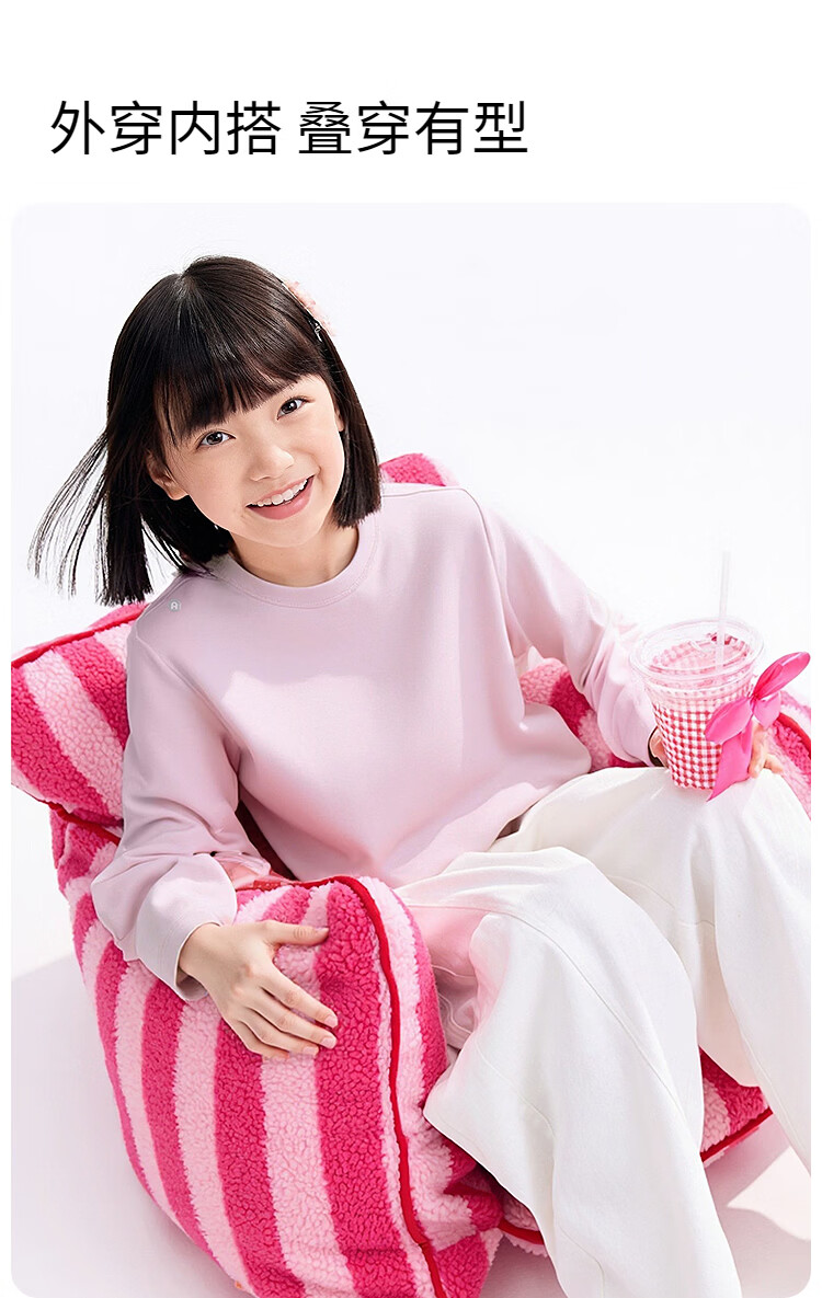 Annil (Annil) children's clothing for boys and girls round neck long-sleeved sweater 2026 spring new collection powder 110