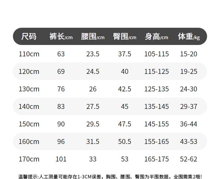China (cm) 160-165/84-86 165-170 / 88-90 167-172 / 92-96 168-173 / 98-102 170-176 / 106-110