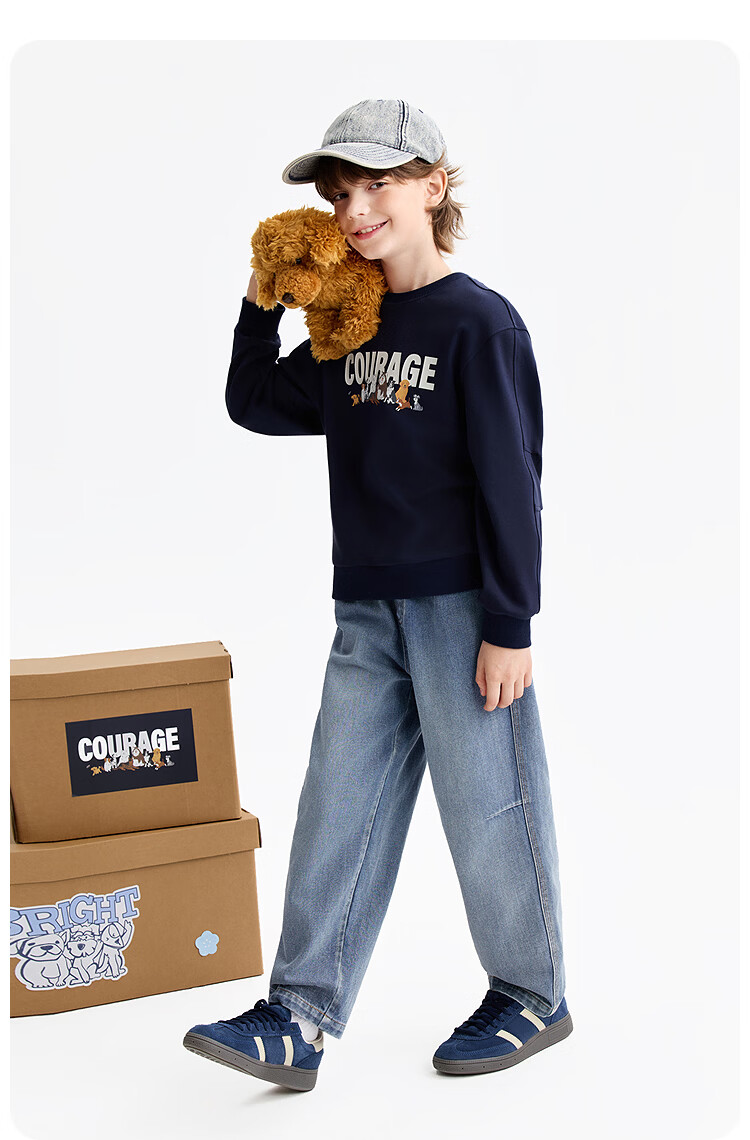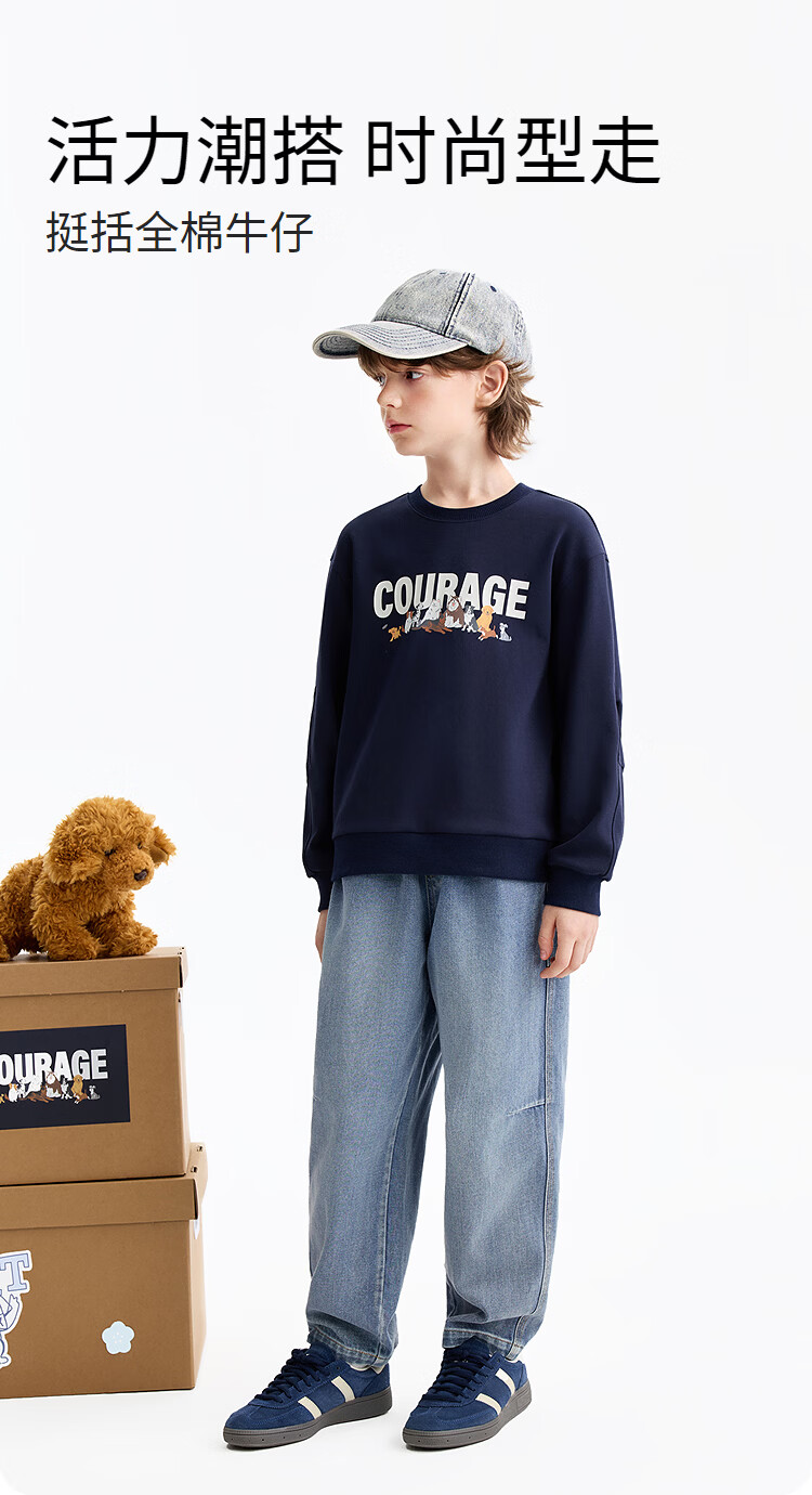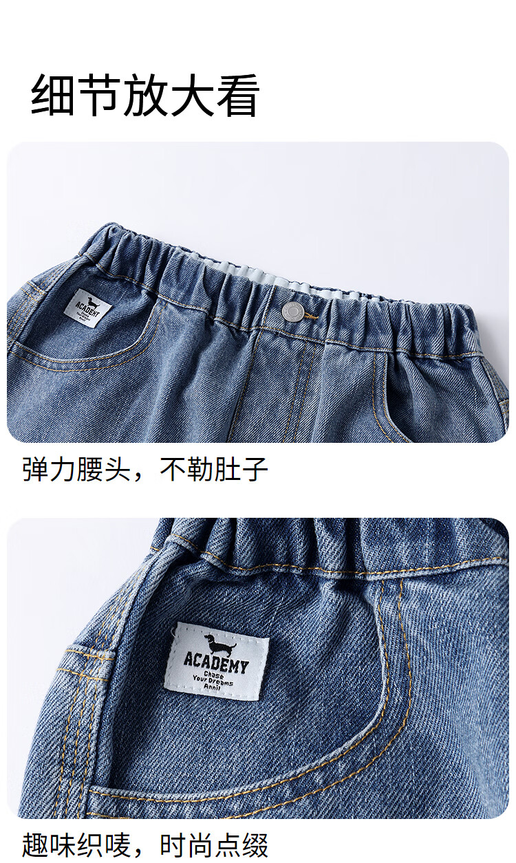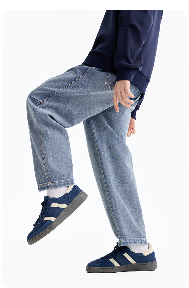 Annil children's clothing boys' full-waist denim pants 2026 spring new style medium blue denim 110