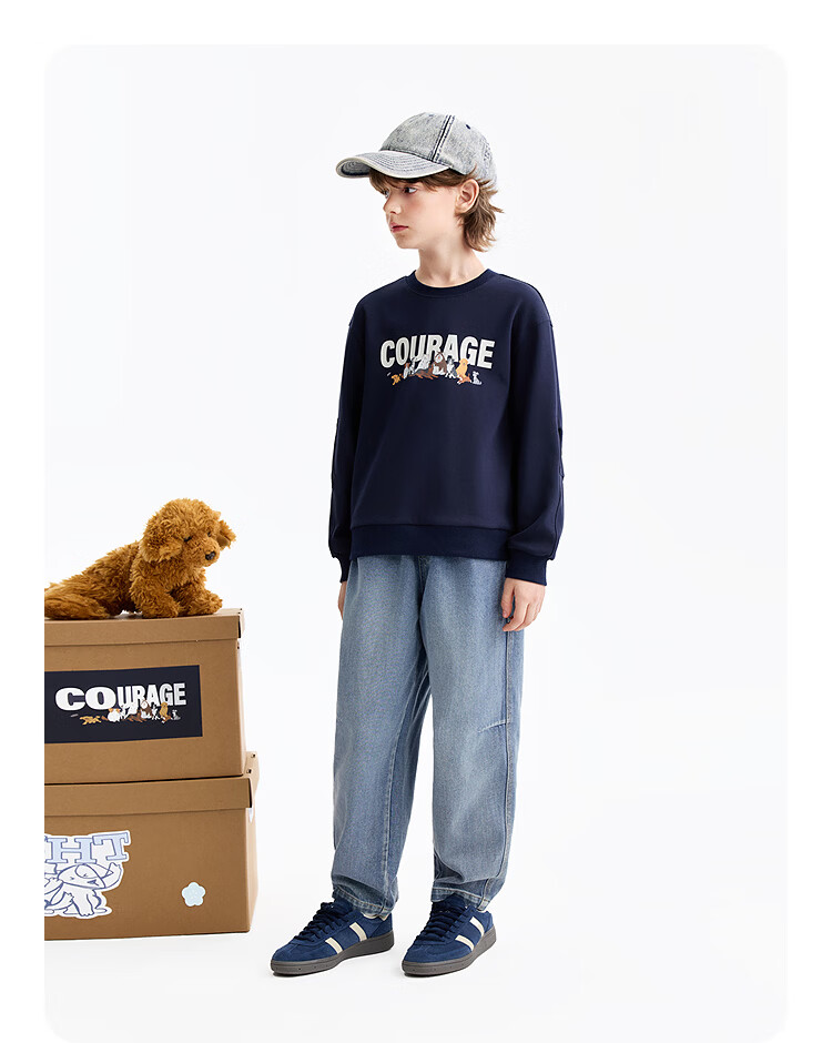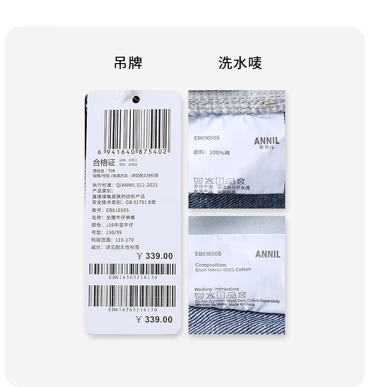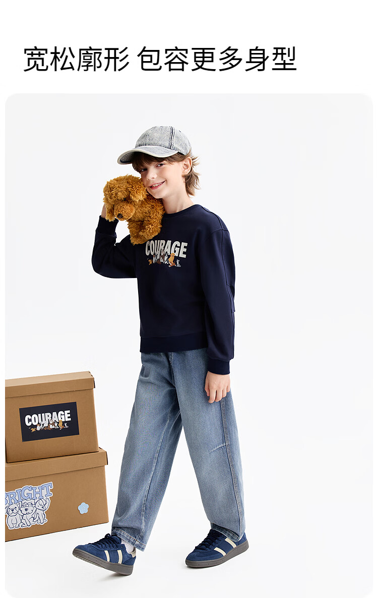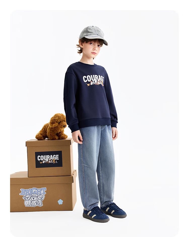 Annil children's clothing boys' full-waist denim pants 2026 spring new style medium blue denim 110