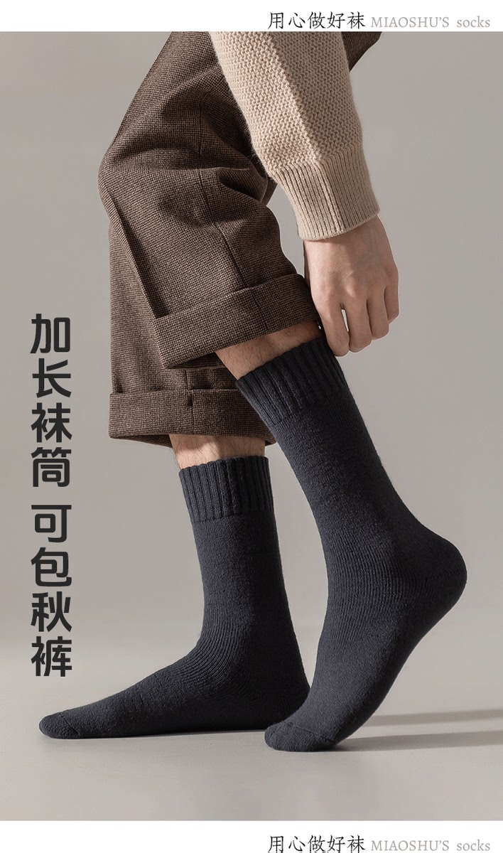 Harbin tourism thermal equipment Mohe winter Northeast Snow Town cold-proof long cotton socks autumn and winter minus 40 degrees 2 pairs black one size fits all men's size 4045 lengthened tube heating velvet