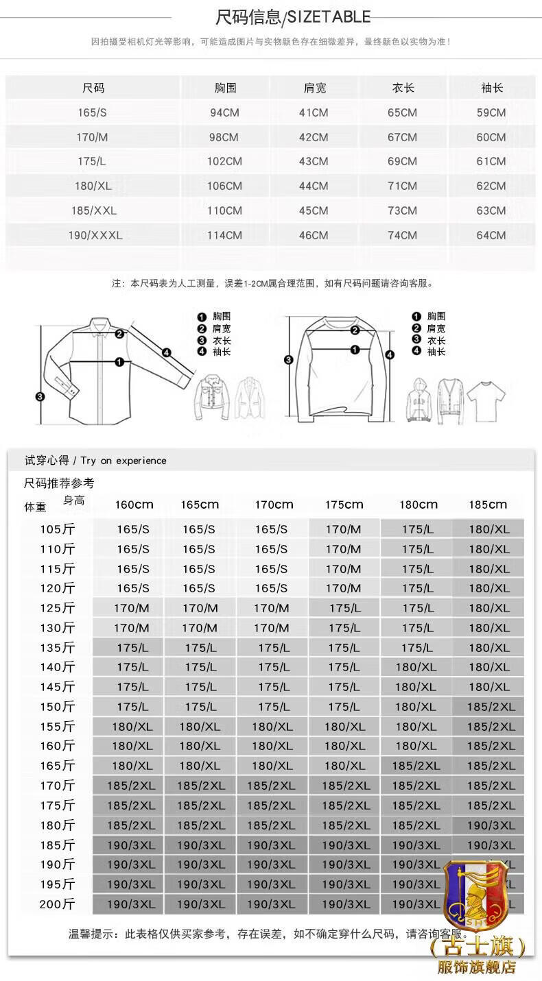 China (cm) 165 / 88-90 170 / 96-98 175 / 108-110 180 / 118-122 185 / 126-130