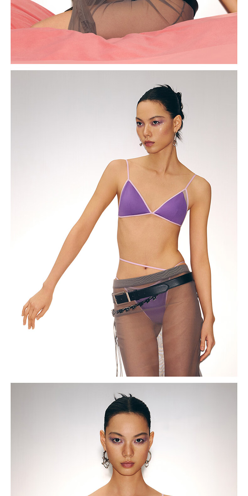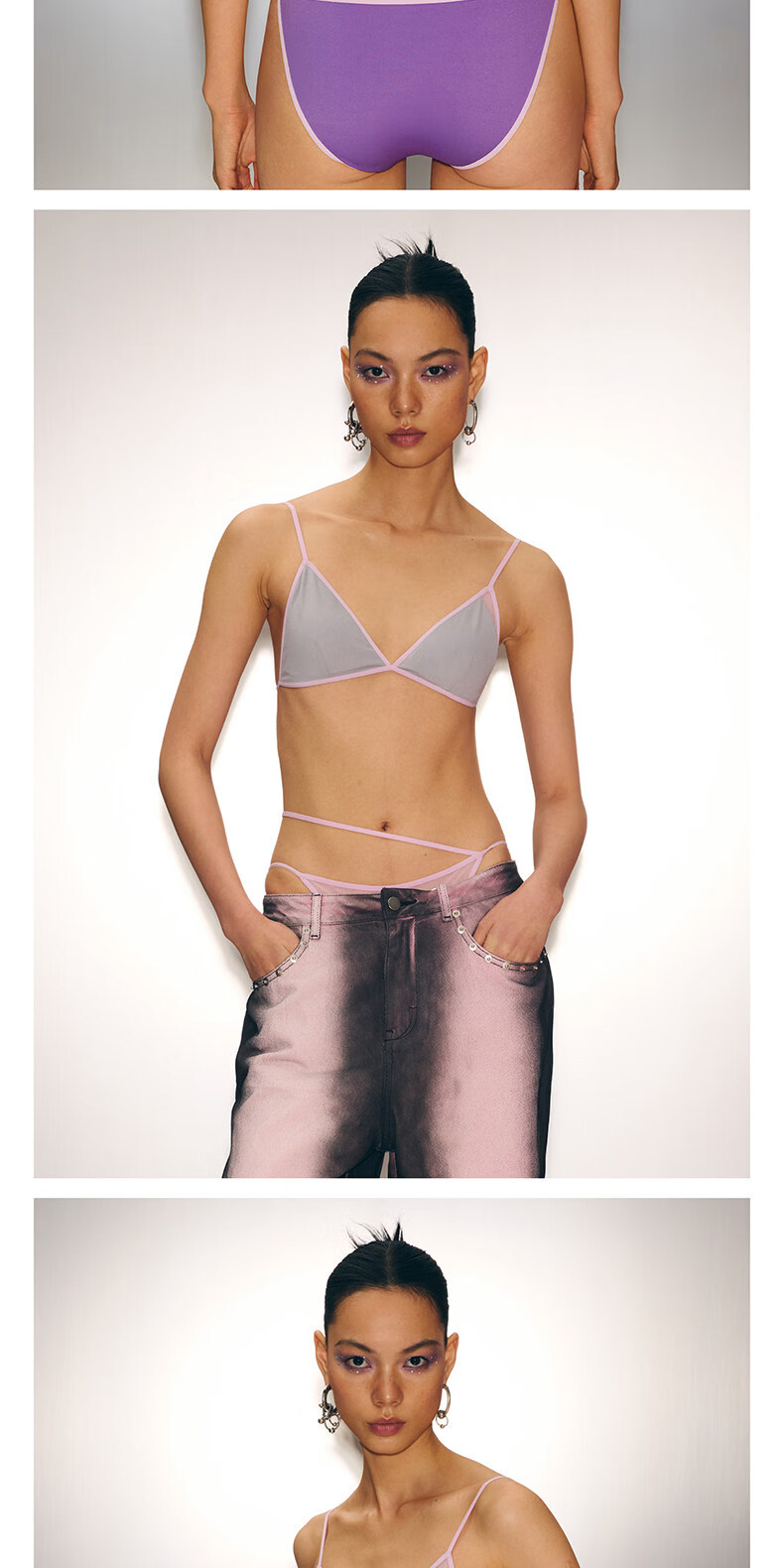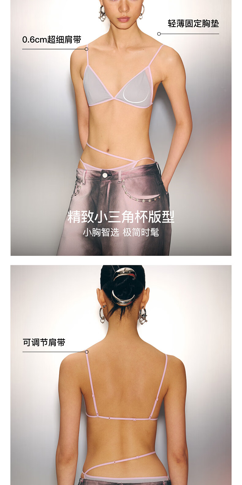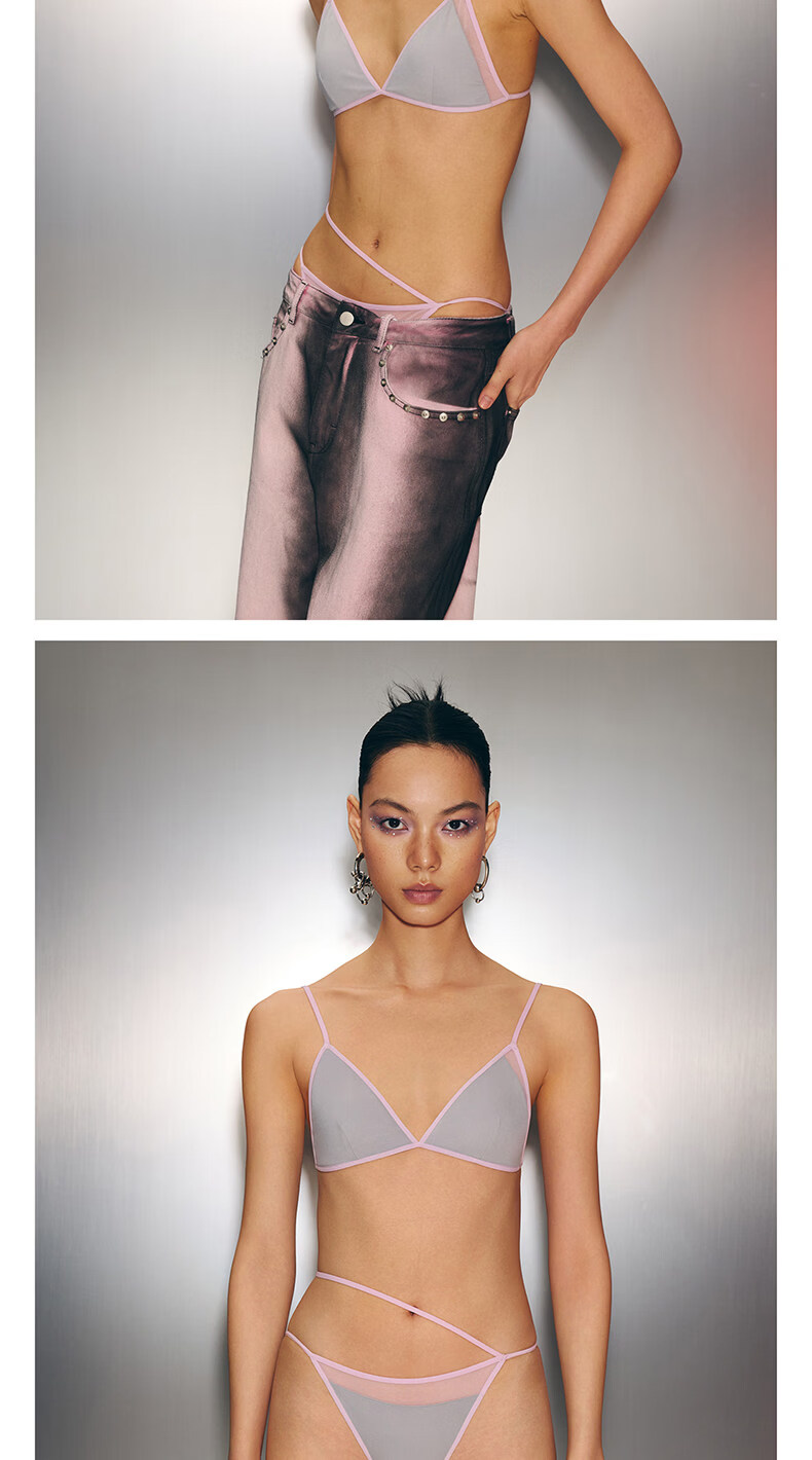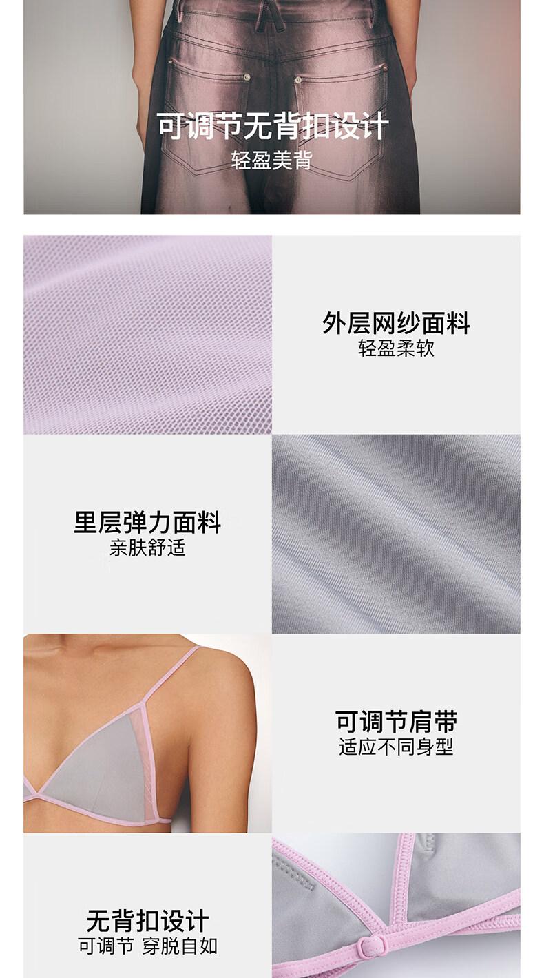 The Blender New Product Valentine's Day Series Contrast Color Mesh Splicing Triangle Cup Back Bra Bra Silver Gray S (Applicable to 70A/70B/75A/75B/80A)