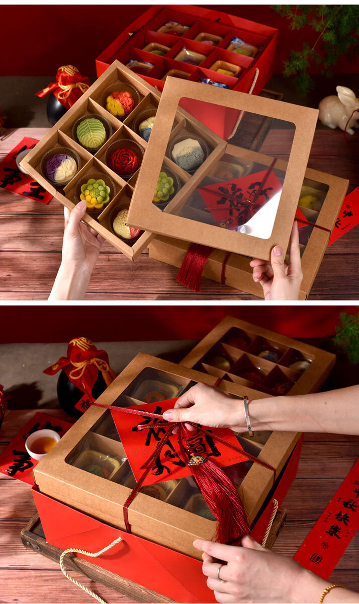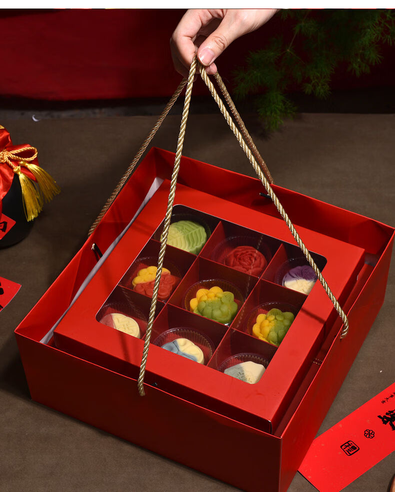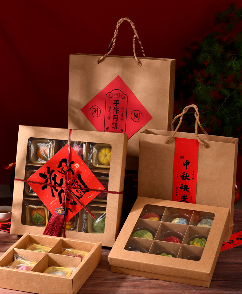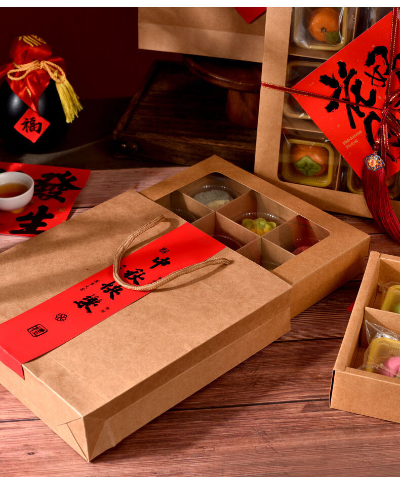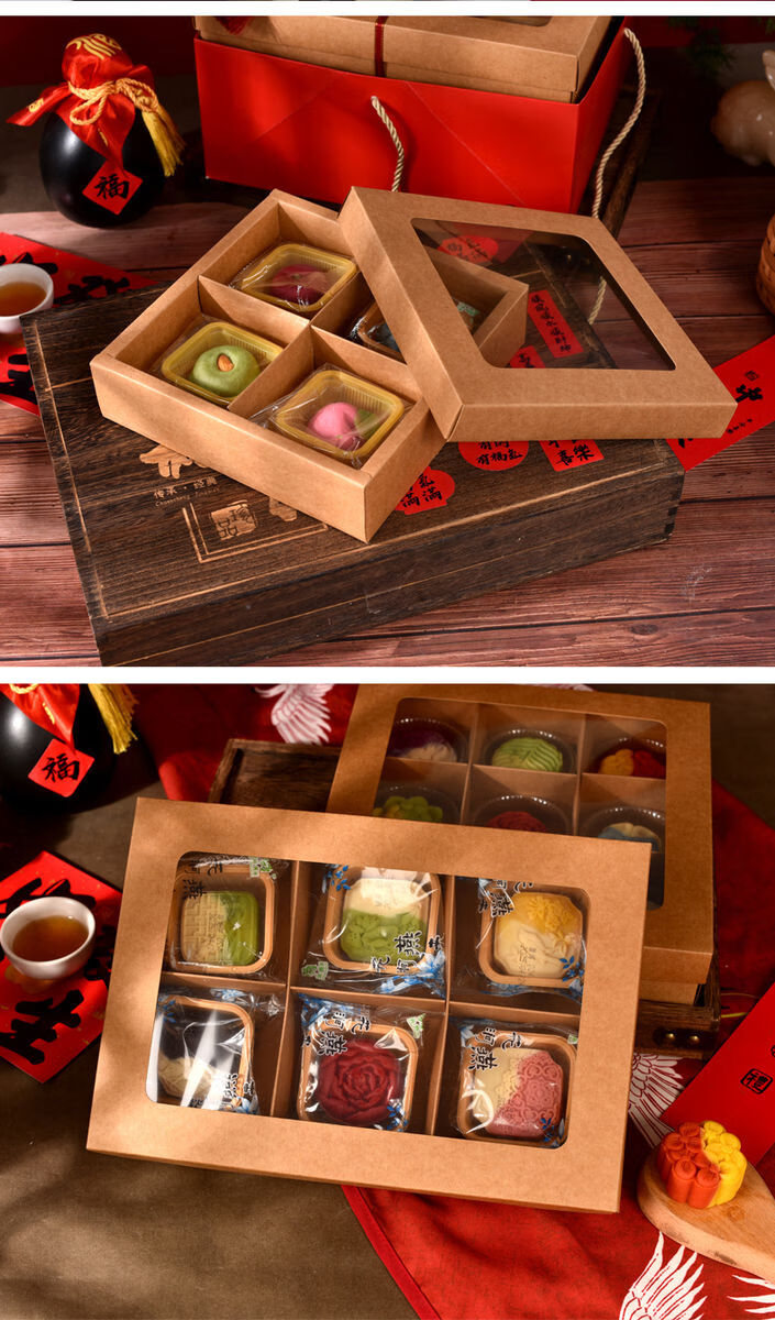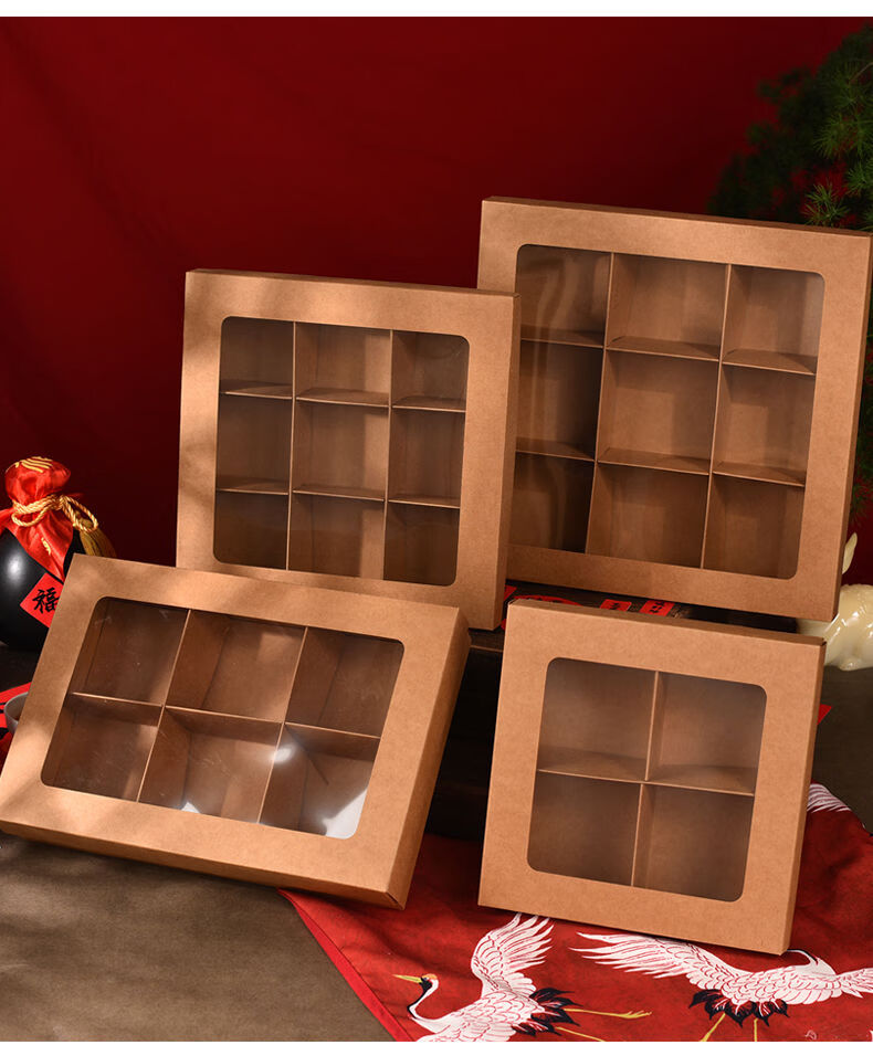Fantasy packaging box kraft paper nine-square grid 4 pieces 6 pieces flower pastry gift box burgundy velvet rope 100 meters