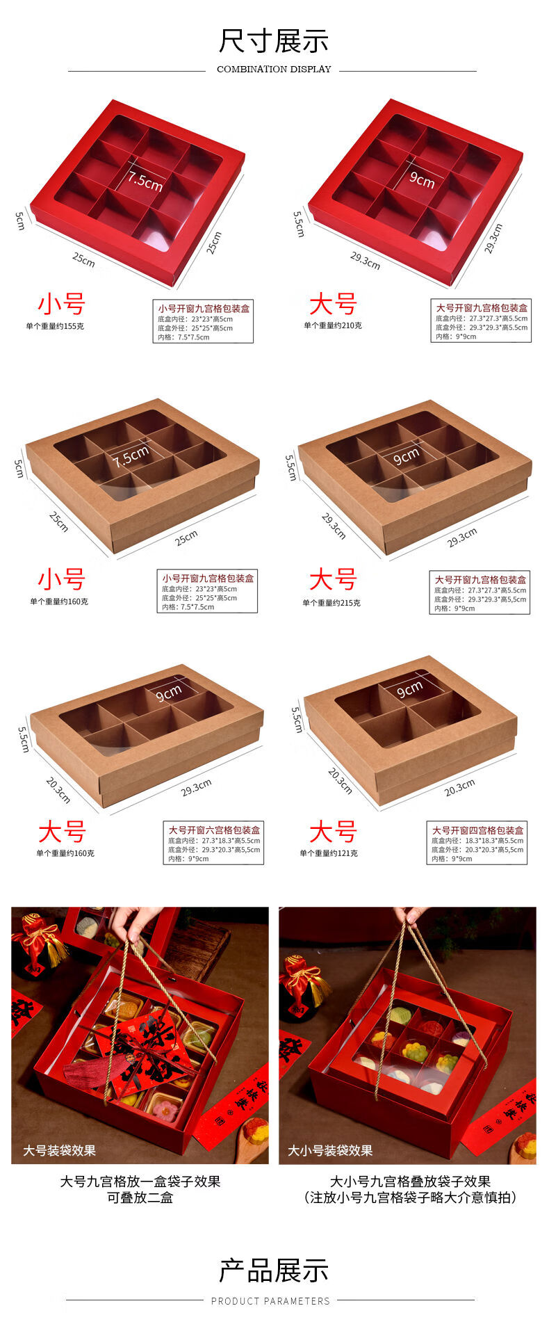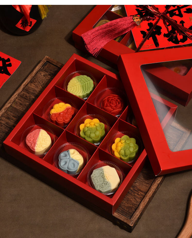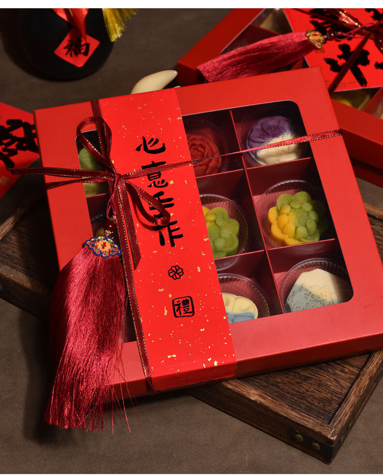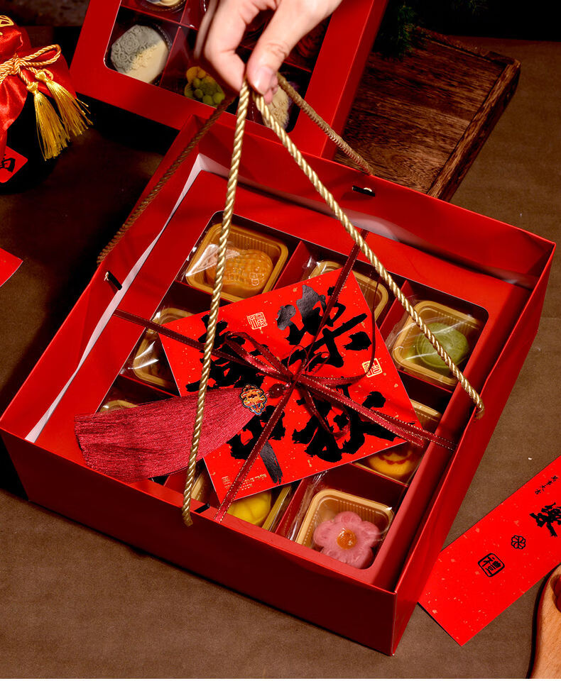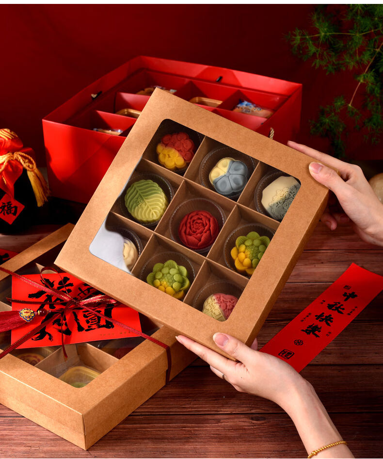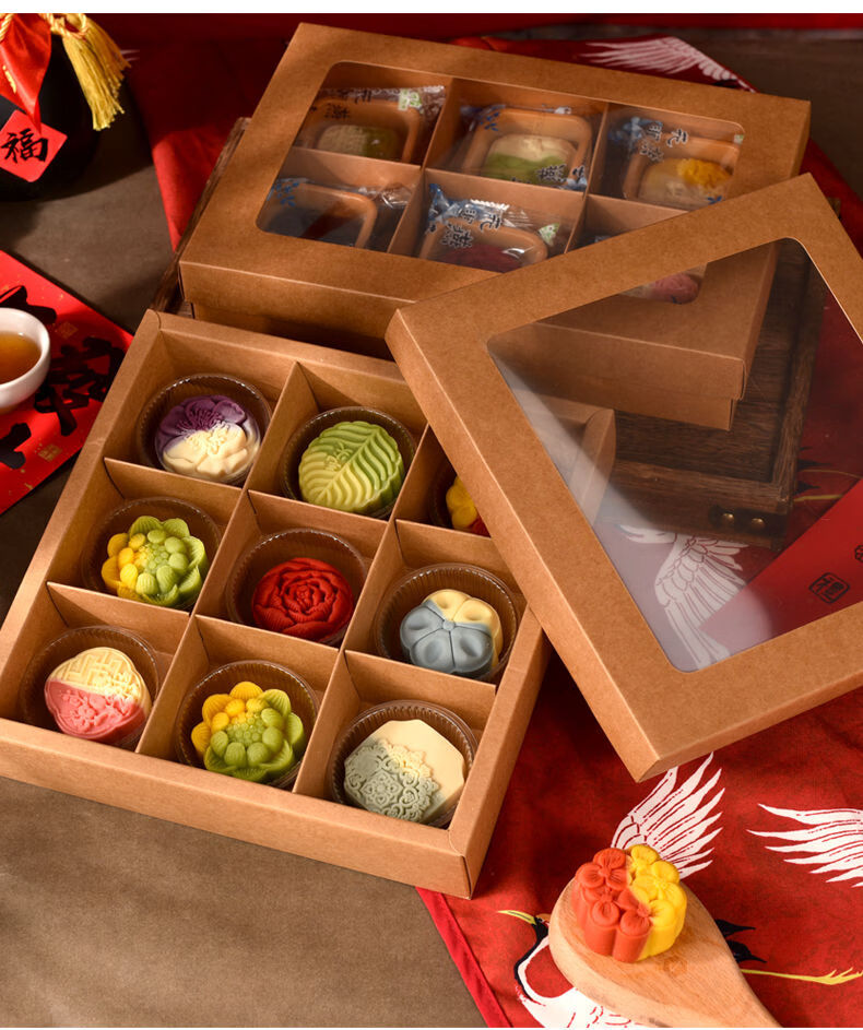 Fantasy packaging box kraft paper nine-square grid 4 pieces 6 pieces flower pastry gift box burgundy velvet rope 100 meters