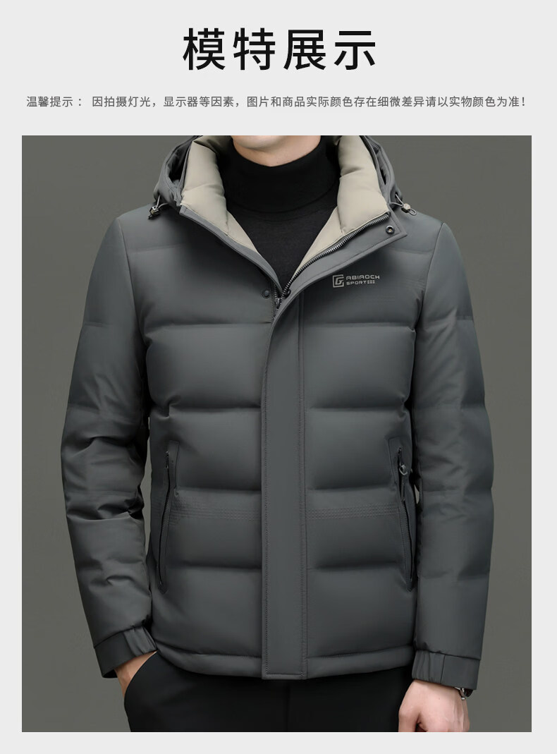 Lilang Shopping Mall's same style men's down jacket winter new high-end light and warm casual goose down jacket thickened jacket gray M 170 recommended 90-120 Jin Jin equals 0.5 kg