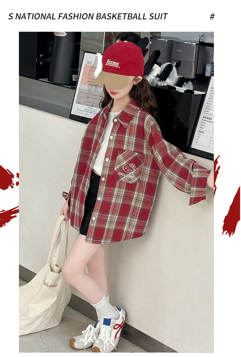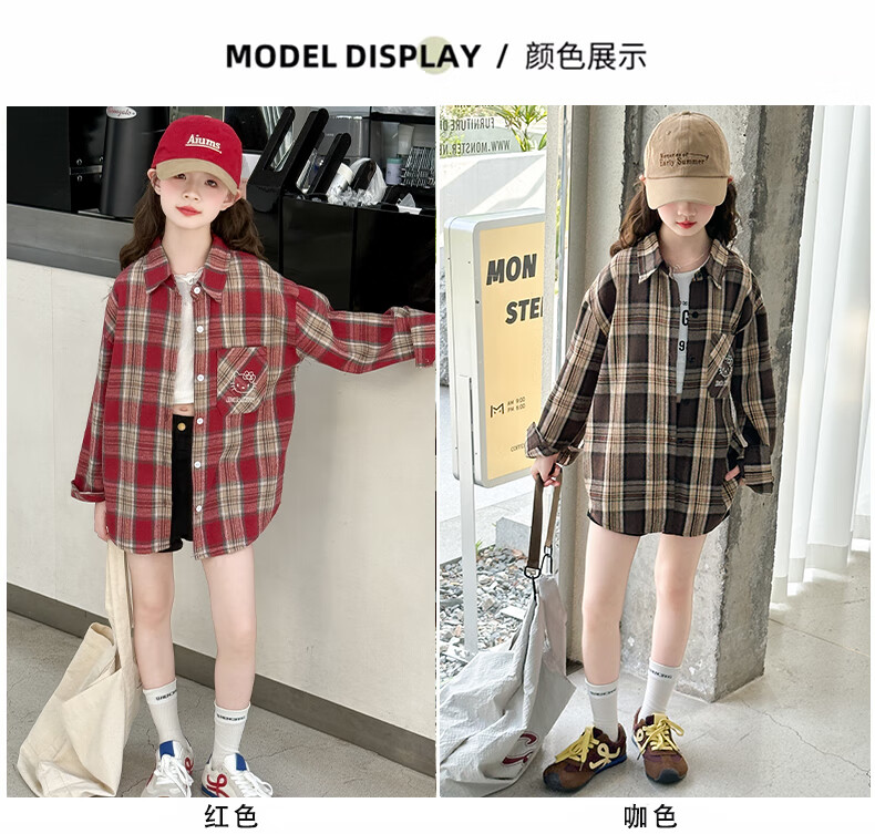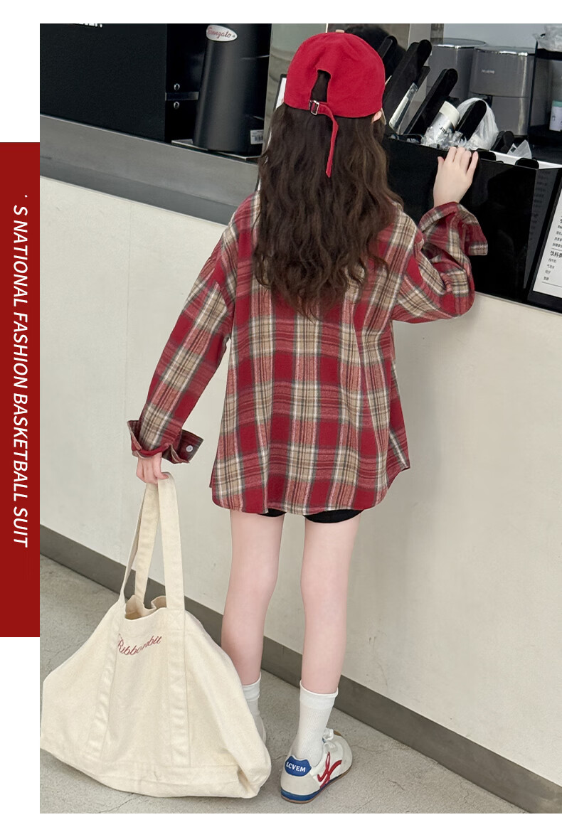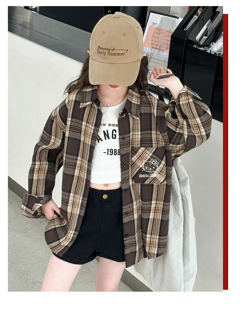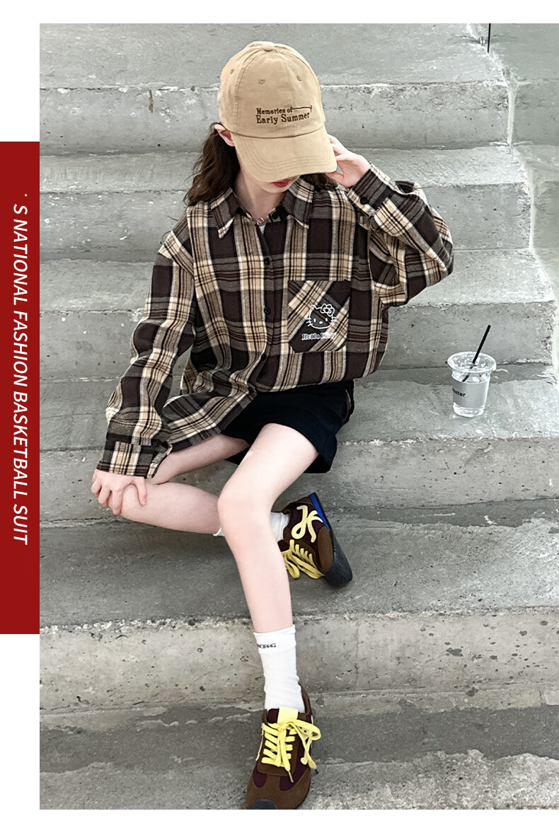 Girls Autumn Plaid Shirt 2025 New Style Casual Big Children Spring and Autumn Korean Style Shirt Loose Jacket Brown 170