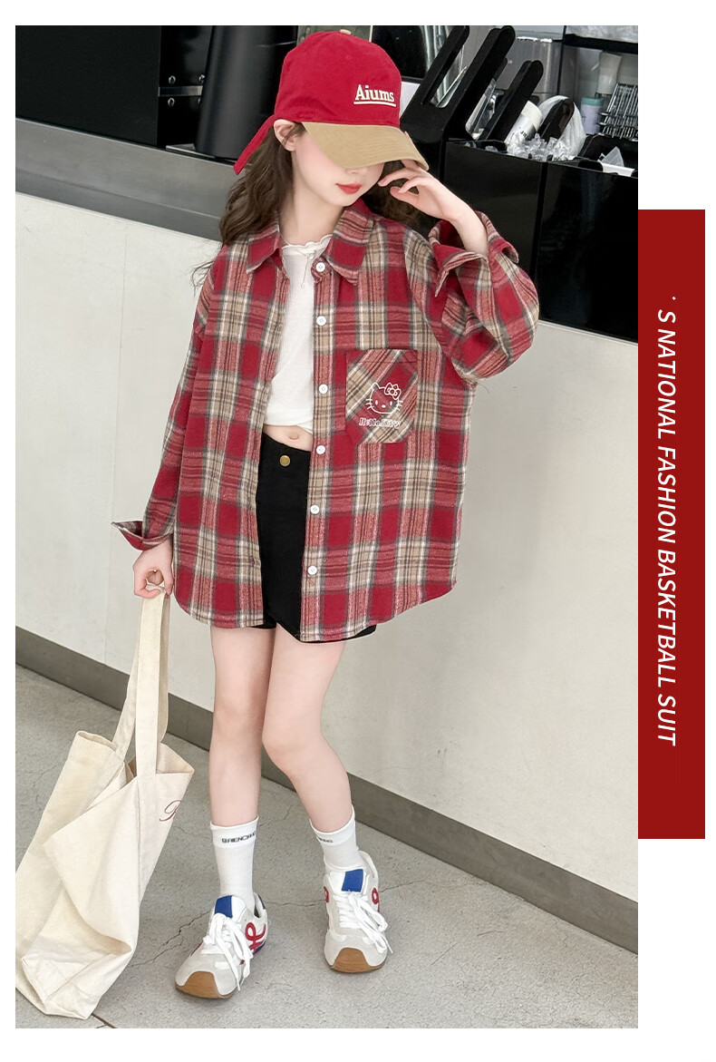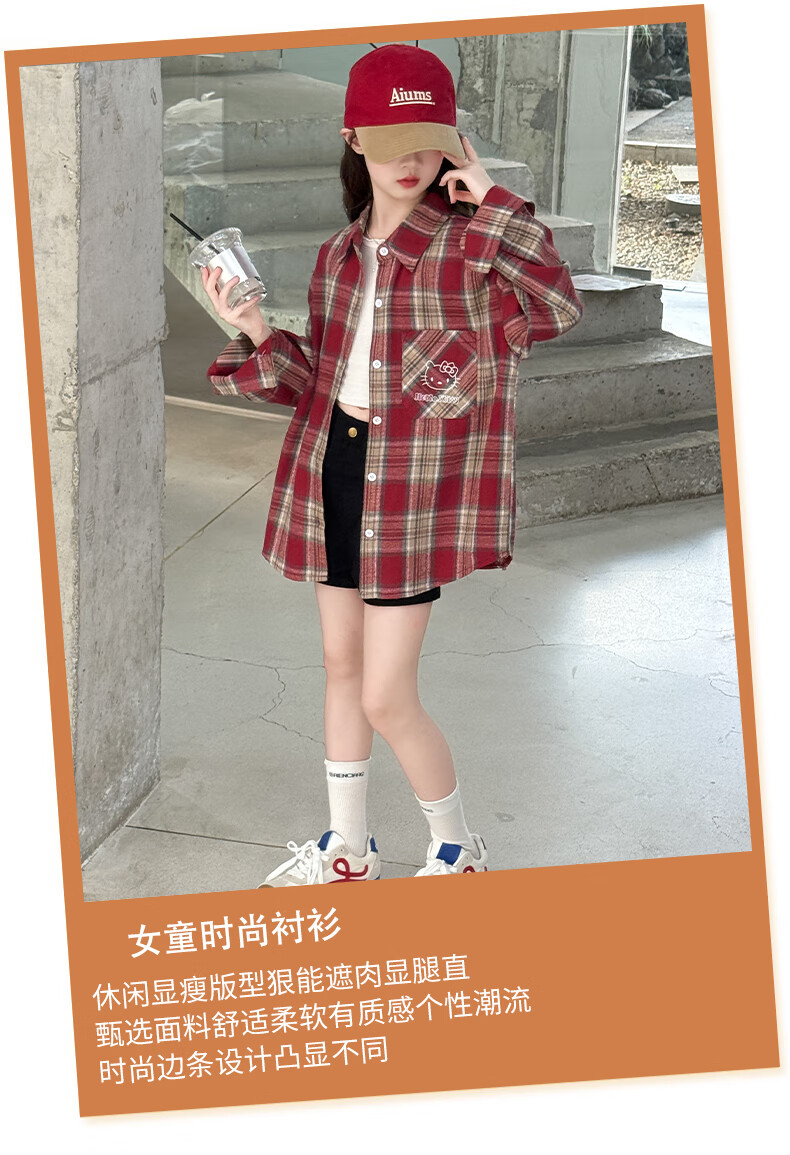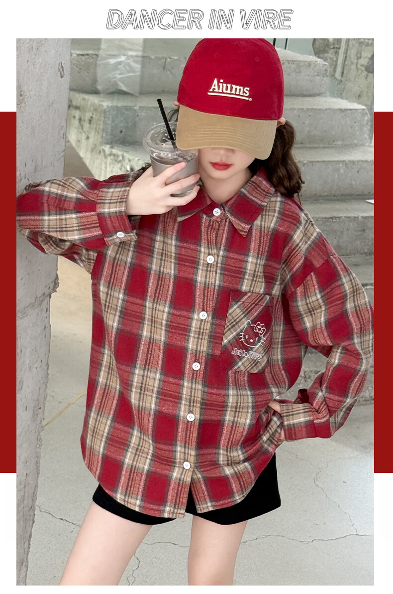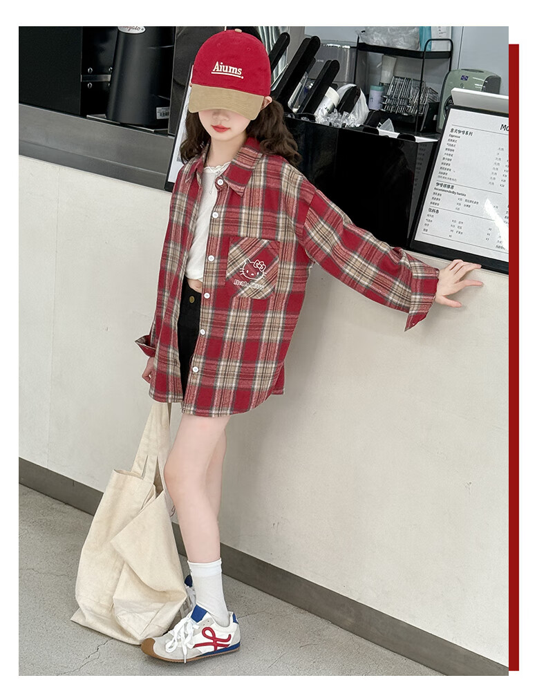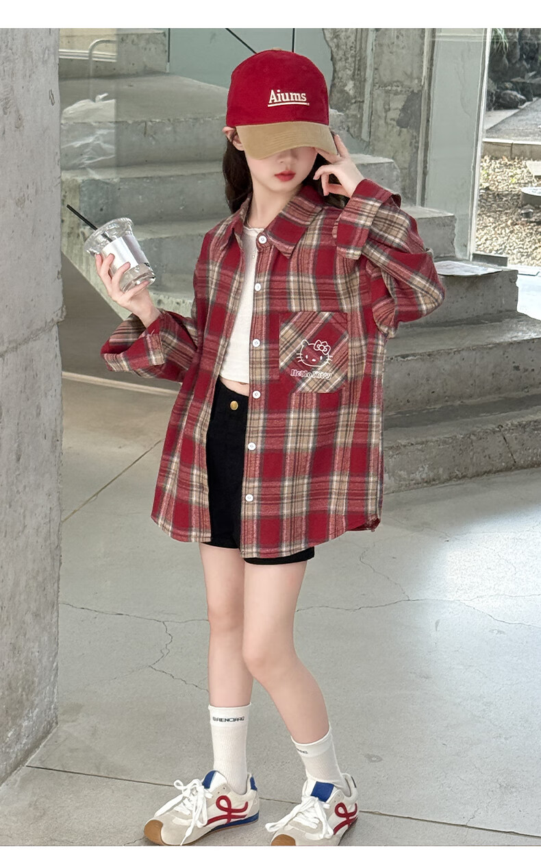 Girls Autumn Plaid Shirt 2025 New Style Casual Big Children Spring and Autumn Korean Style Shirt Loose Jacket Brown 170