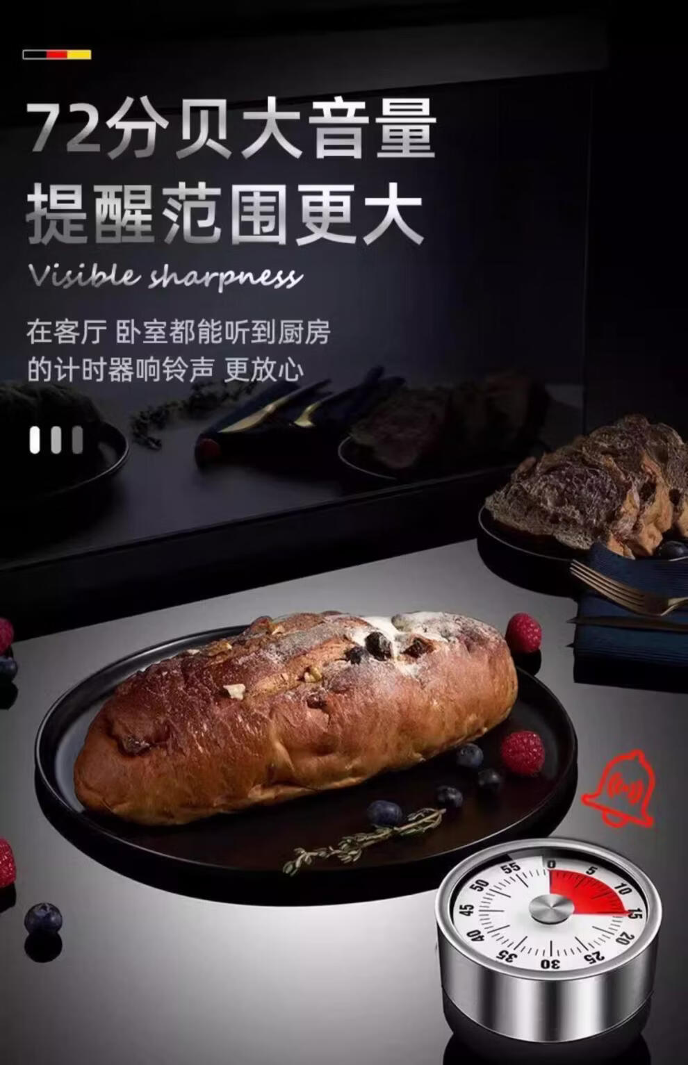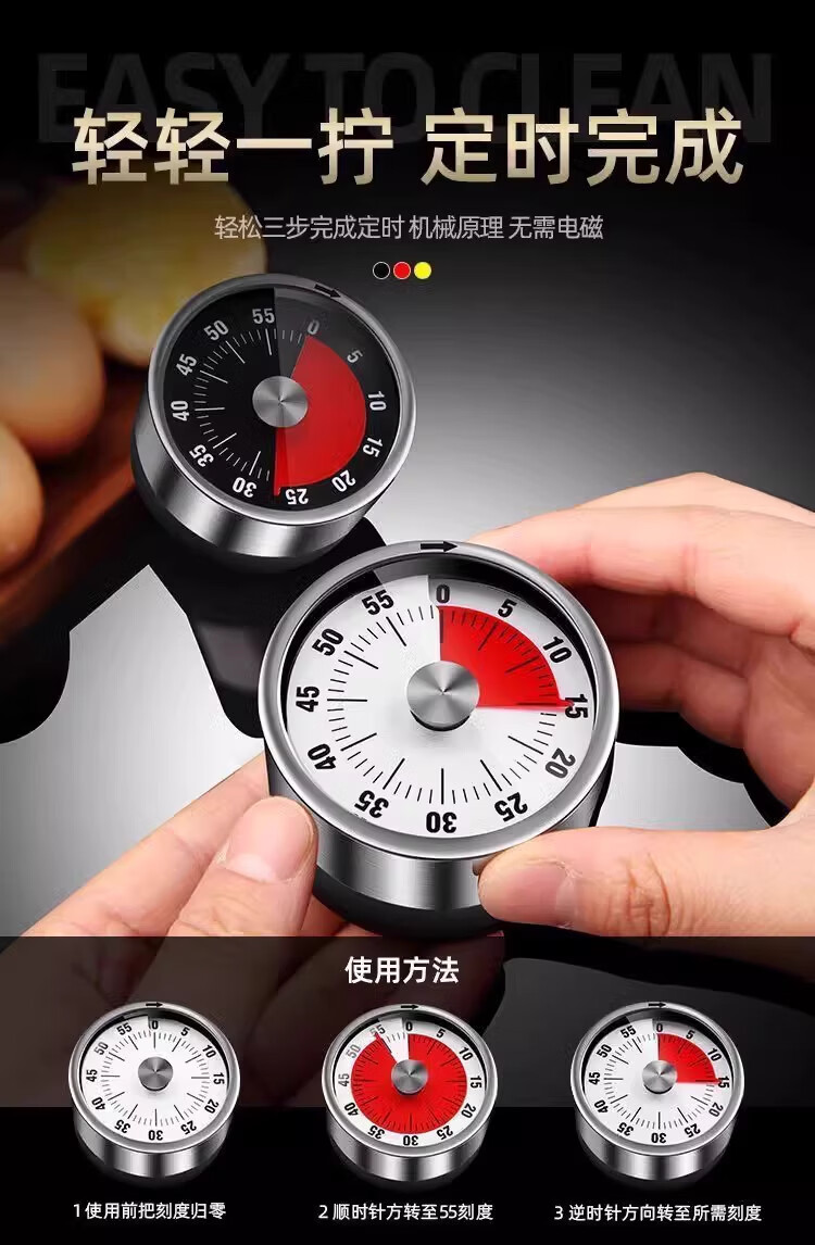 Tuojin Japan imported quality visual timer kitchen mechanical timing learning children's kitchen reminder magnetic suction type black - magnetic suction no battery required + accurate timing