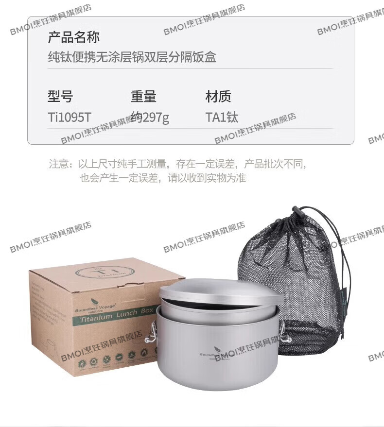 BMOI German imported quality pure titanium insulated lunch box double-layer lunch box Biwei separated instant noodle bowl student lunch box