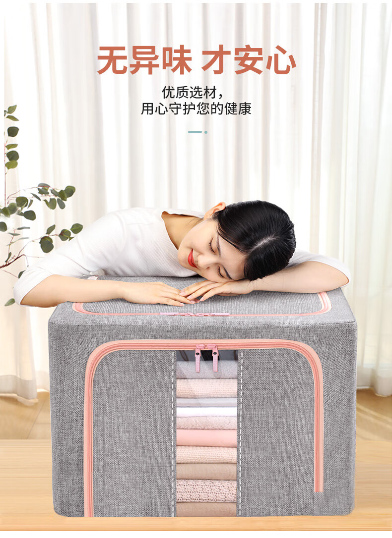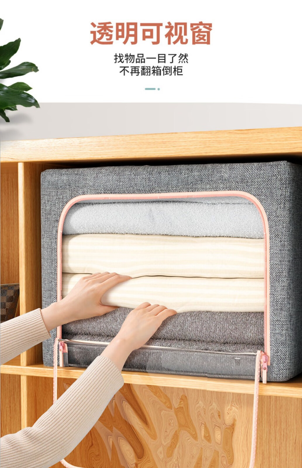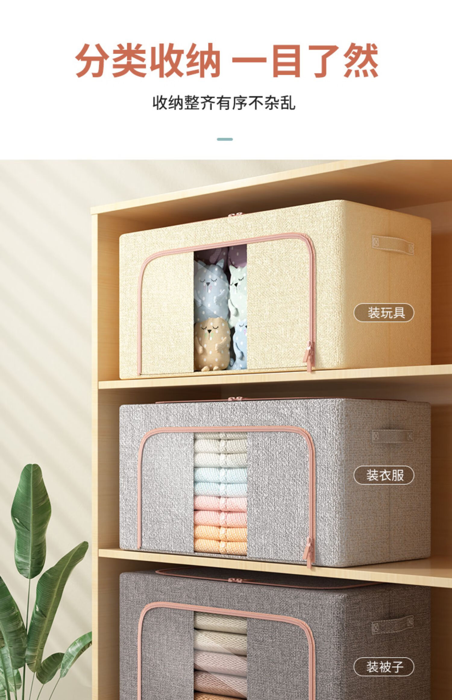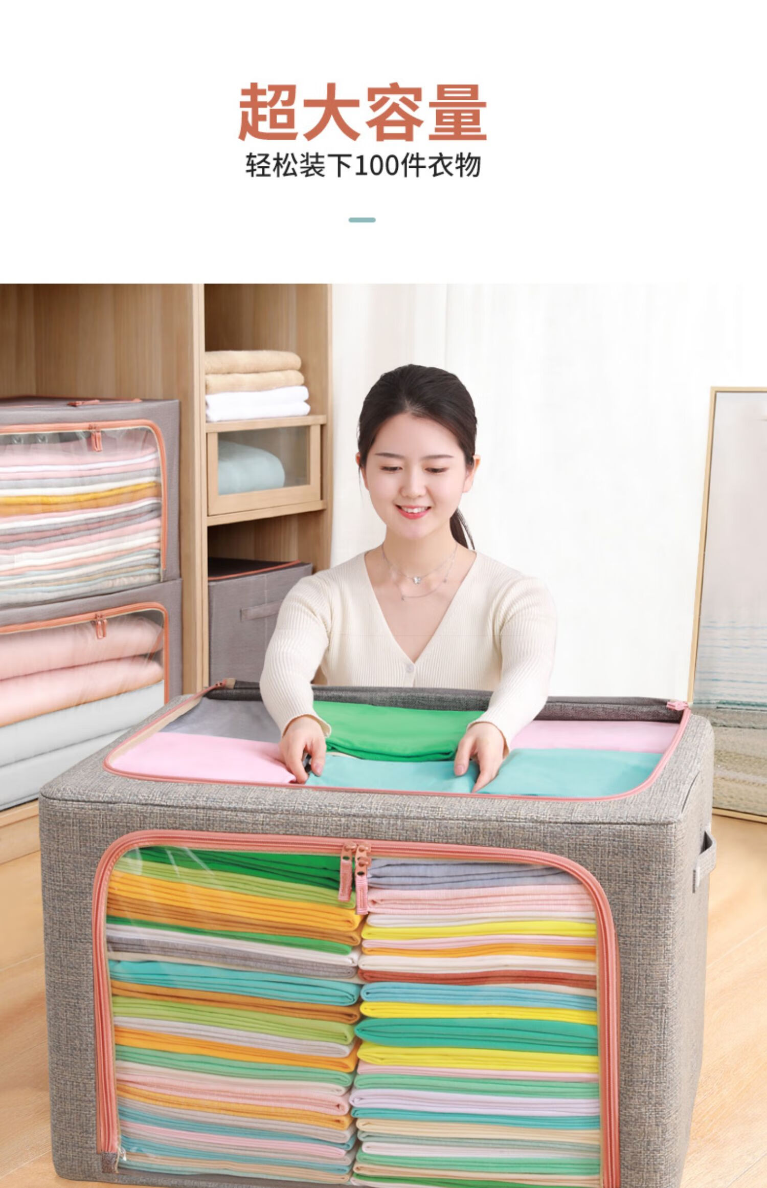 Fantasy thickened cotton and linen clothes storage quilt storage bag fabric clothing sorting folding wardrobe large transparent moving 100L length 60cm width 42cm height 40cm 2 pieces, fruit green