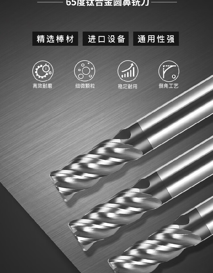 65 degree titanium alloy round nose cutter steel milling cutter stainless steel CNC center CNC machining titanium milling cutter 2R0 points 5*30L*12D*100L*4T