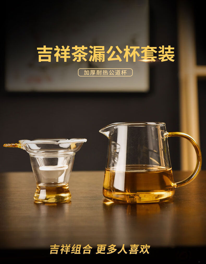 Weishi heat-resistant glass fair cup tea drain mesh with filter integrated tea set tea water separation cup tea filter tea set accessories yellow handle straight male cup 280ml + auspicious tea drain